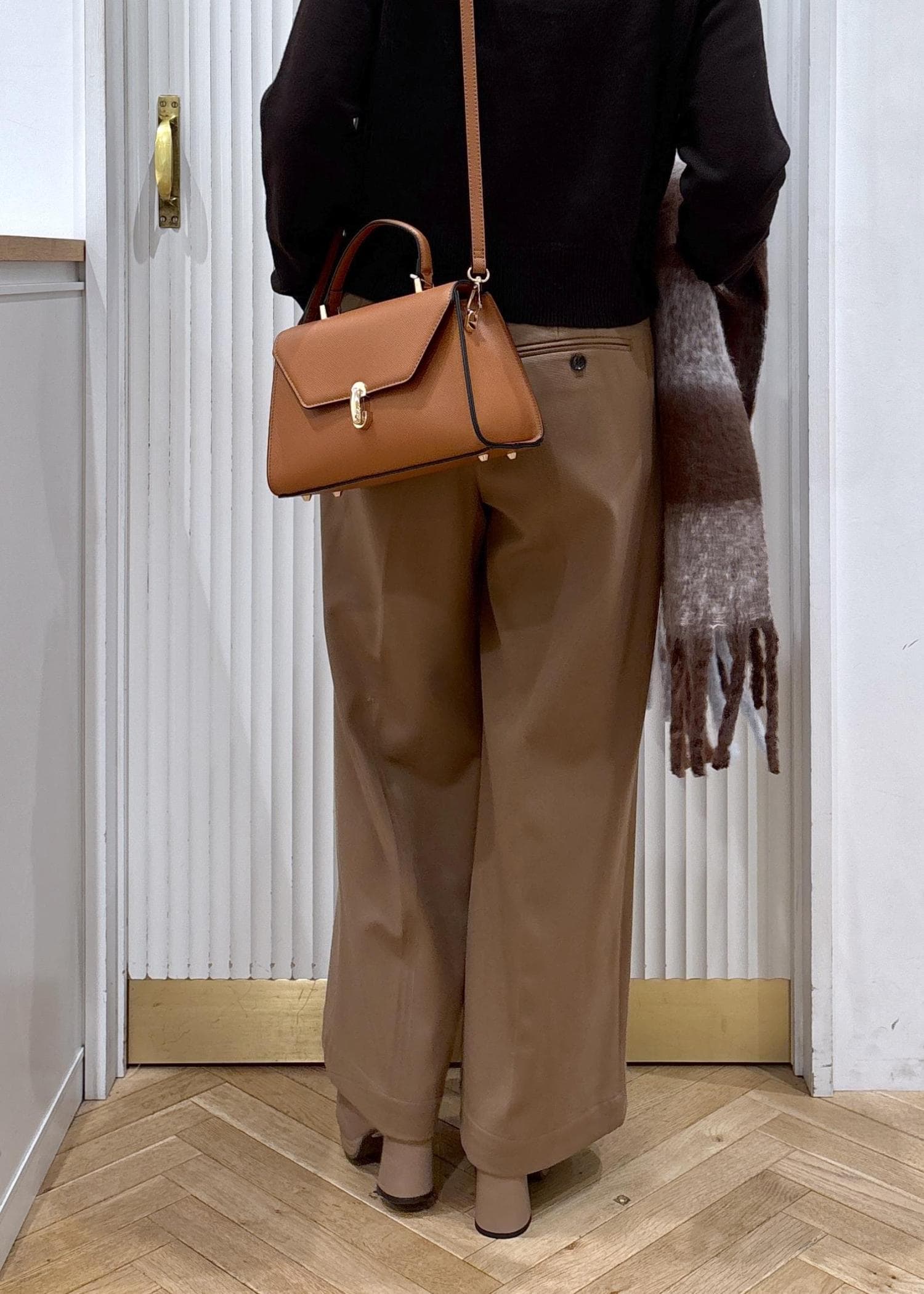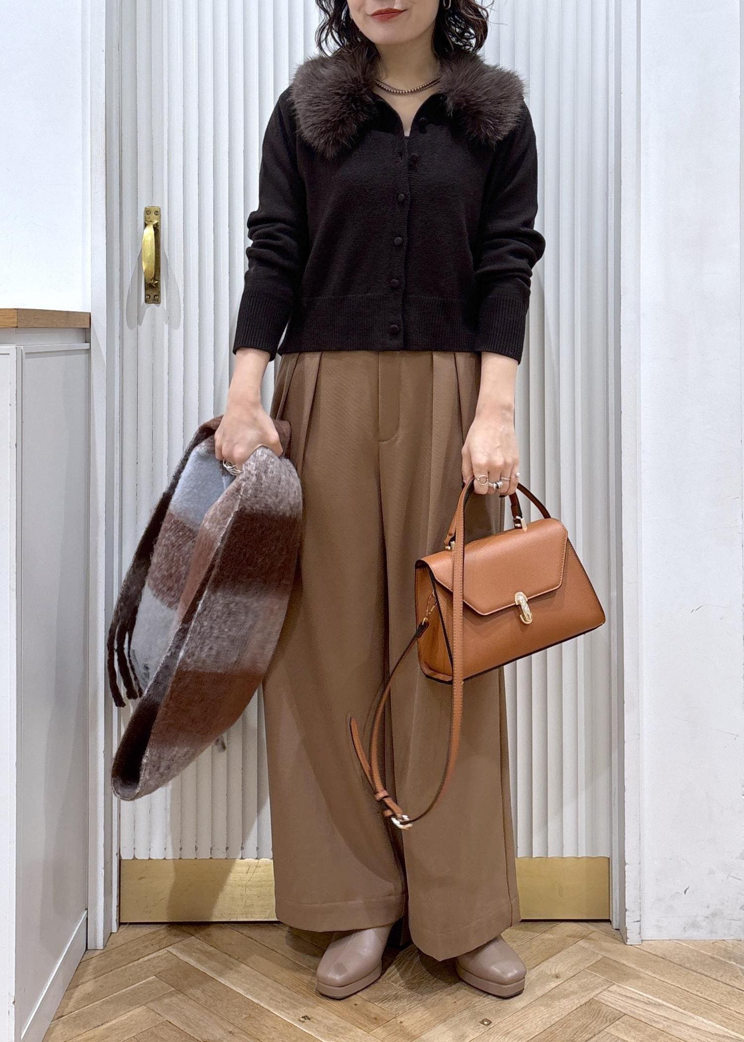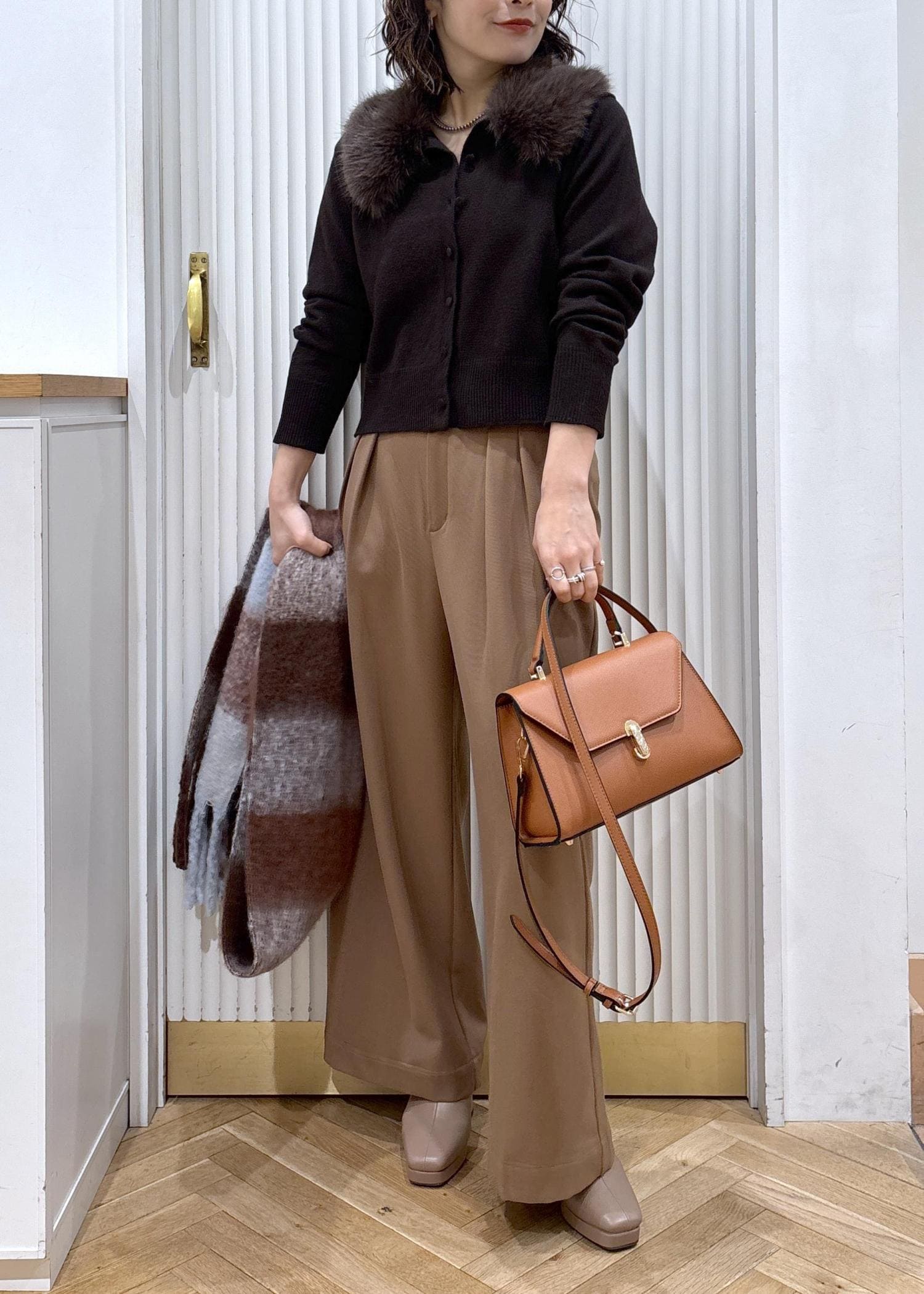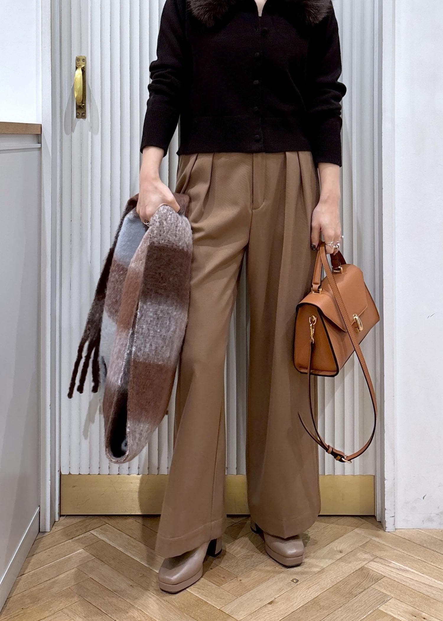 柔らかなキャメルにトーンで全体を合わせて大人の綺麗目お出かけコーデにしました♡