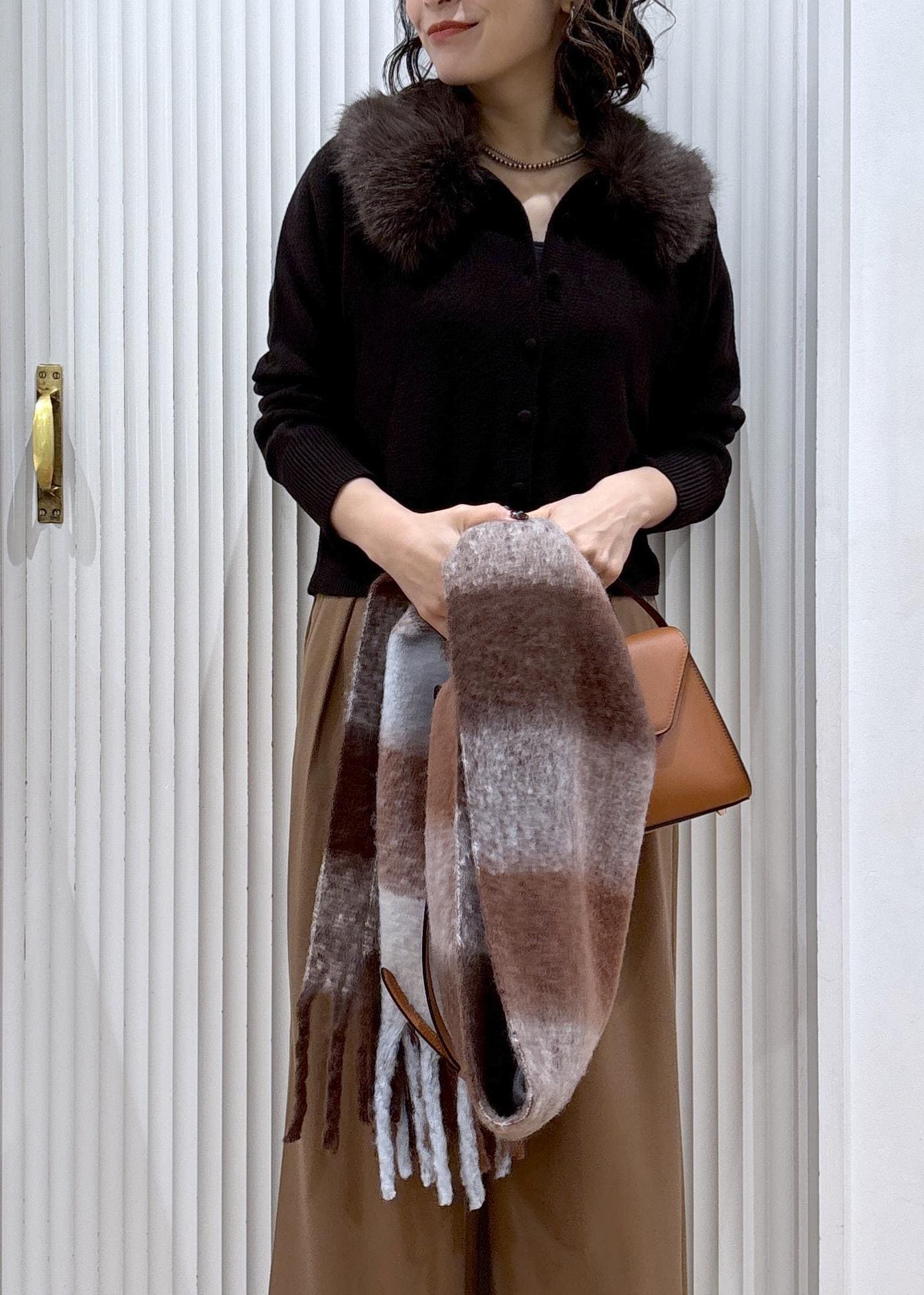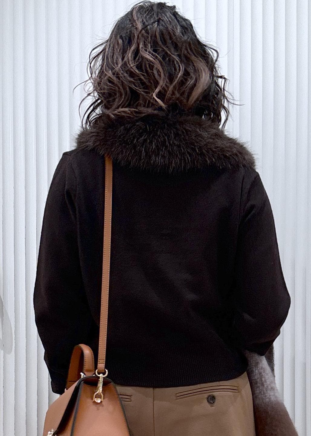 肉厚過ぎないハイゲージのニットでファーを取り外して春まで長く着られるカーディガンです。 -