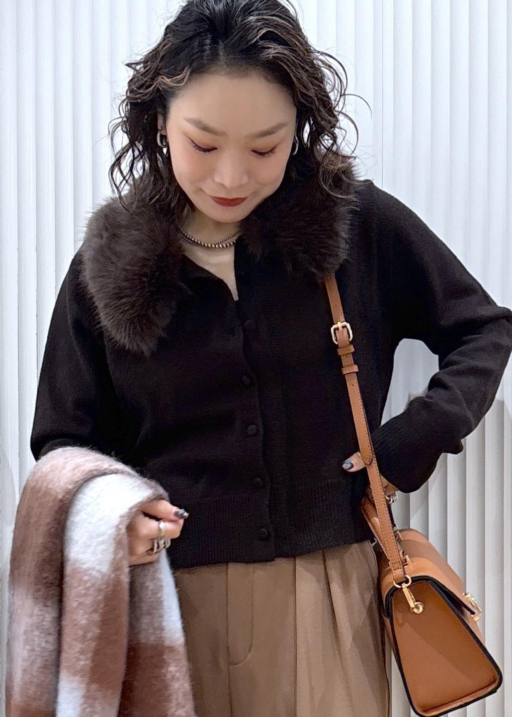 リッチなエコファーが顔まわりを華やかにするカーディガン♫