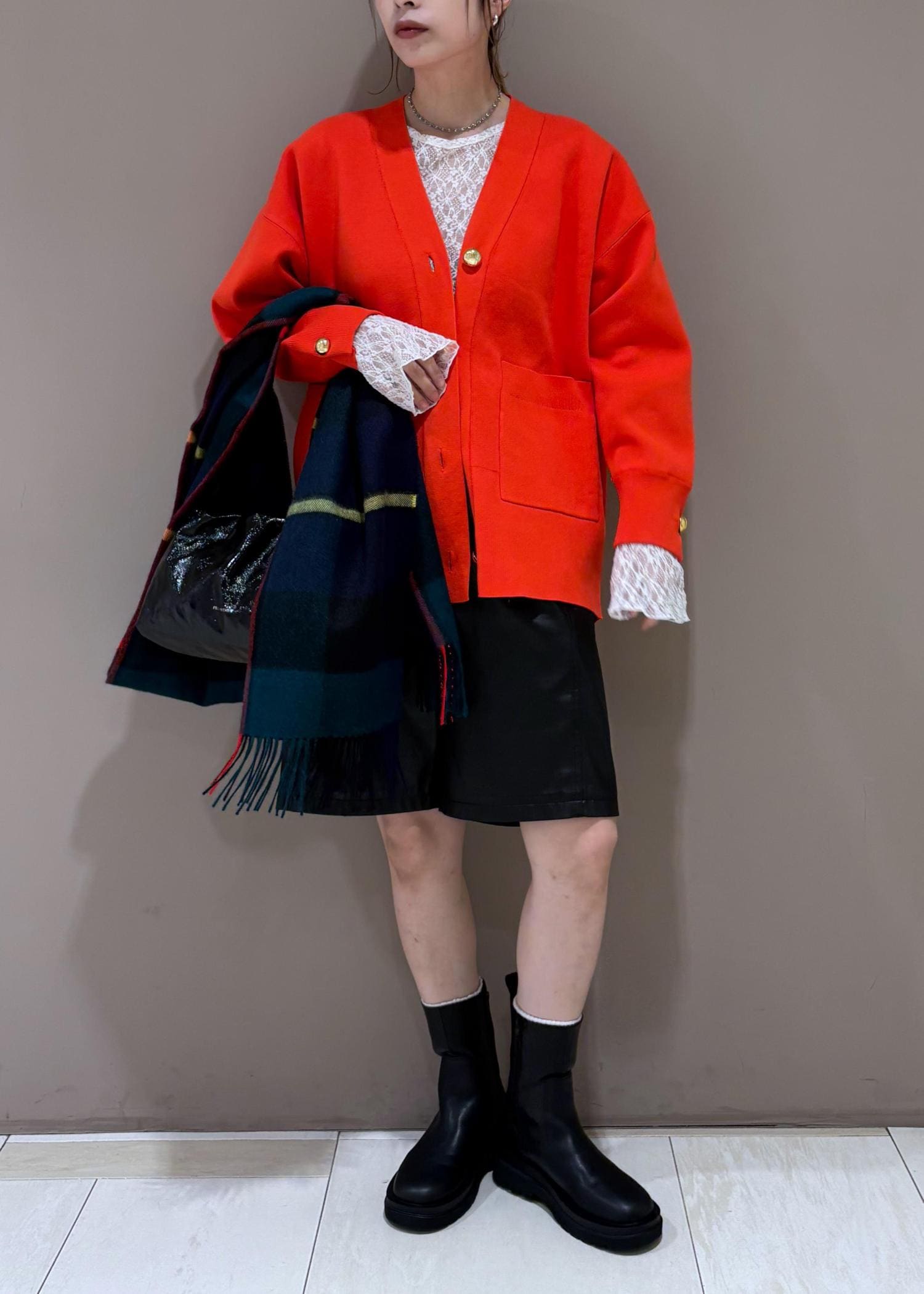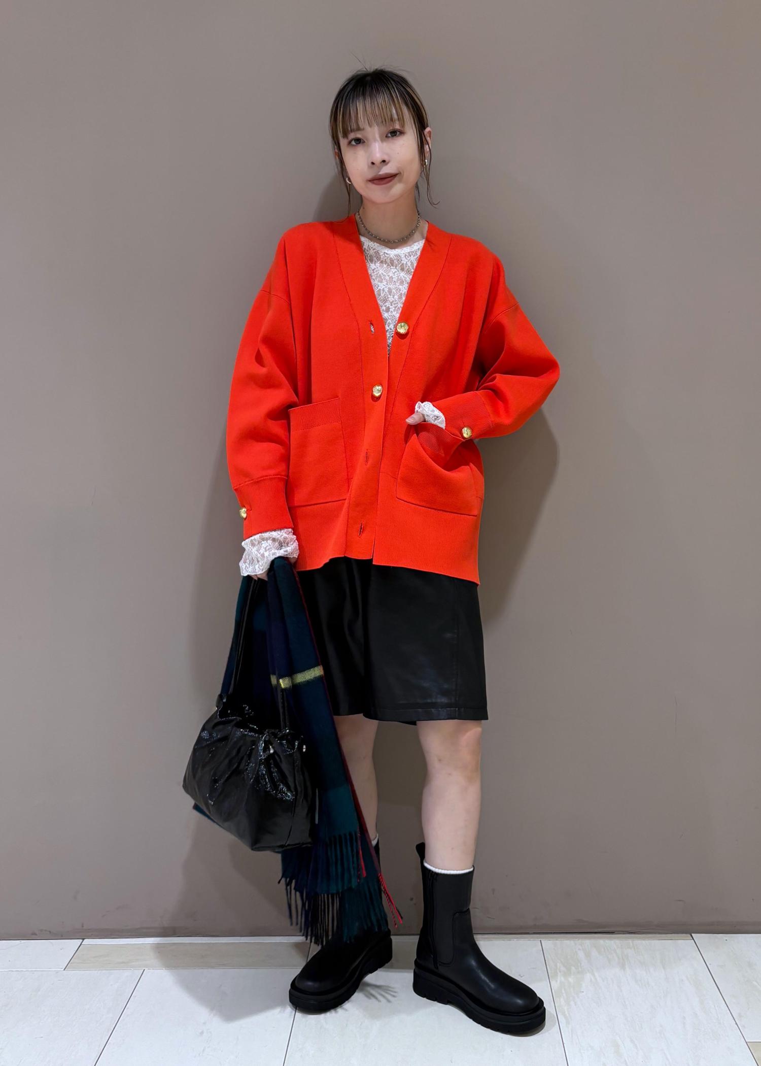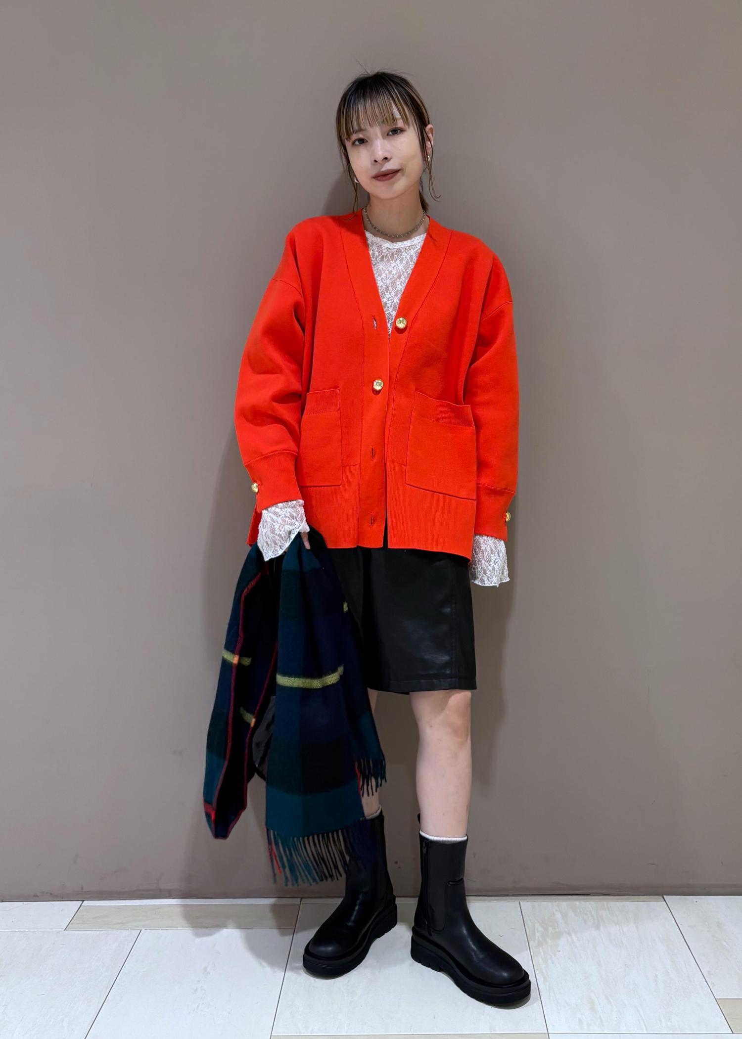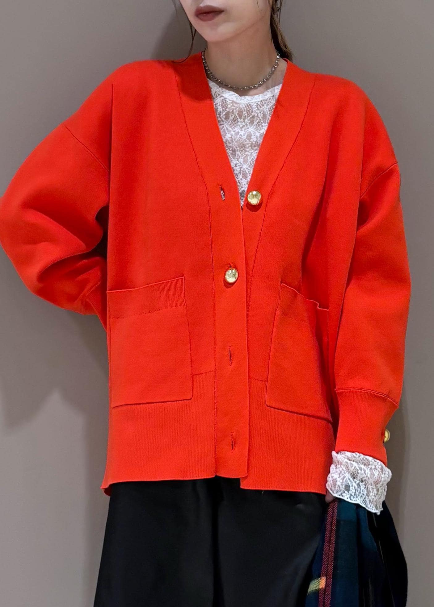 ADAM ET ROPÉ FEMME【サステナブル】ロゴボタンミドルカーディガンオレンジ系 / F¥15,400レビュー162cm.フリーサイズ着用。