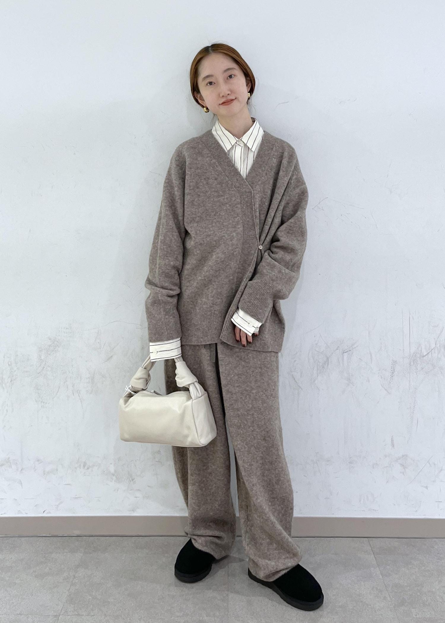 EMOELLE【EMOELLE】ウールニットパンツオフホワイト / 36¥29,700レビューサラッとしたウール素材で自然な艶も綺麗な一着です。36サイズでフラットシューズでも大丈夫な長さです◎ウエストもコンパクト目で、紐でウエストの調節が可能です。