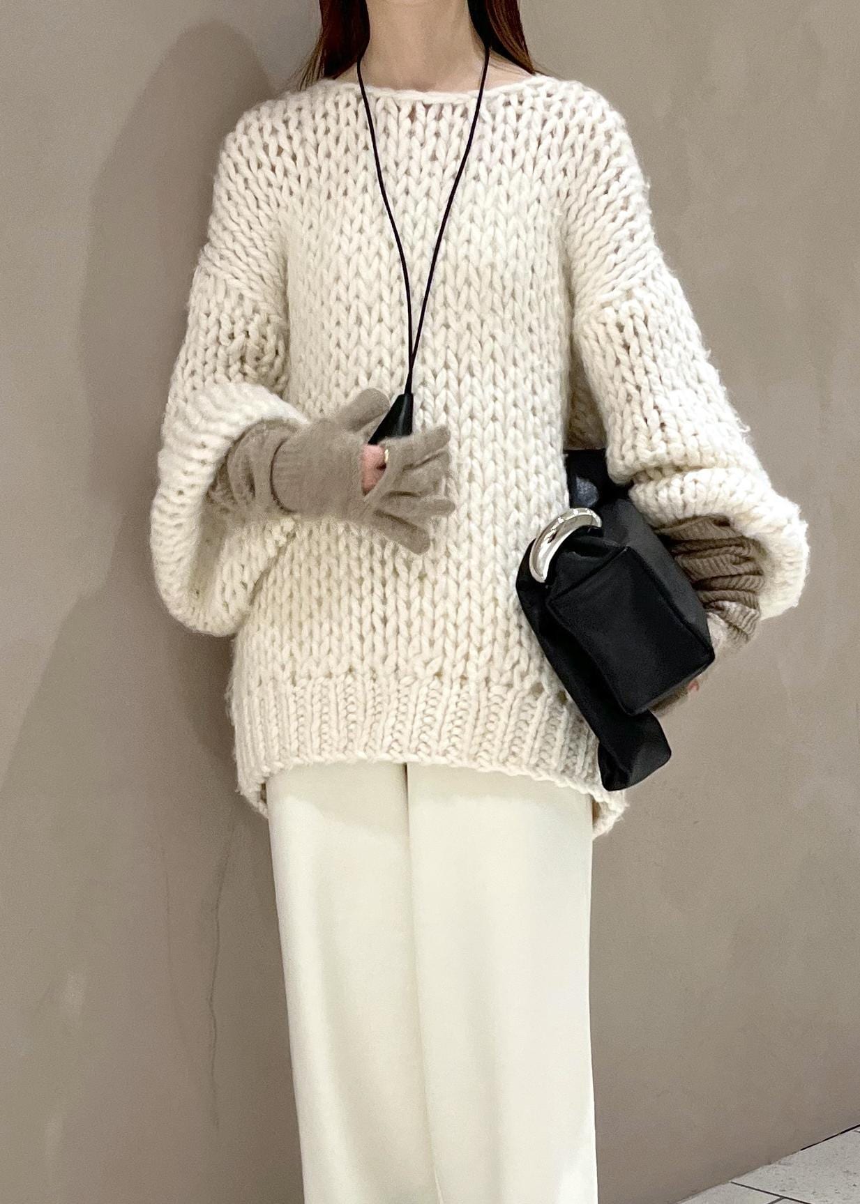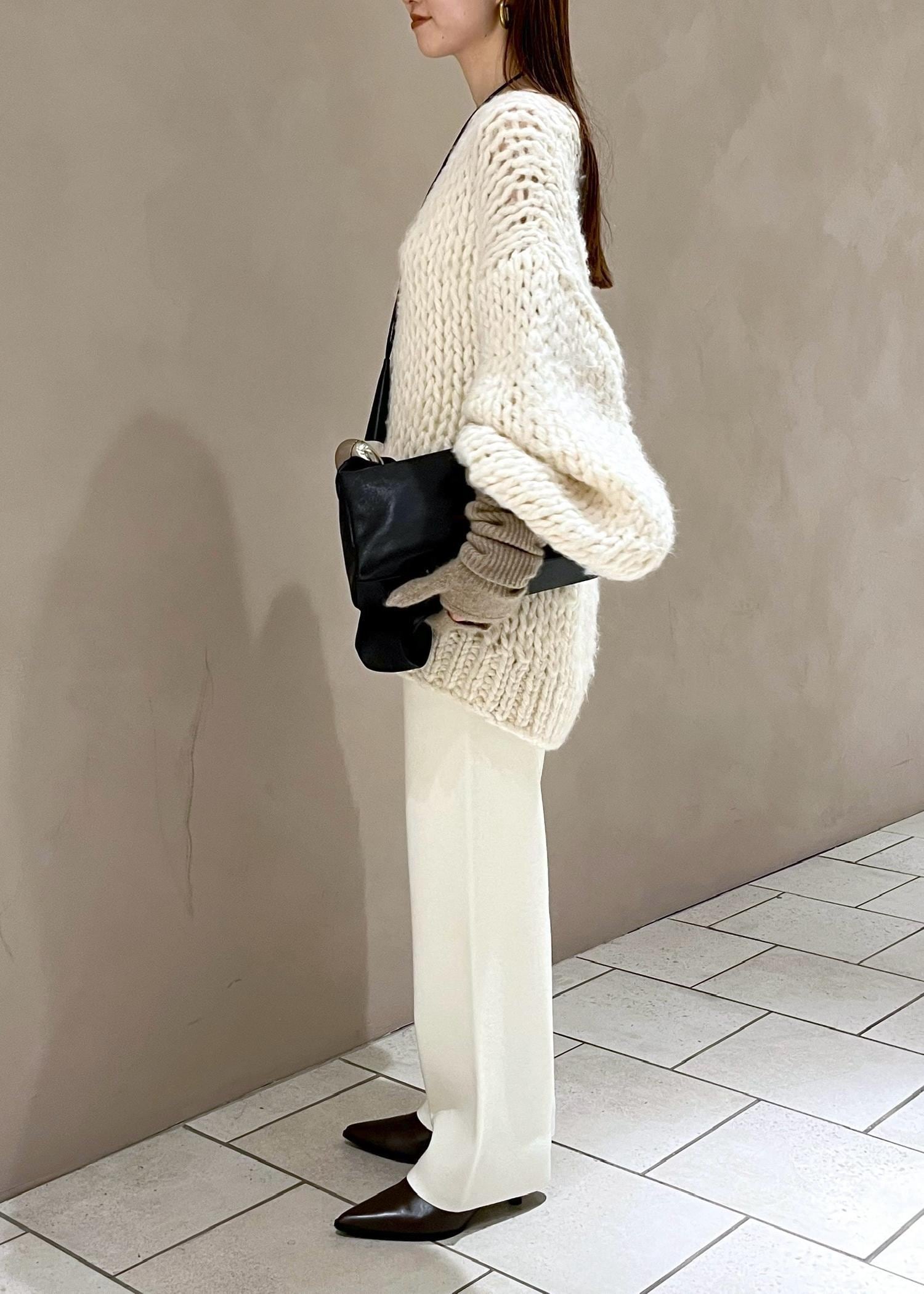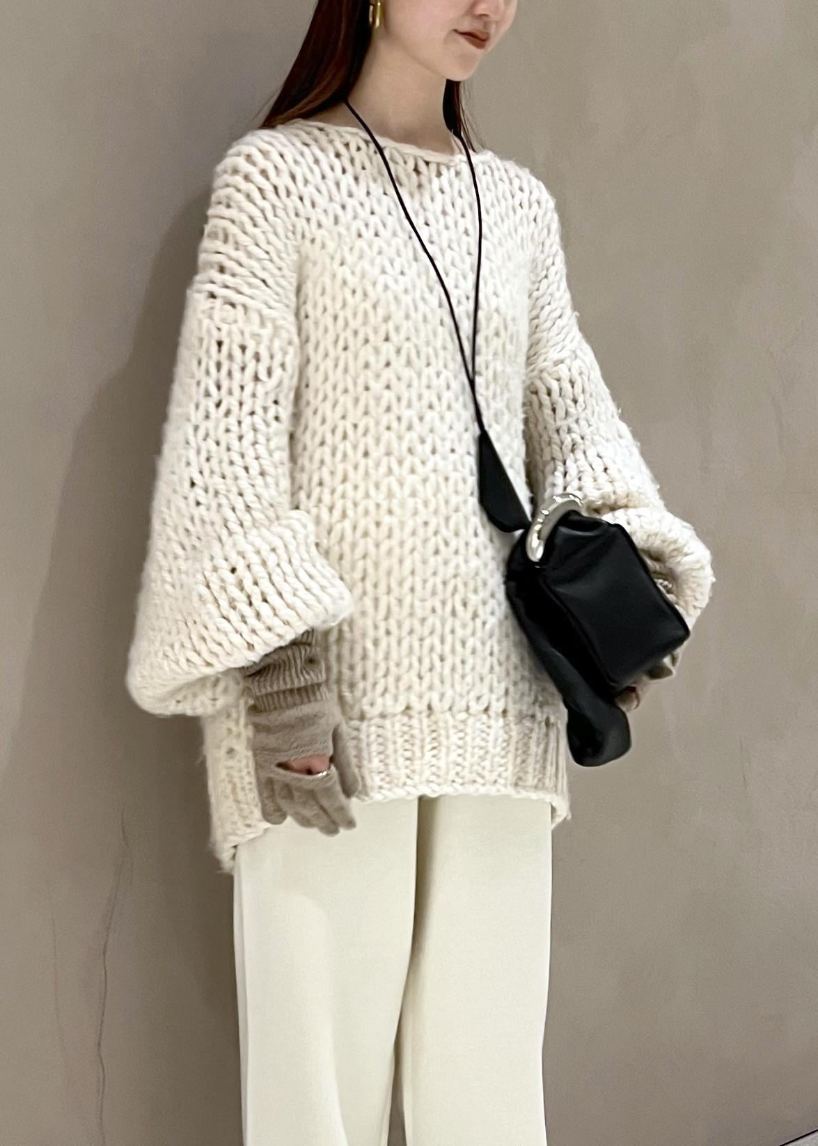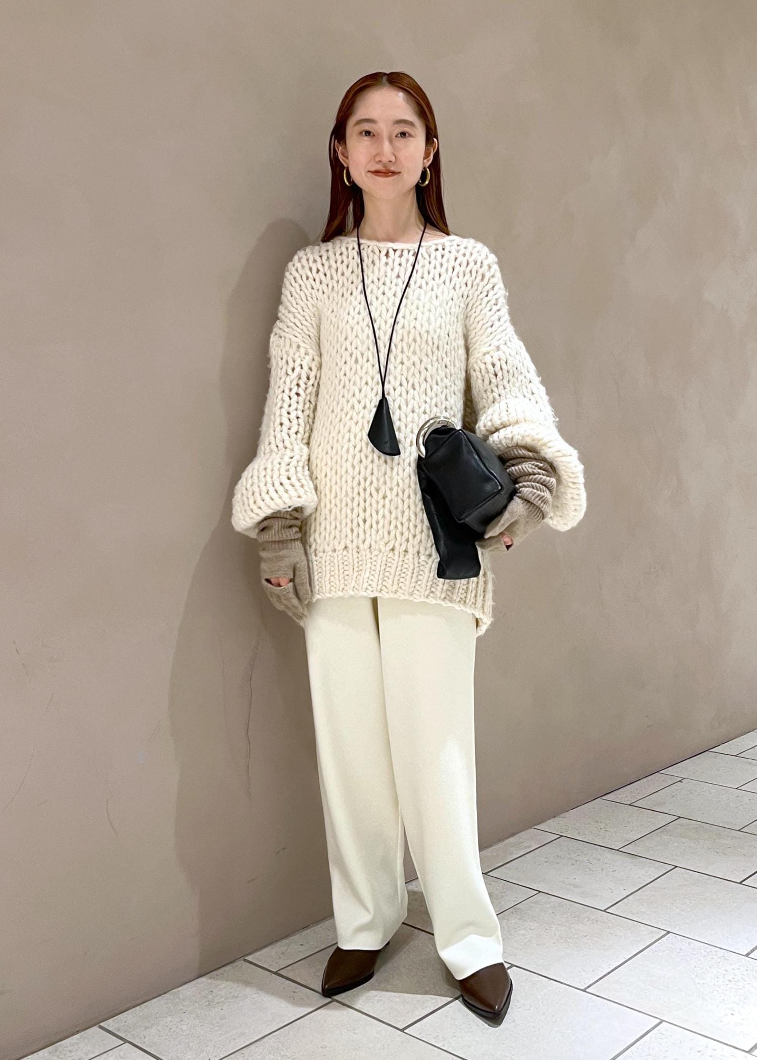 EMOELLE【EMOELLE】ローゲージニットプルオーバーオフホワイト / F¥28,600レビューふんわりと柔らかなニット素材でチクチク感はありません。程よい透け感とルーズなシルエットが可愛いです◎着丈はおしりがすっぽり隠れる長さです。