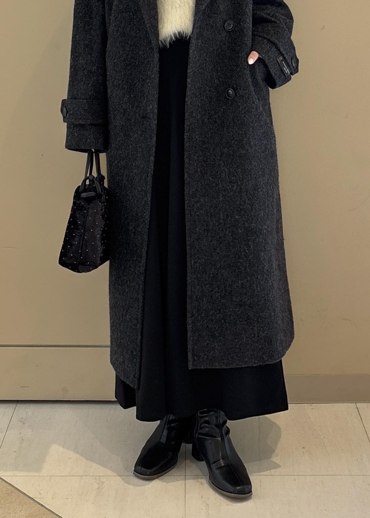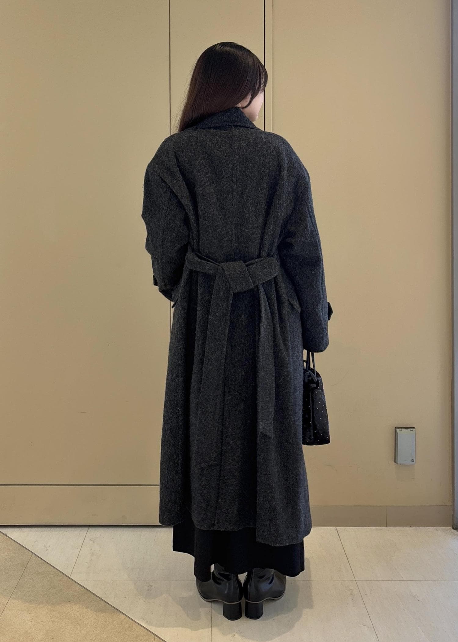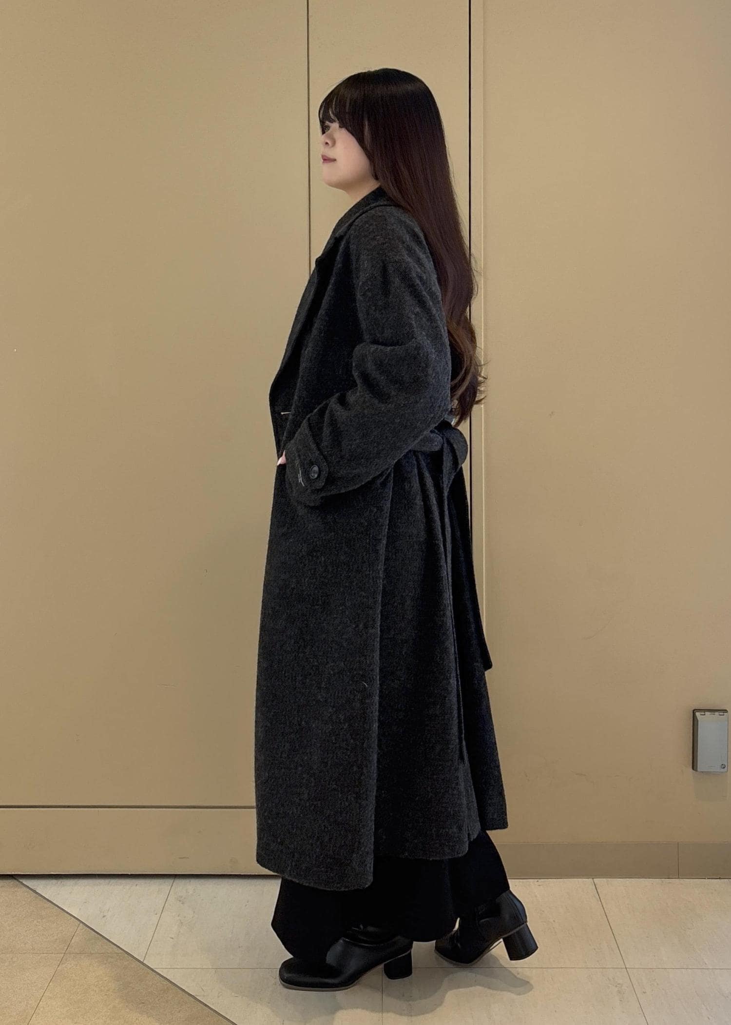 ROPÉ PICNICJAPAN FABRIC スタンドカラーロングコート/一部WEB限定カラーブラック系 / F¥19,800レビュー161cm/Fサイズで脛の真ん中あたりまでの丈感です。全体的にゆとりがあり、やや厚みのあるニットの上からでも余裕で羽織ることができました。たっぷりとした見た目からは想像できないほど軽量で、ストレスフリーに着用できるロングコートです。
