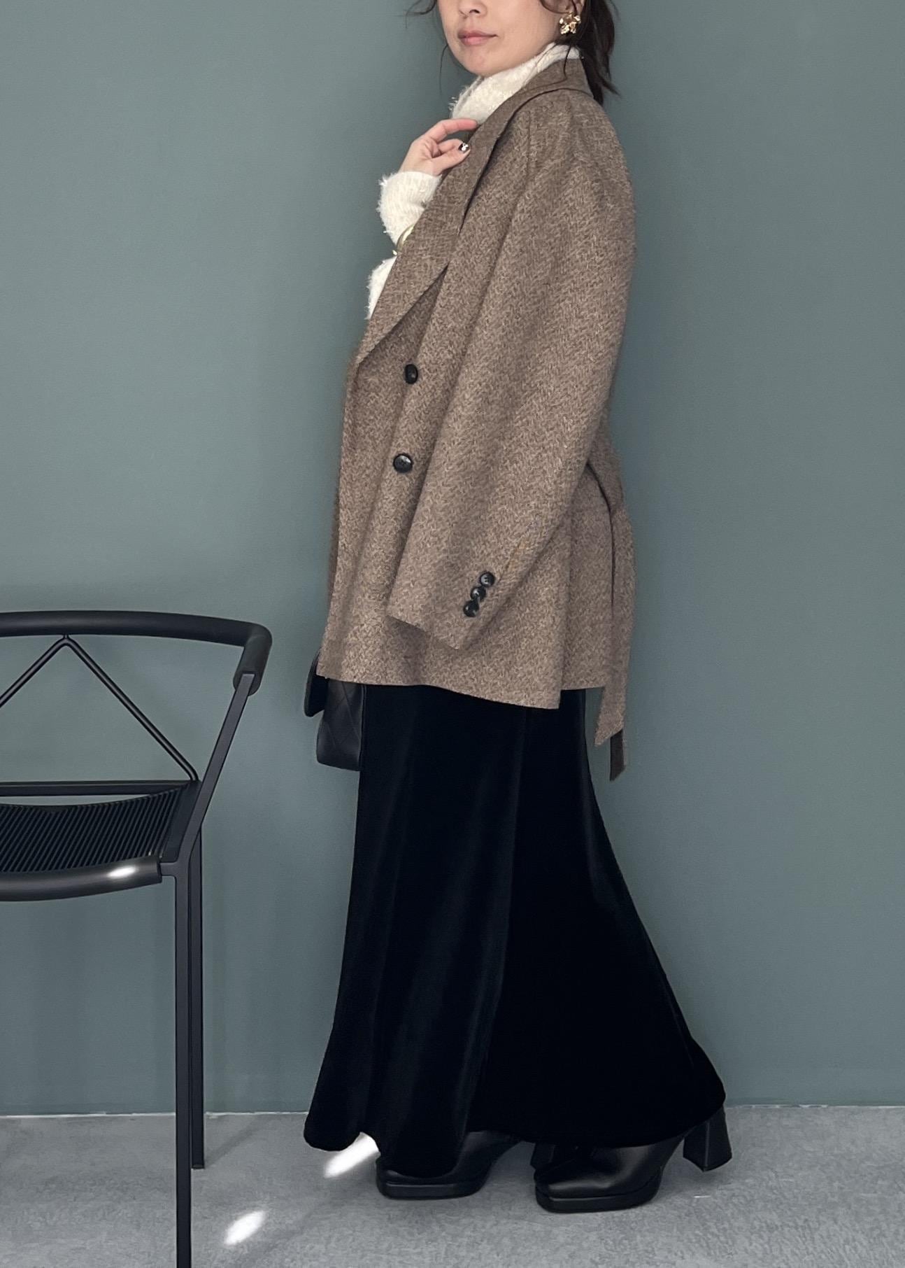 落ち感ロングベロアスカートで細見えしつつ、