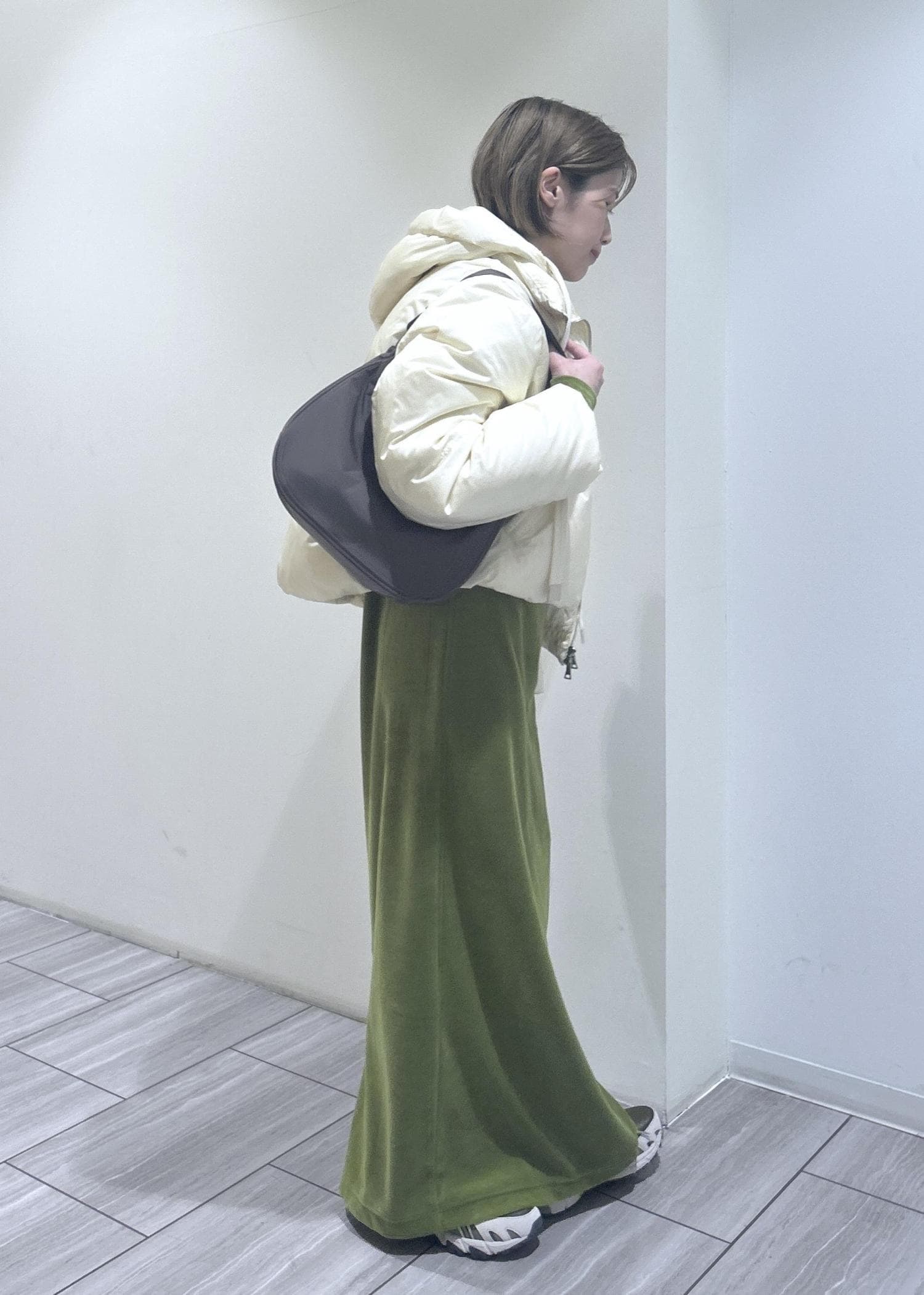 ADAM ET ROPÉ FEMMEベロア BOTANICAL DYED DRESSオリーブ / 1¥22,000レビューラインを拾い過ぎず、程良いサイズ感です!ストンと落ちたシルエットなので、スタイルアップ効果も◎