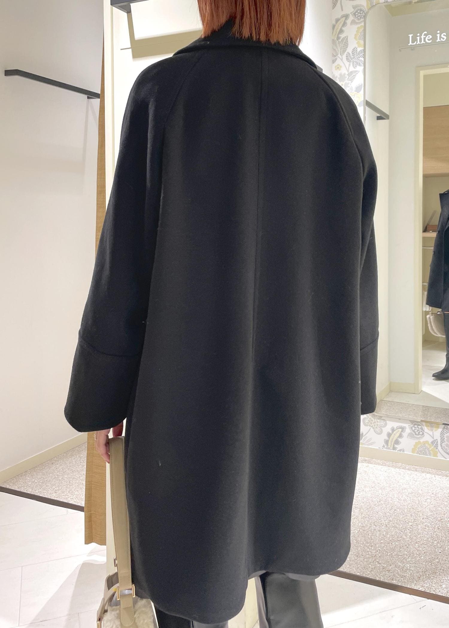 着丈は160cmで膝にややかかるくらいのロング丈ですが、見た目以上に軽い着心地でさらっと羽織りやすいです。