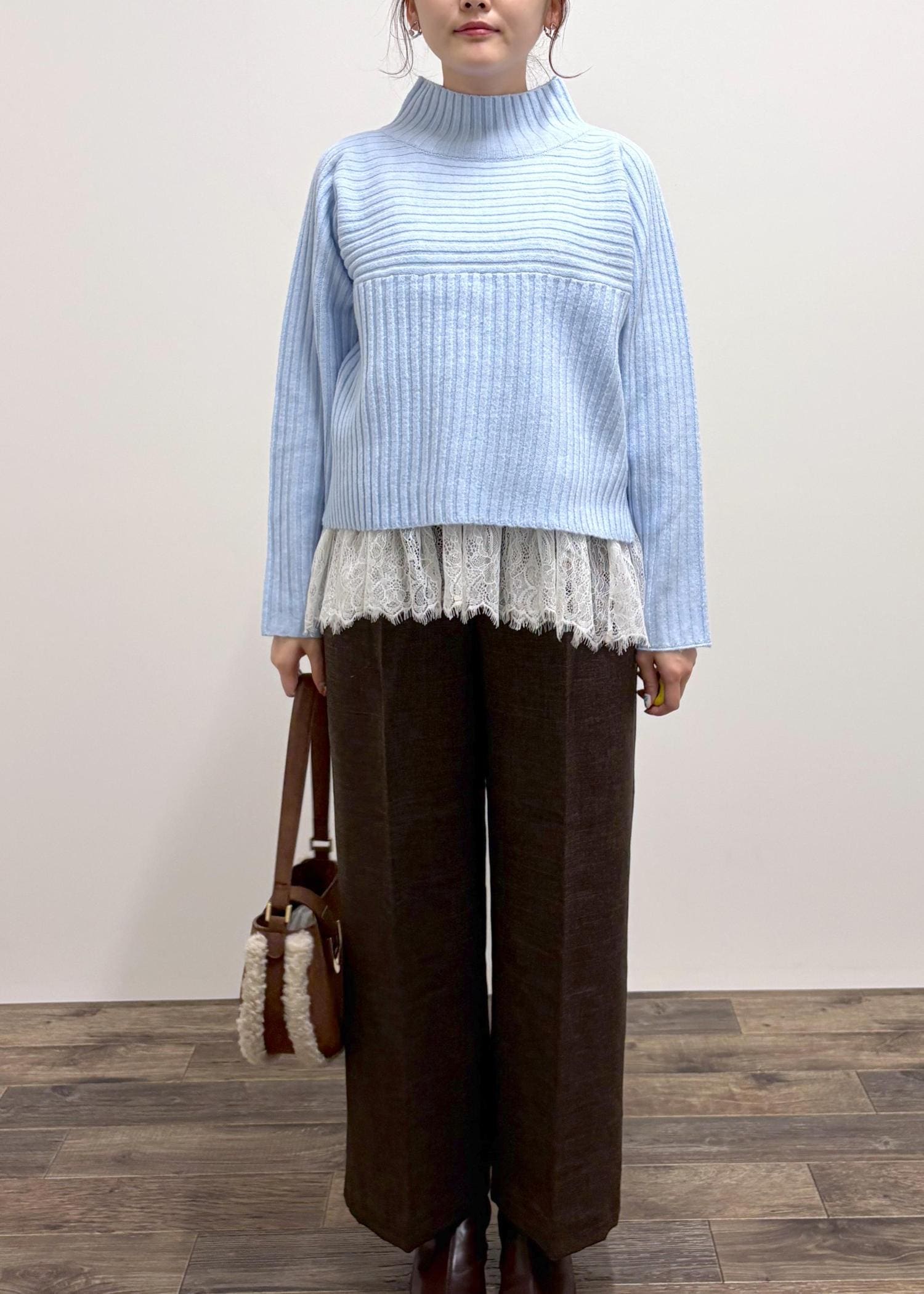 ROPÉ PICNICもちもちリブ切り替えニットプルオーバー/イージーケア・リンクコーデサックス / M¥4,499レビュー毎年人気のリブ切り替えニットです。