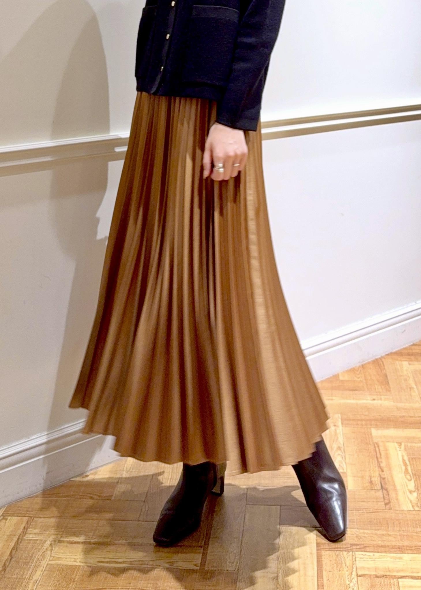 ROPÉシャイニープリーツスカート/イージーケアキャメル / F¥26,400レビュー身長165cmでFサイズを着用しています。