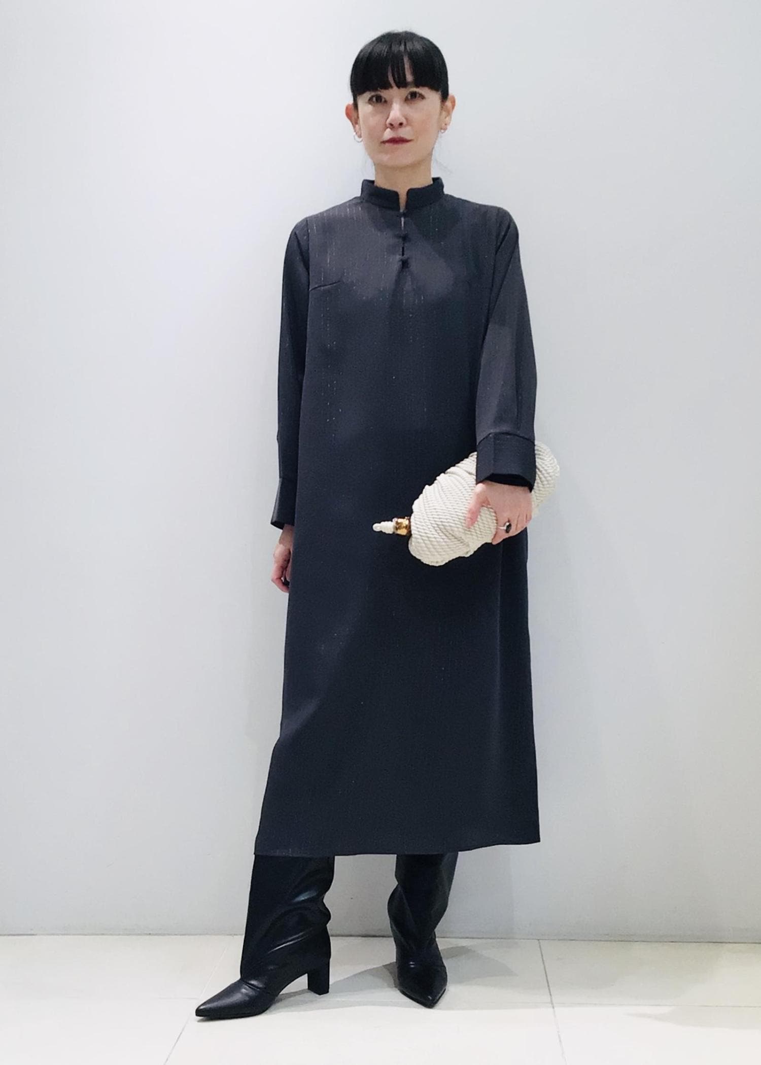 LE CERCLE par ropéラメストライプワンピースチャコール / F¥10,450レビューゆったりと着られるサイズ感ですが、ストンと落ち感がありすっきりシャープな印象のワンピース