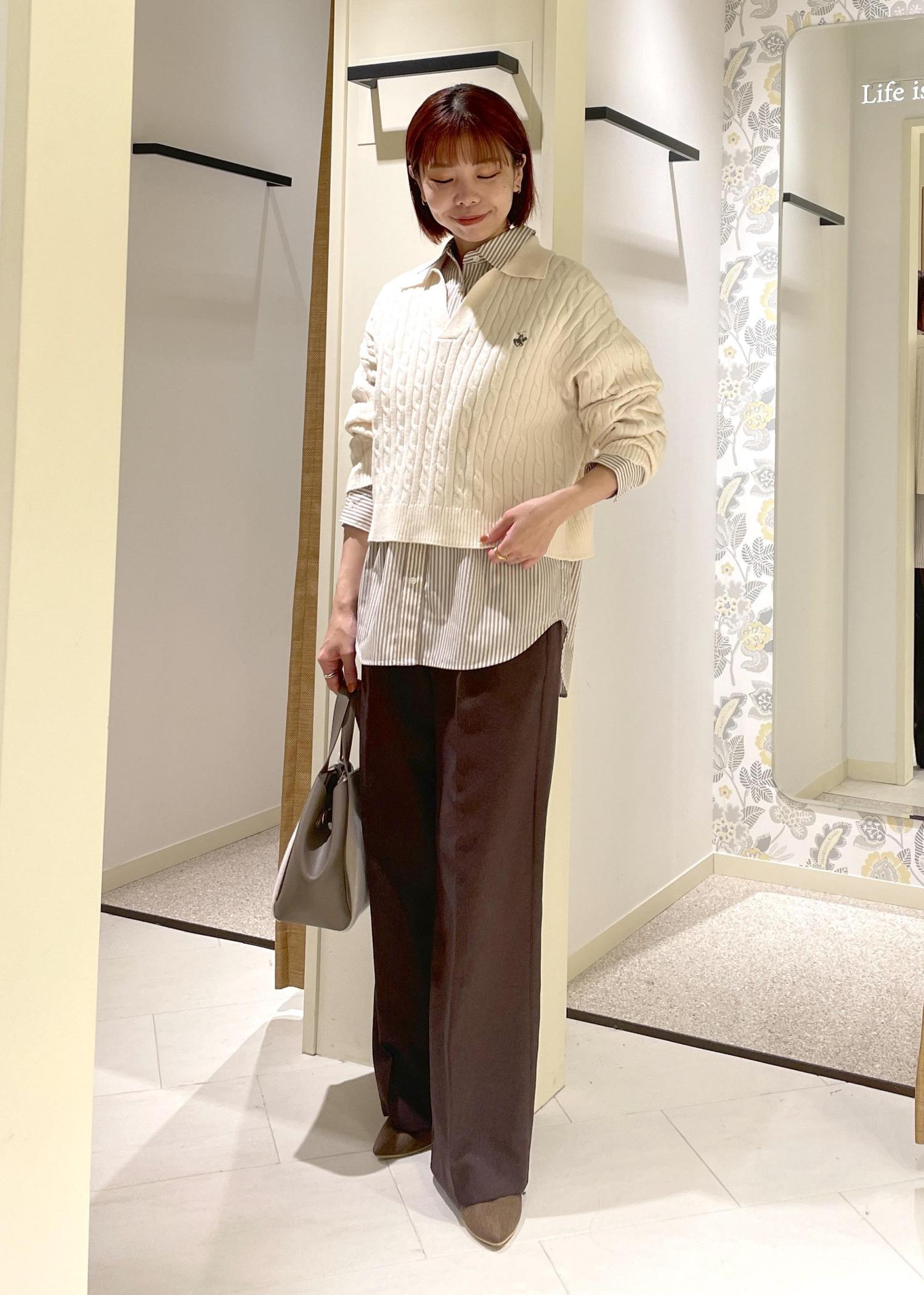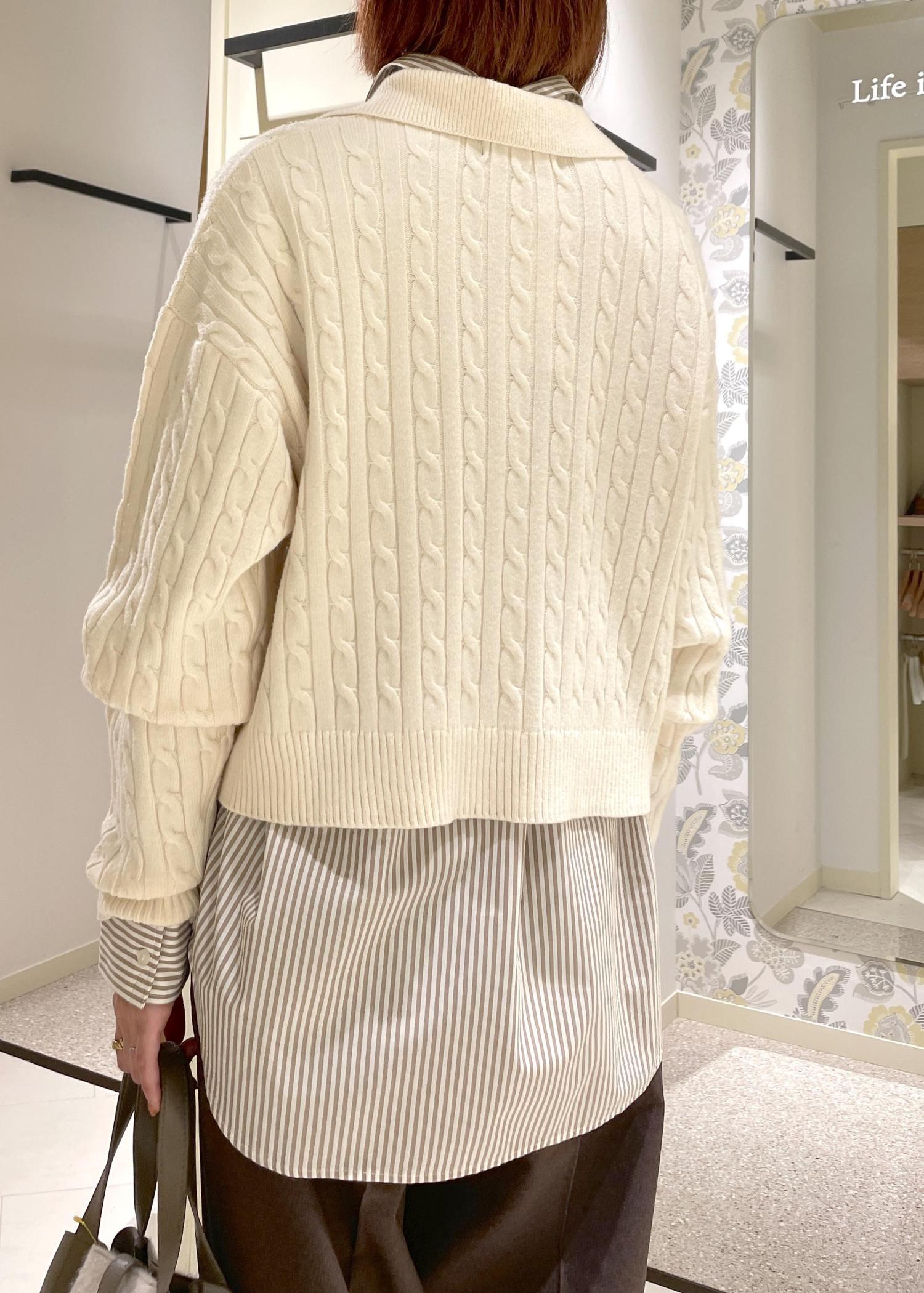 顔まわりがすっきりと見えるスキッパーのデザインで、今年らしく襟付きのシャツをレイヤードして頂くのもオススメです。 -
