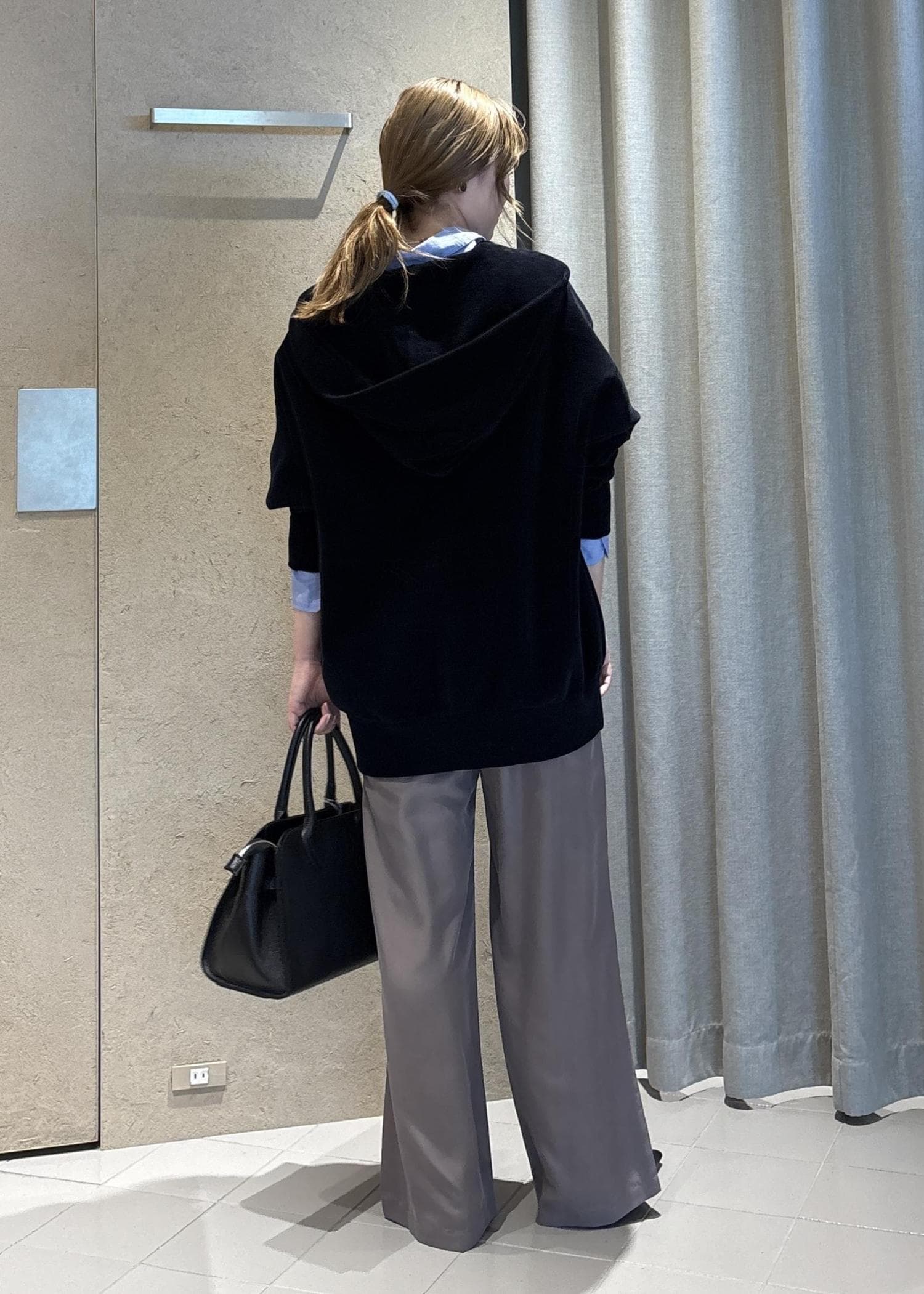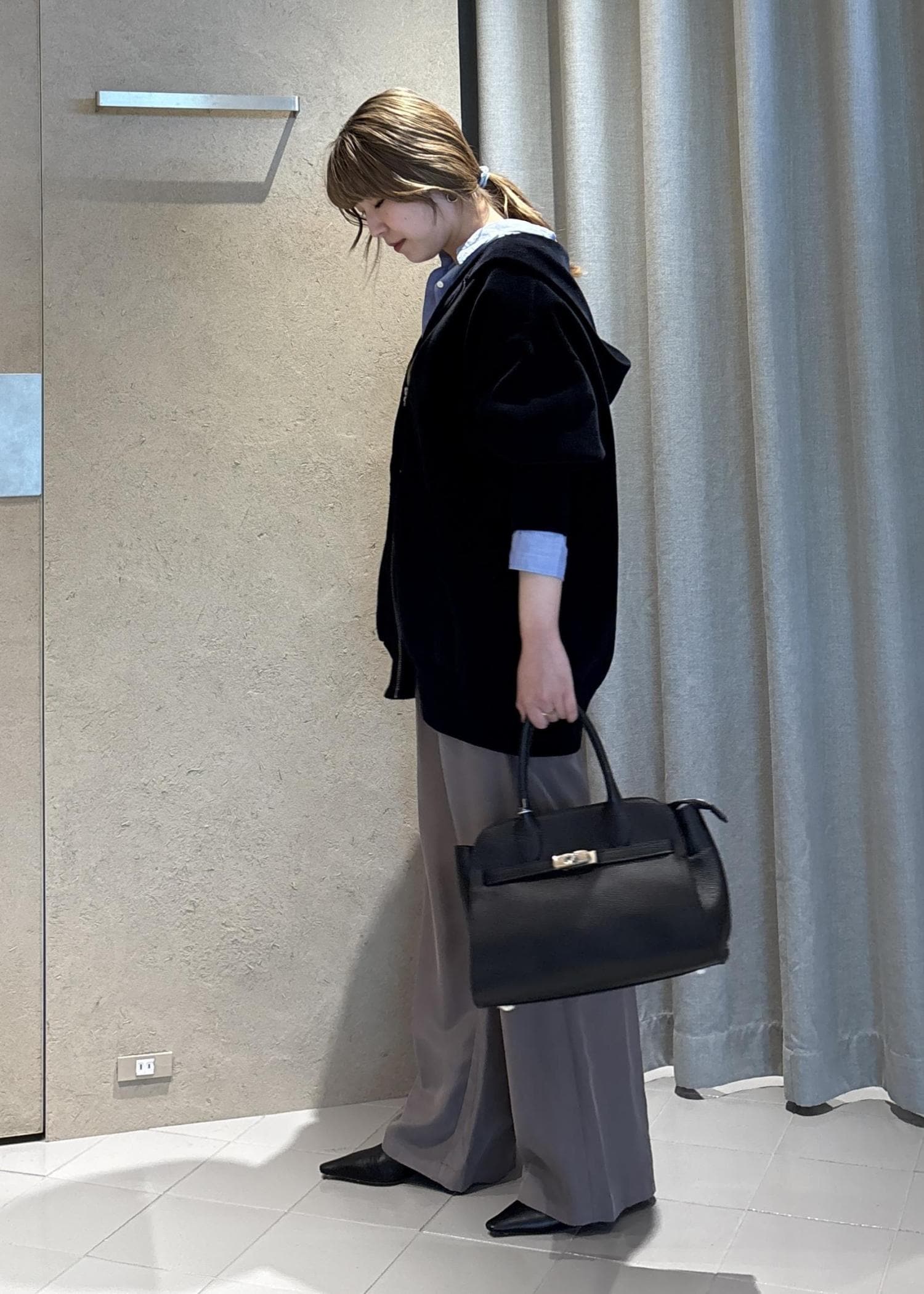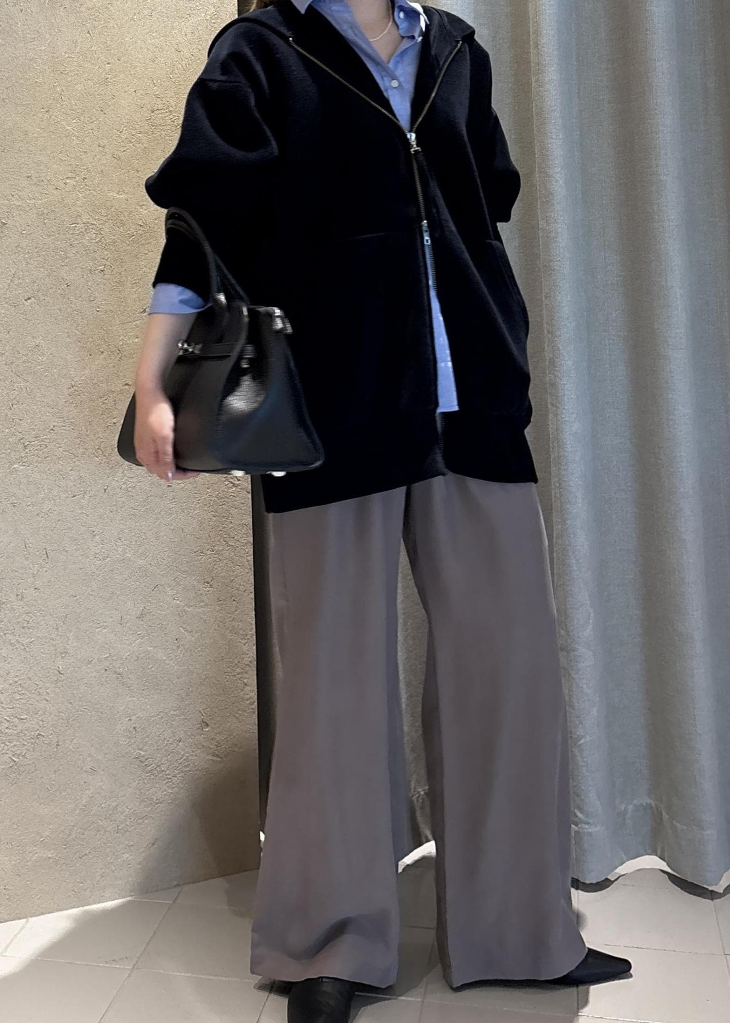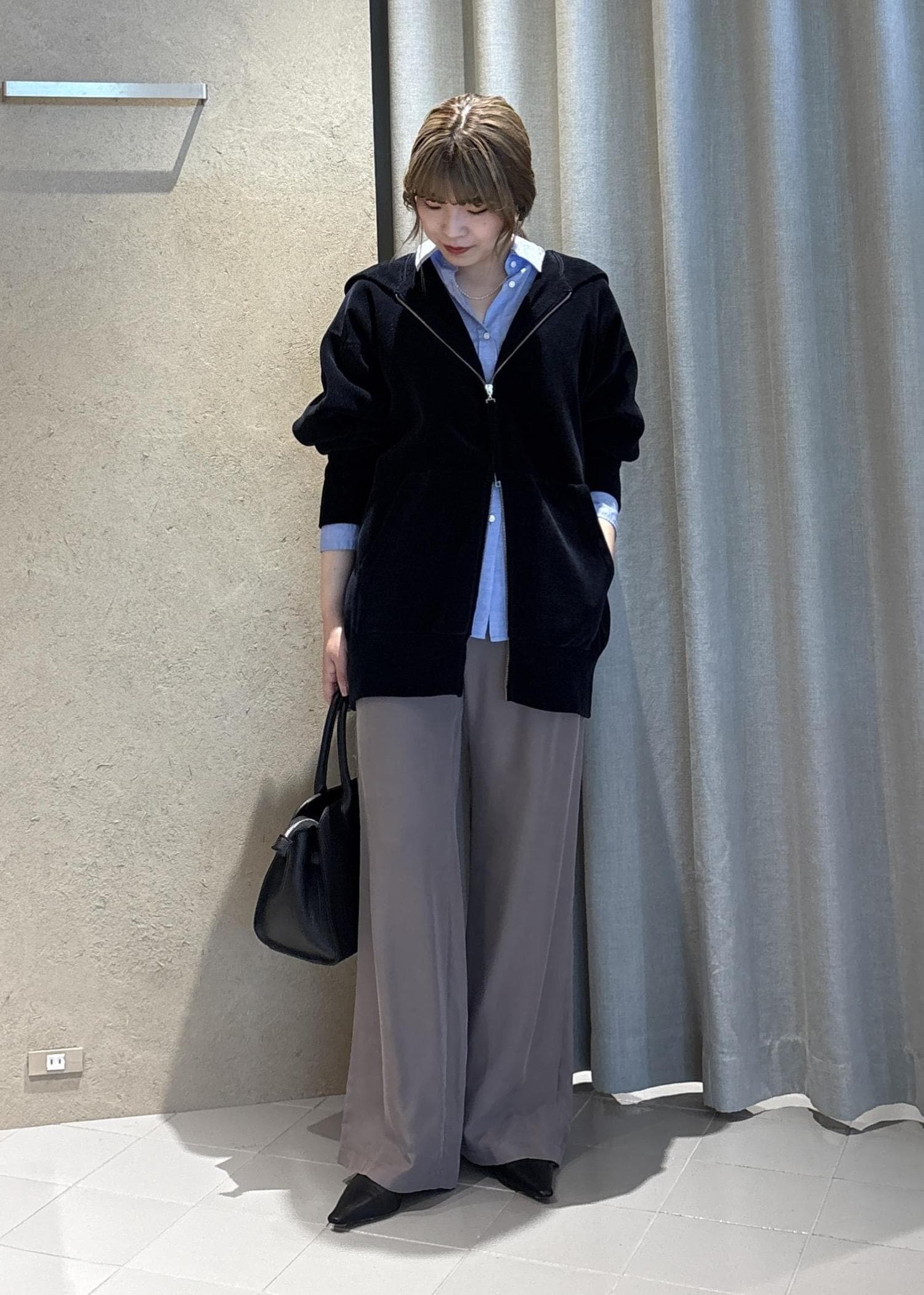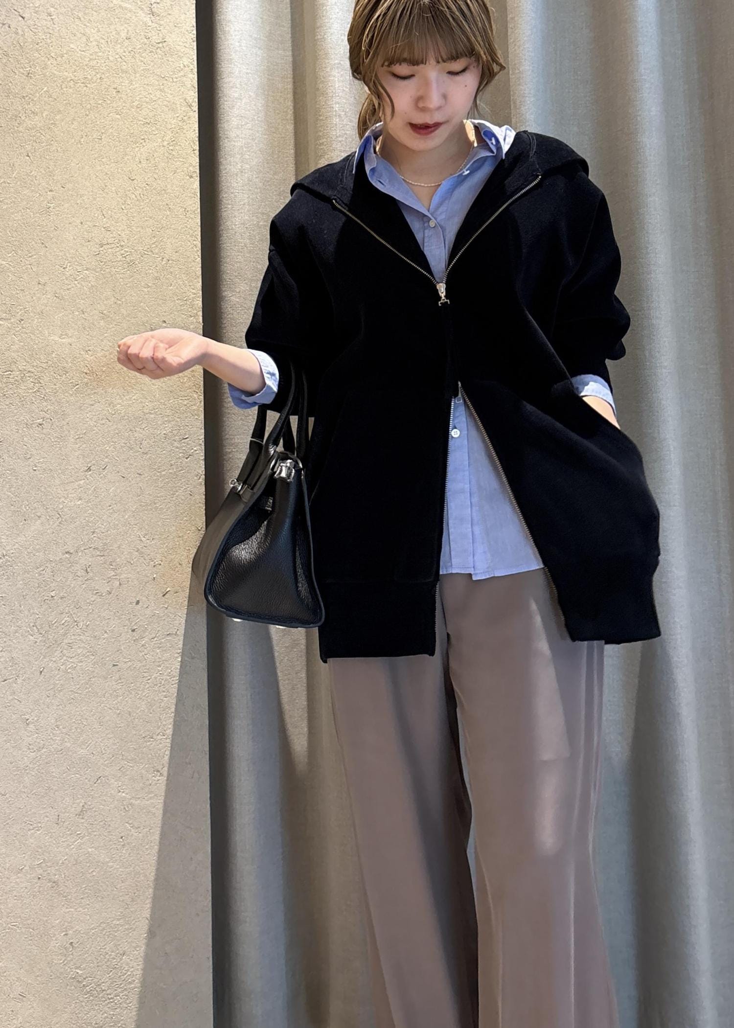 サロン定番のクリーミーコットンのパーカーは、肉厚な素材になるので、少し気温の高い冬の日にはアウターとして着用できそうです!