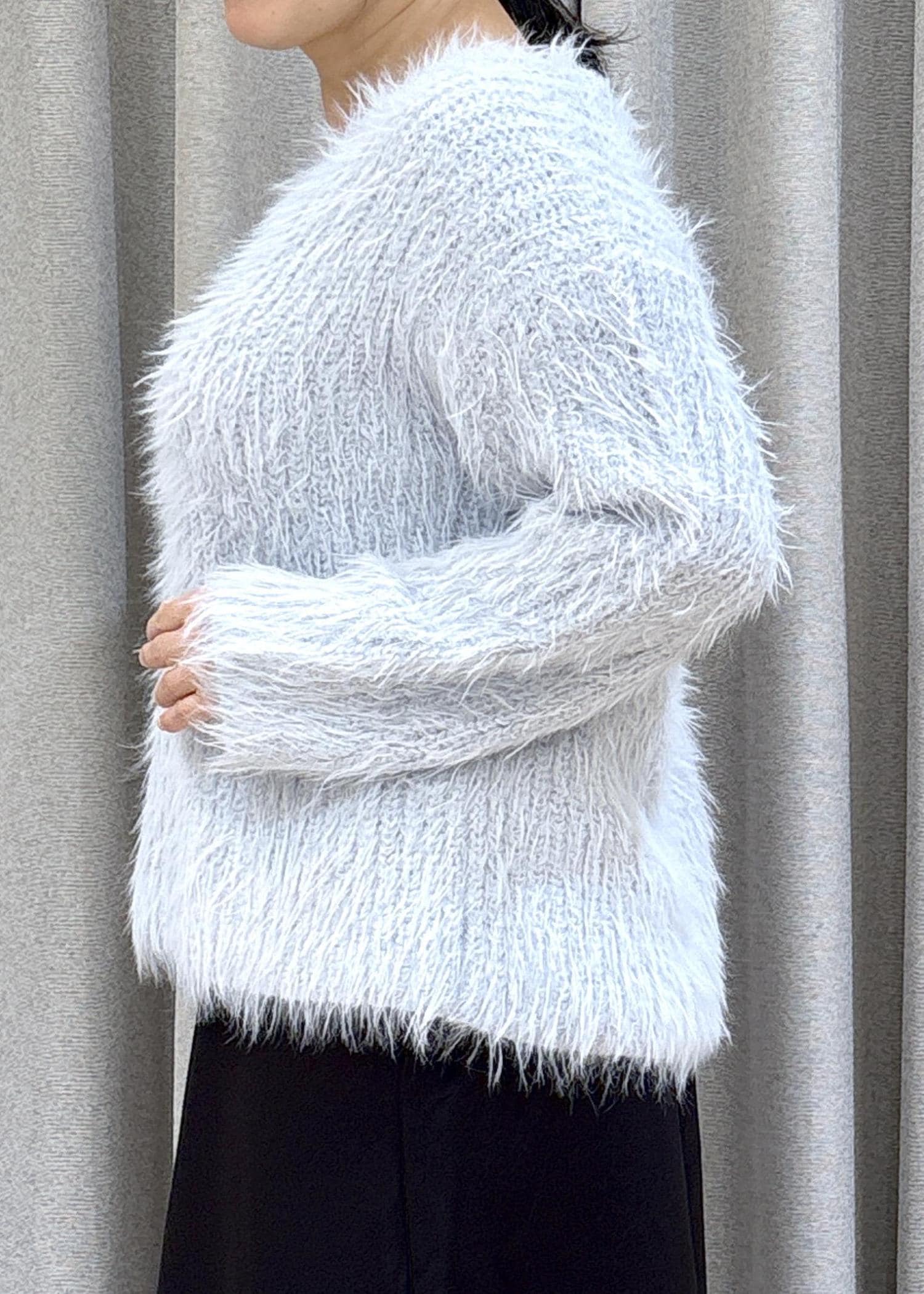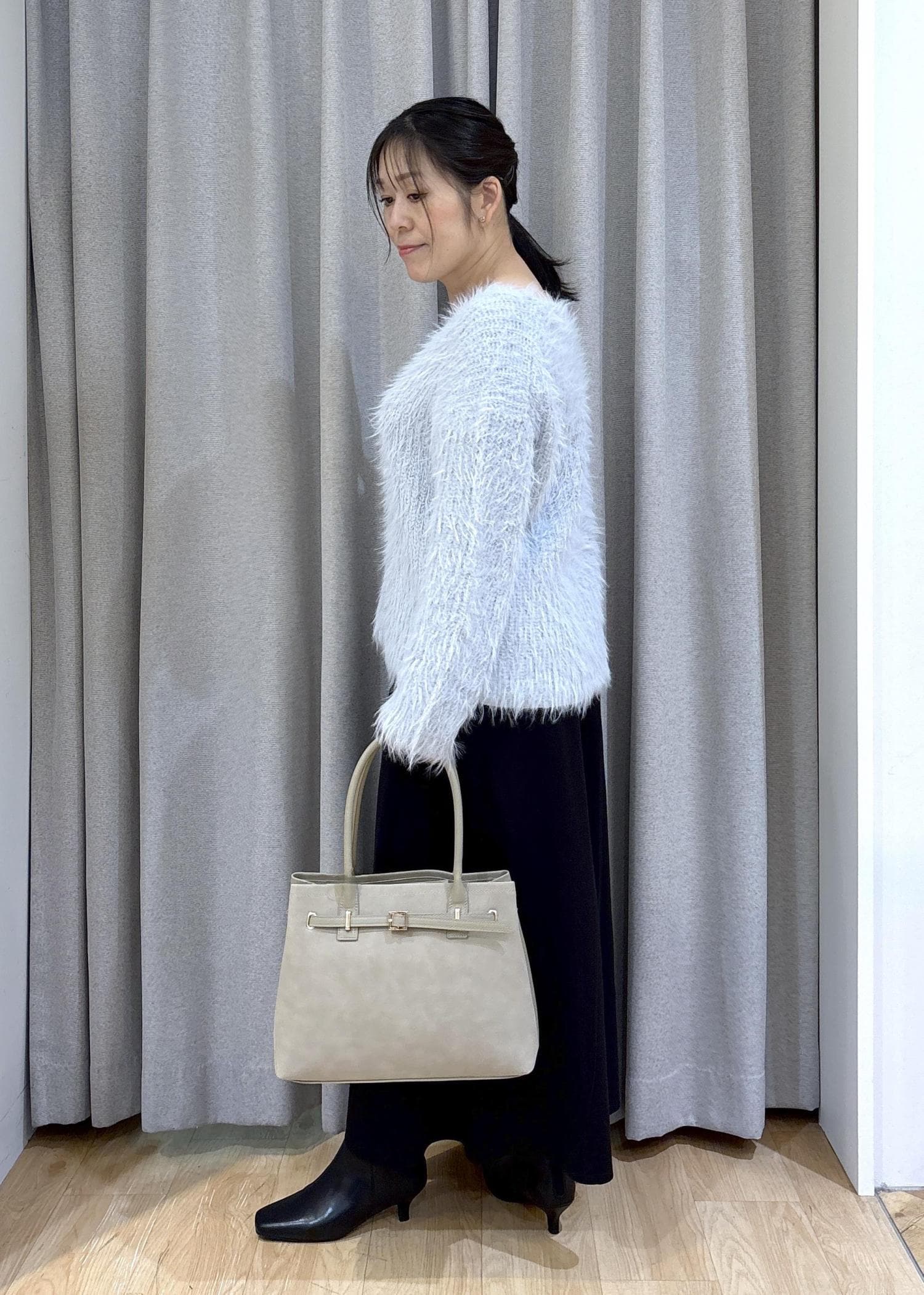 ぼとむすをシンプルにすることで、ふわふわニットがより可愛く見えます。