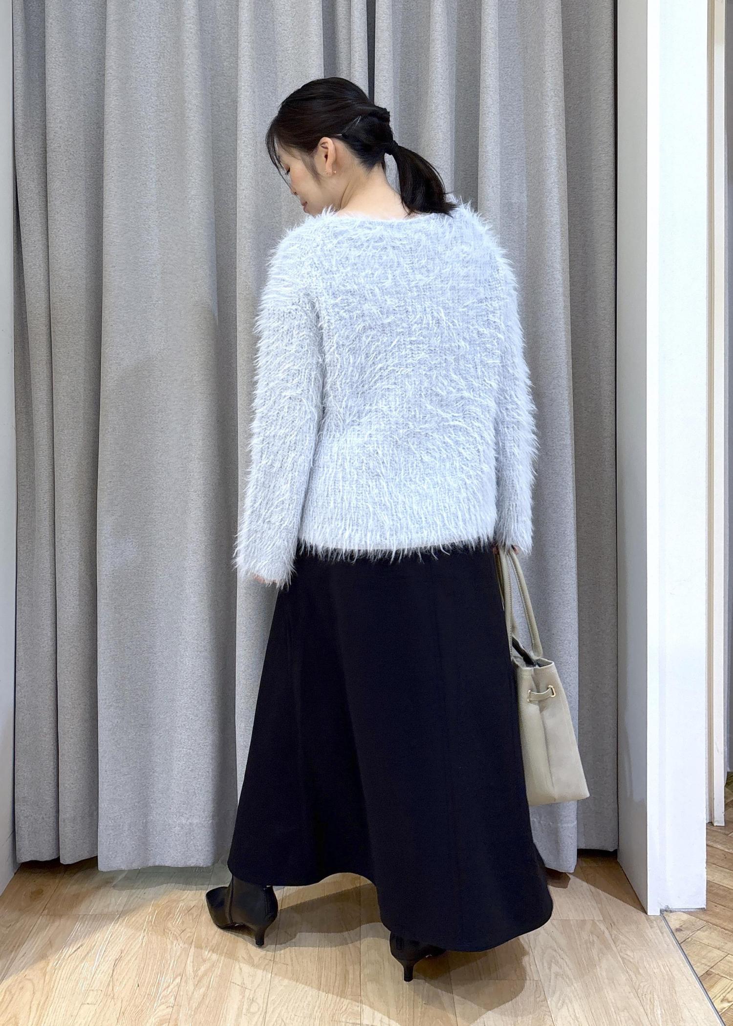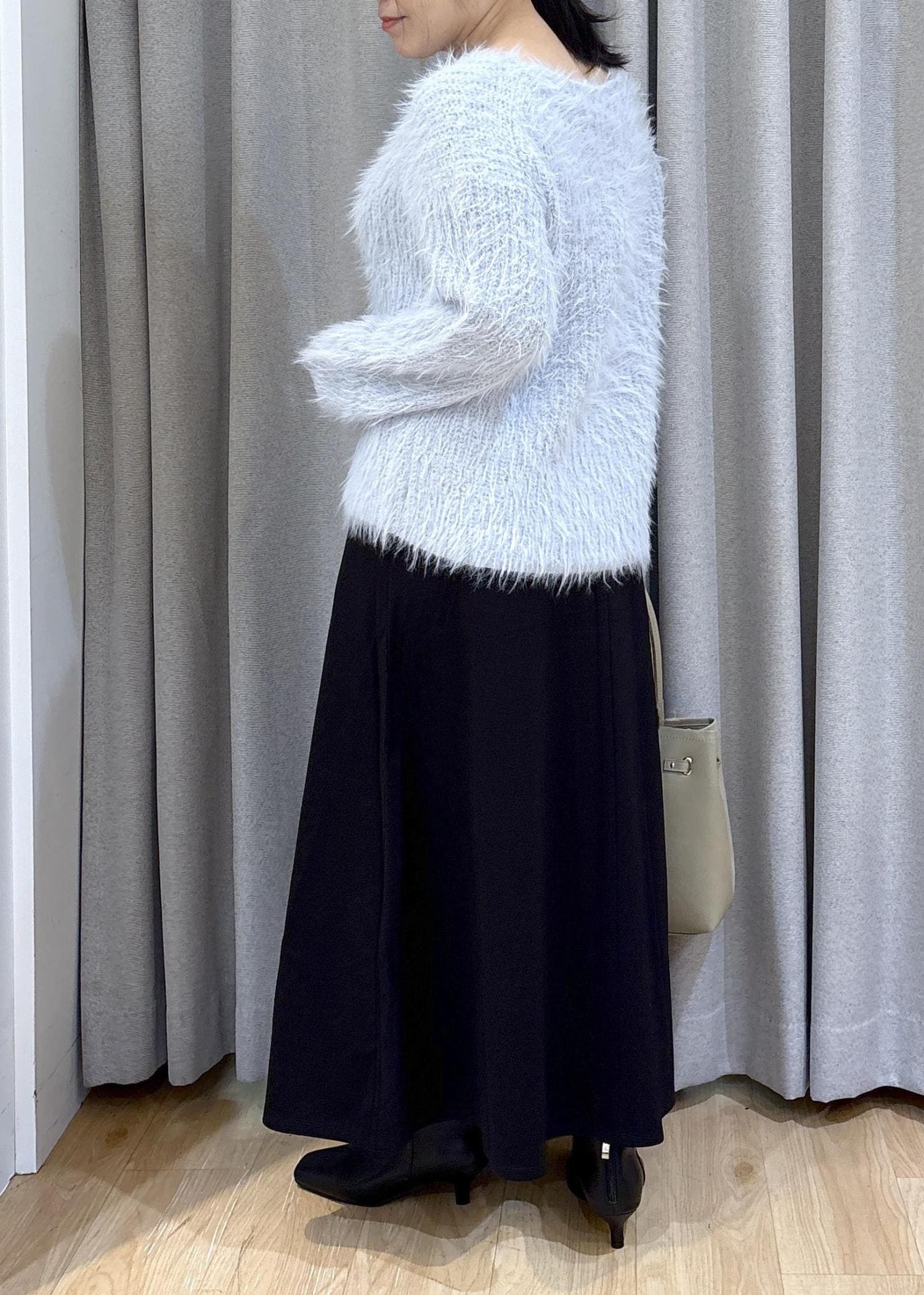 ふわふわニットにシンプルなフレアースカートを合わせました。