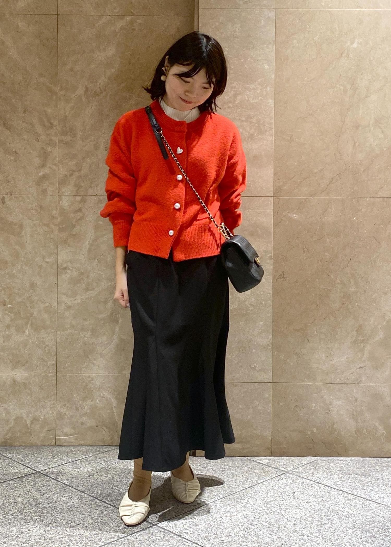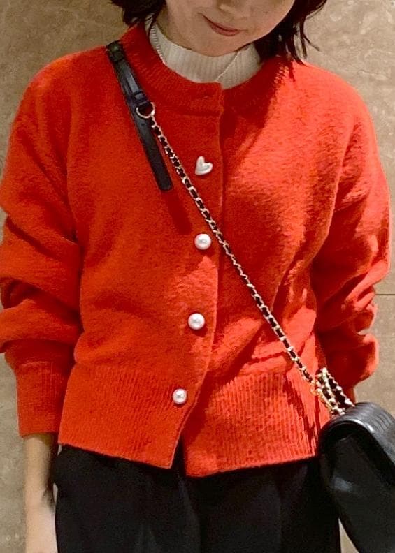 VISハートアソートパール釦ラメミックスカーディガン/イージーケア・一部WEB限定カラーレッド / F¥5,489レビュー150cmで腰にかかる丈感でした!