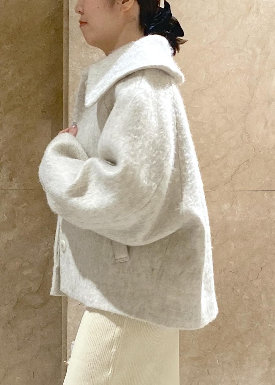 予約VIS【アウター総選挙1位】ビッグカラーモモンガシャギーショートコートオフホワイト / S¥10,989レビュー150cmでSサイズ着用し、お尻が隠れるぐらいの丈感でした!