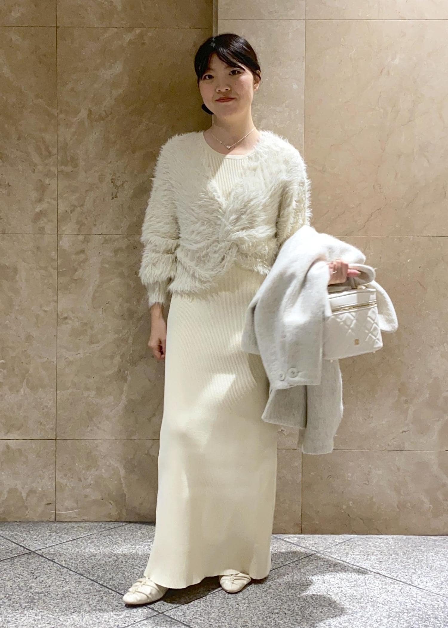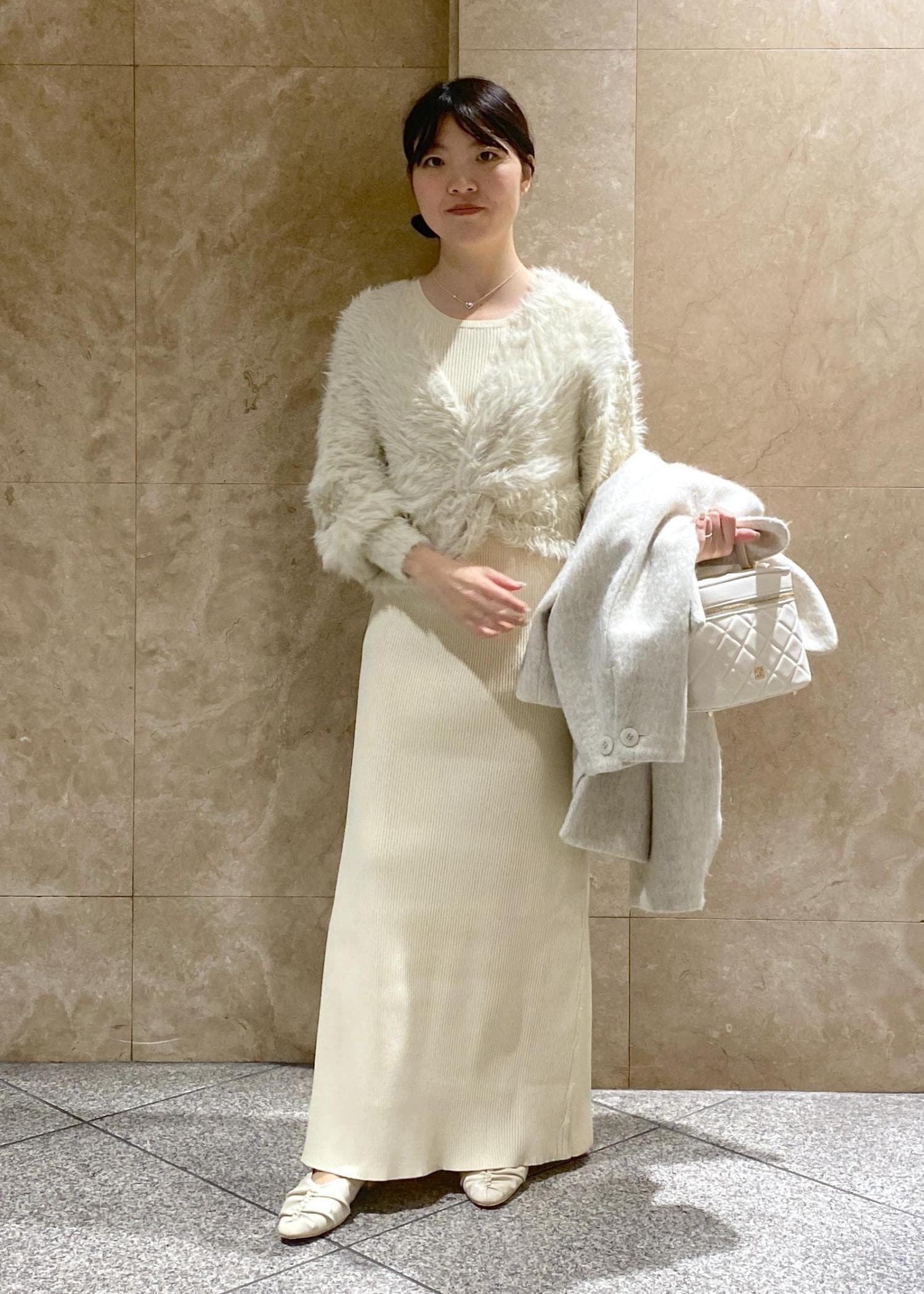 VISファーハンドルキルティング&ツイードバニティバッグ/2WAYオフホワイト / F¥7,909レビューキルティングがとても上品です◎
