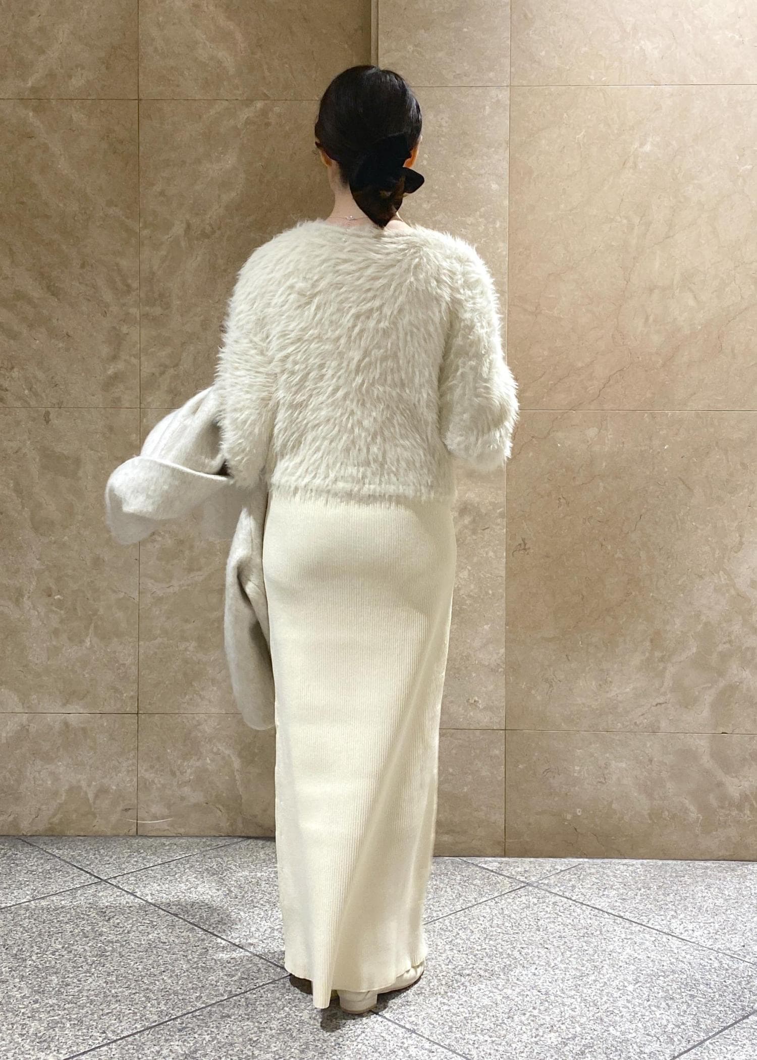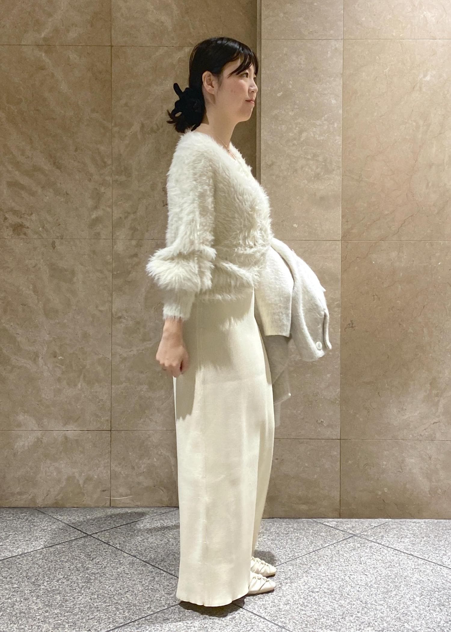 リブニットですが、お尻のラインも拾わないので、安心して着用できます! -