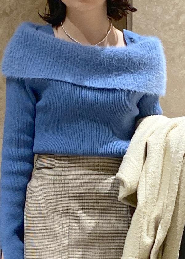 VISフェザーヤーンオフショルもちもちリブニット/イージーケアブルー系 / F¥5,929レビュー150cmで腰に当たる丈感でした!