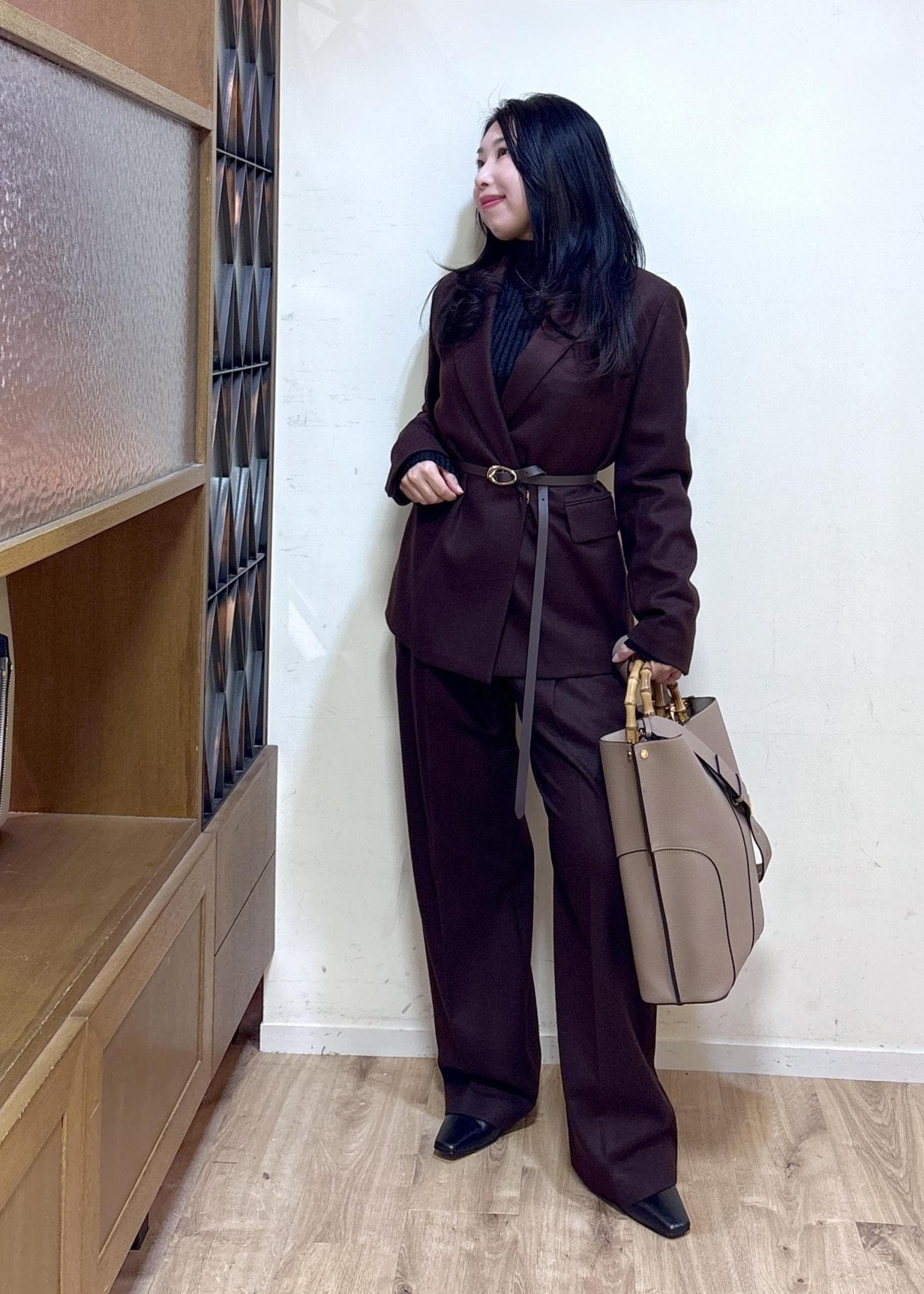 ROPÉウールフランネルセミダブルジャケット/セットアップ対応ダークブラウン / 38¥44,000レビュー身長152cm 38サイズ着用