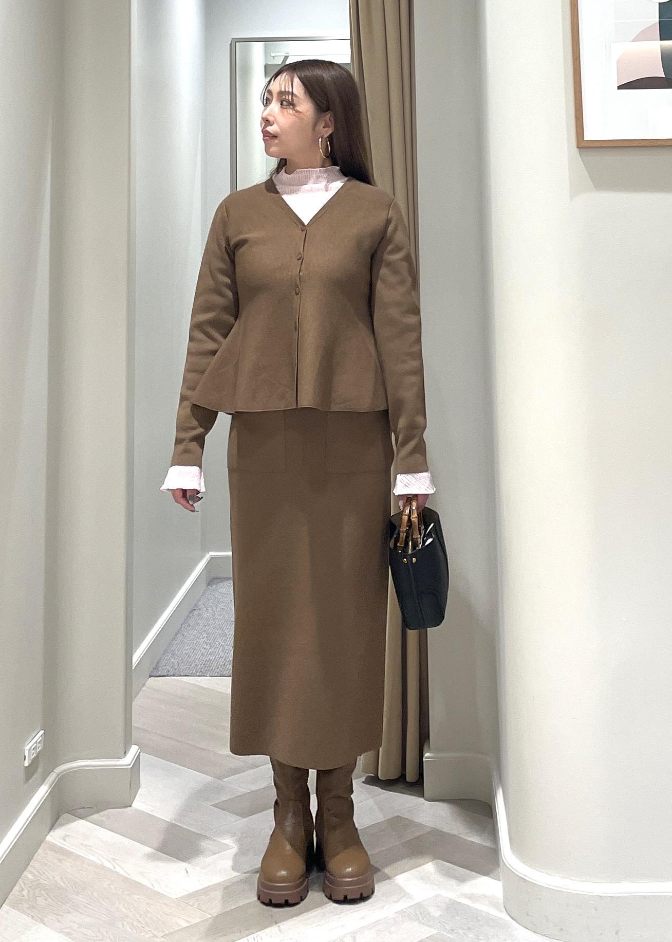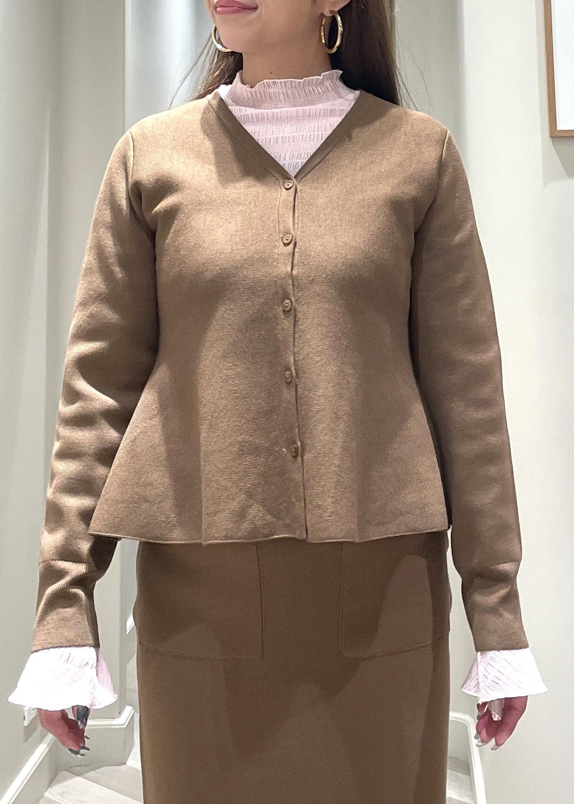 NEW!ROPÉウール混ニットペプラムカーディガン/イージーケア・セットアップ対応ブラウン / F¥27,500レビュー肩周りと、胸囲はピッタリとフィットしていて、