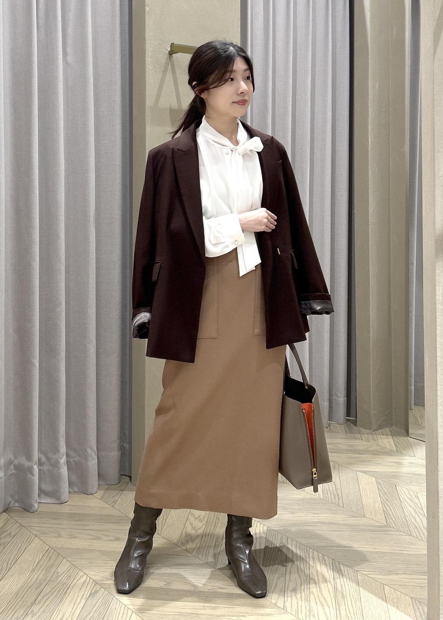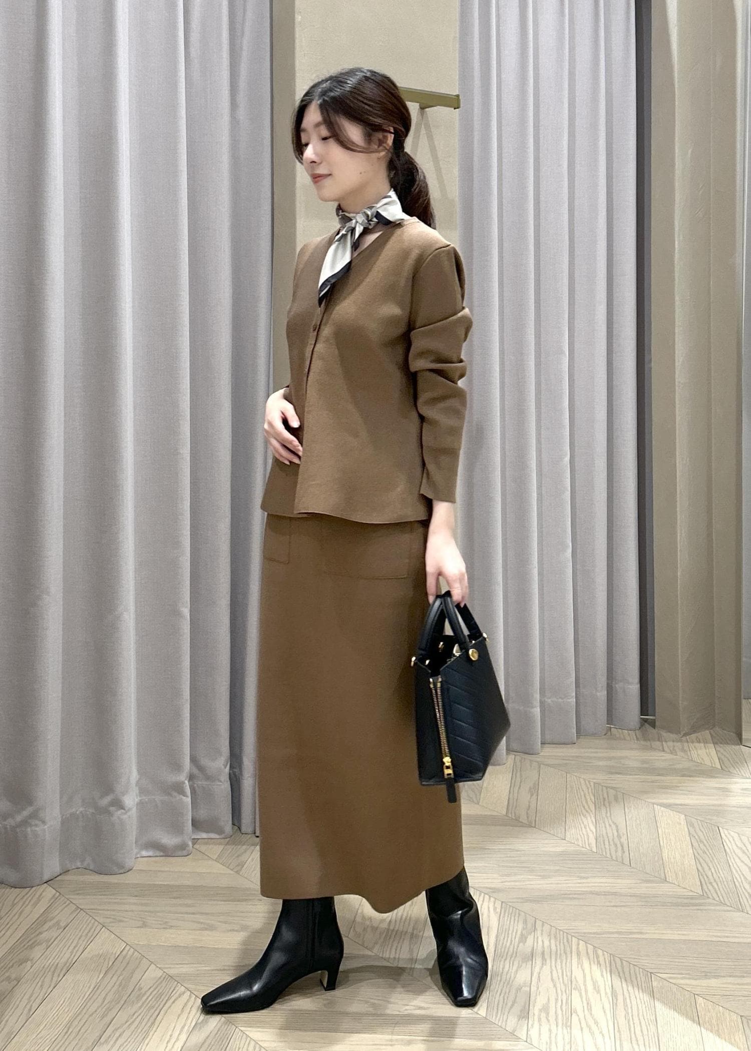 ROPÉウール混ニットポケット付きタイトスカート/イージーケア・セットアップ対応ブラウン / 36¥27,500レビューふくらはぎが隠れる程度の丈感です。