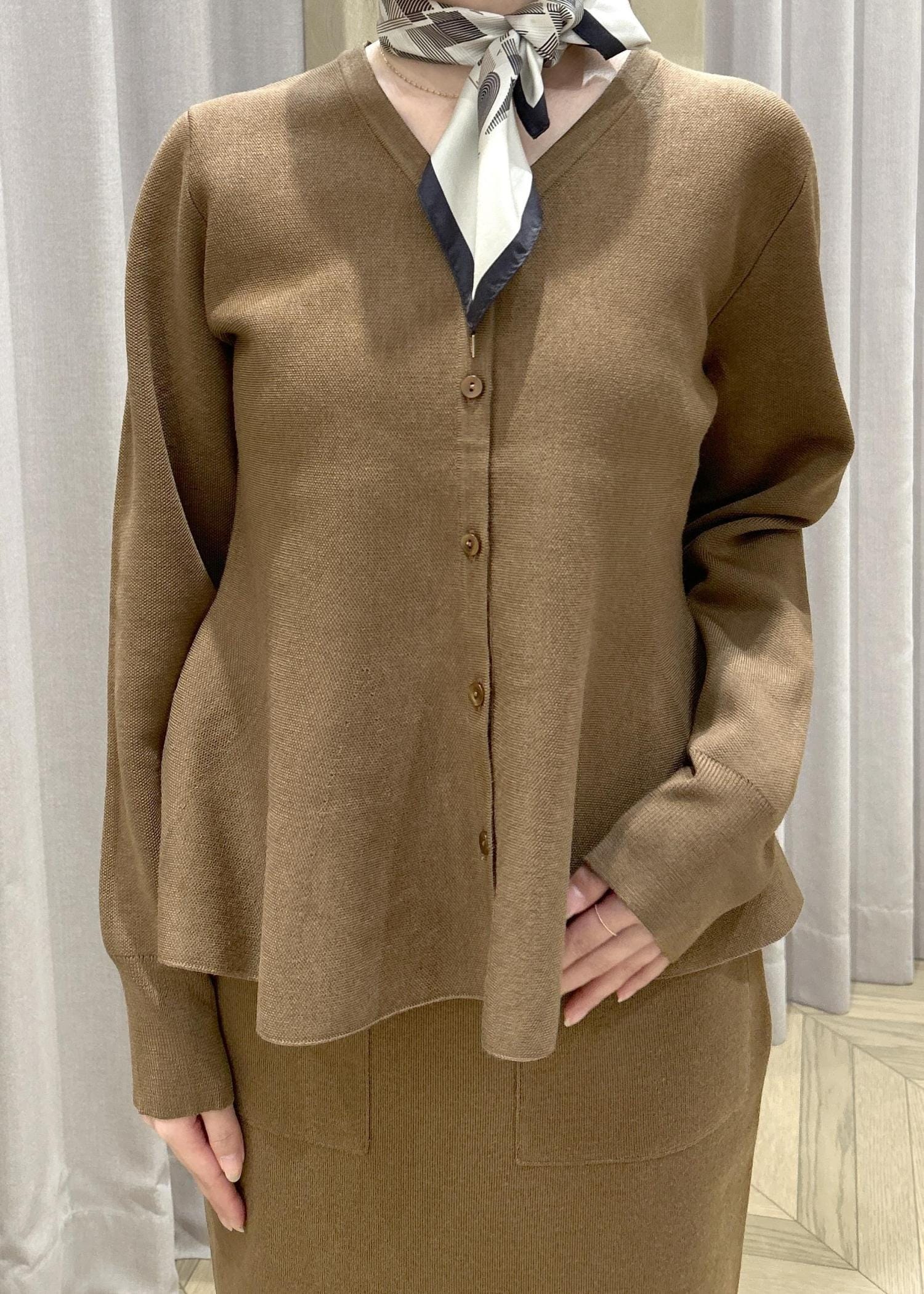 ROPÉウール混ニットペプラムカーディガン/イージーケア・セットアップ対応ブラウン / F¥27,500レビュー身長151㎝の私が着用して腰が隠れるくらいの丈感で、