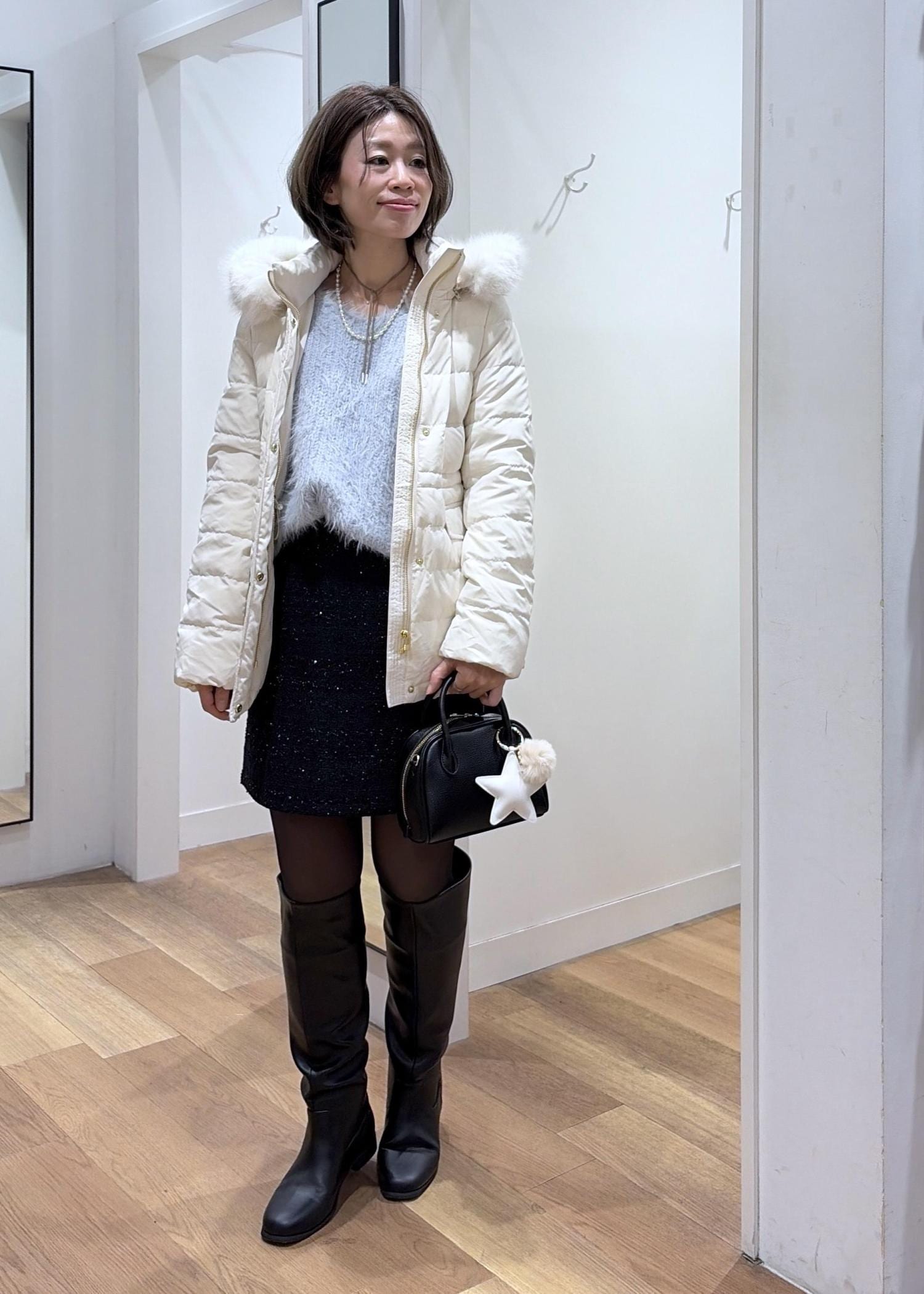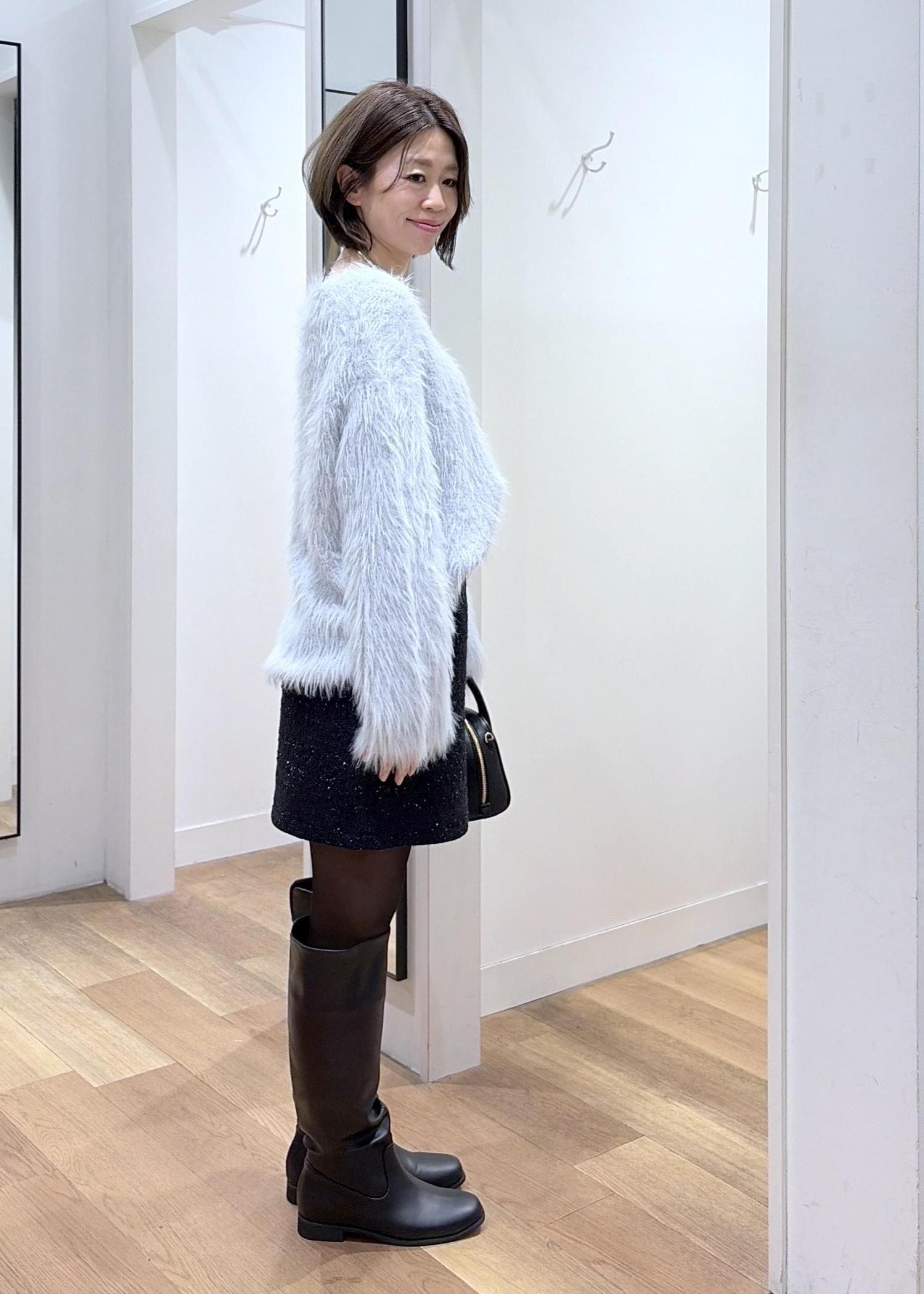 フェザーニット✖︎ミニスカートコーデ
