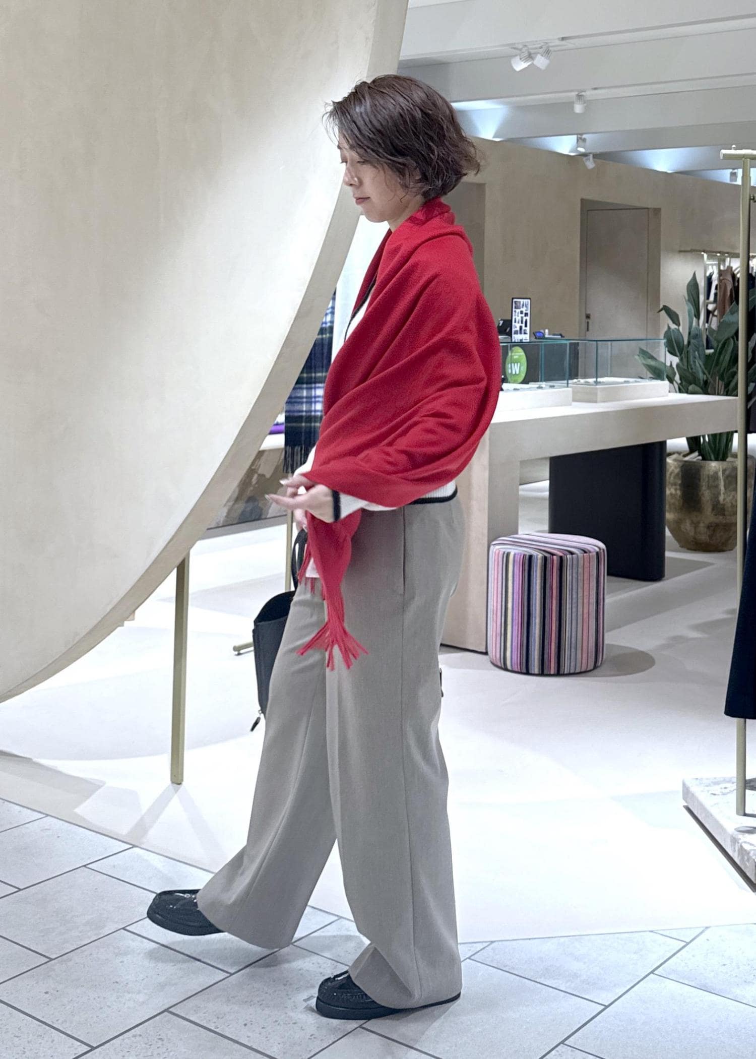 カラーアイテムに挑戦したいけど、ちょっと躊躇いが…という方にはストールだと