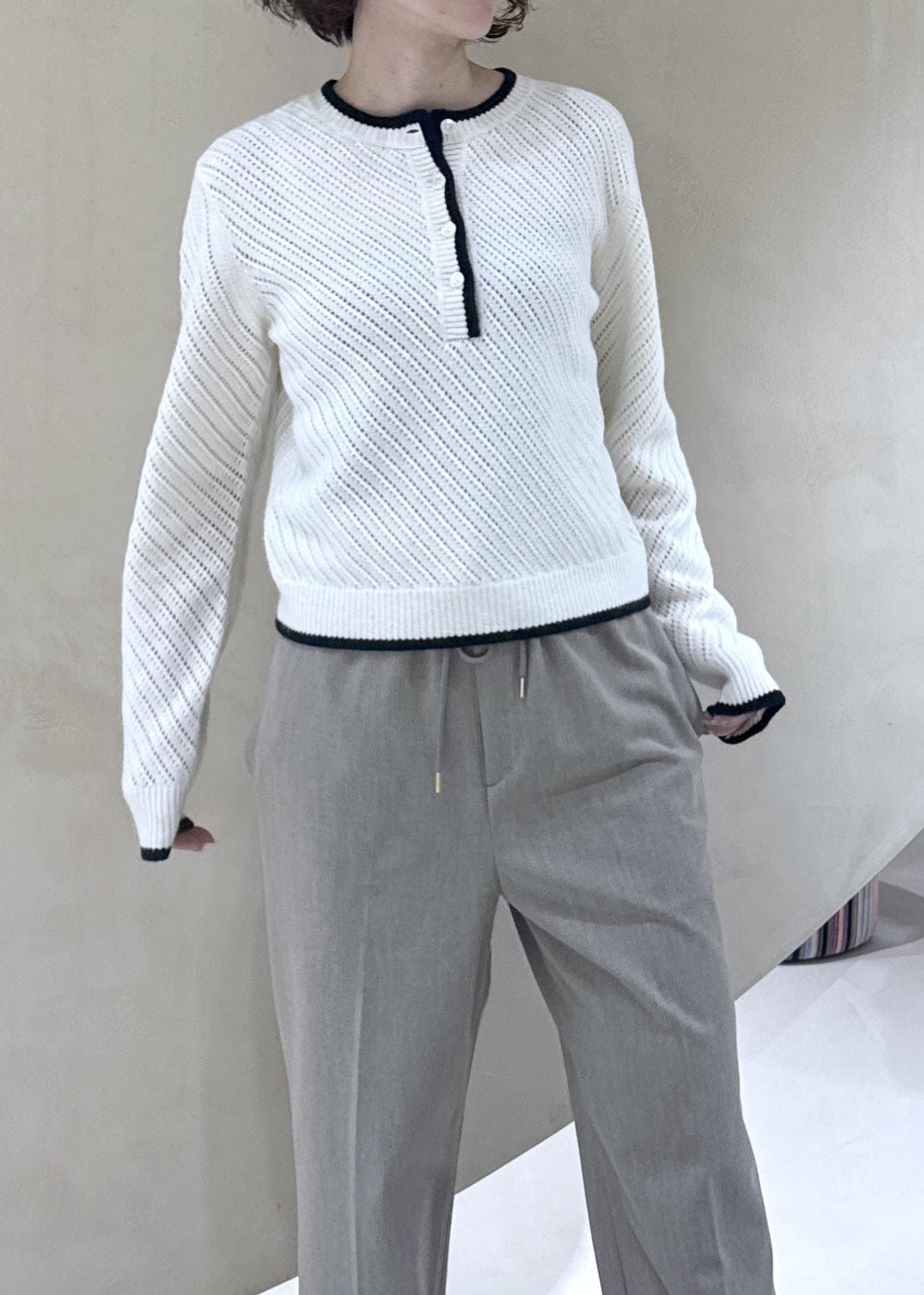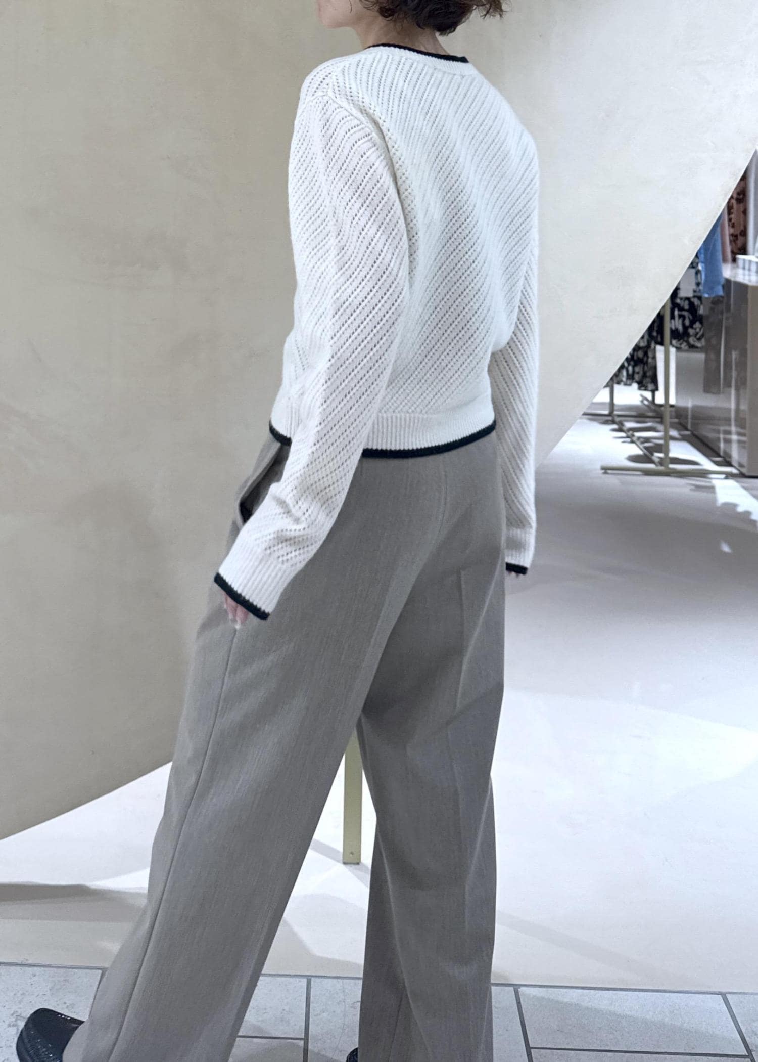 ROPÉカシミヤ混 透かし柄バイカラーニット/イージーケアオフホワイト / F¥27,500レビュー156cmでFサイズを着用しました。
