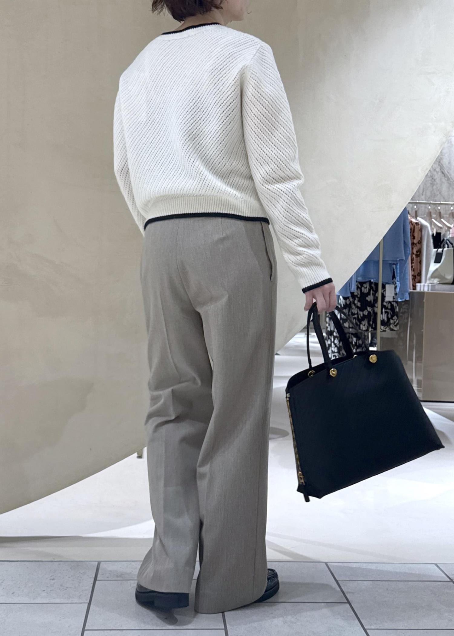 ヒップかかる丈なのでボトムはウエスト位置やボリュームを選ばず、合わせやすいです。 -