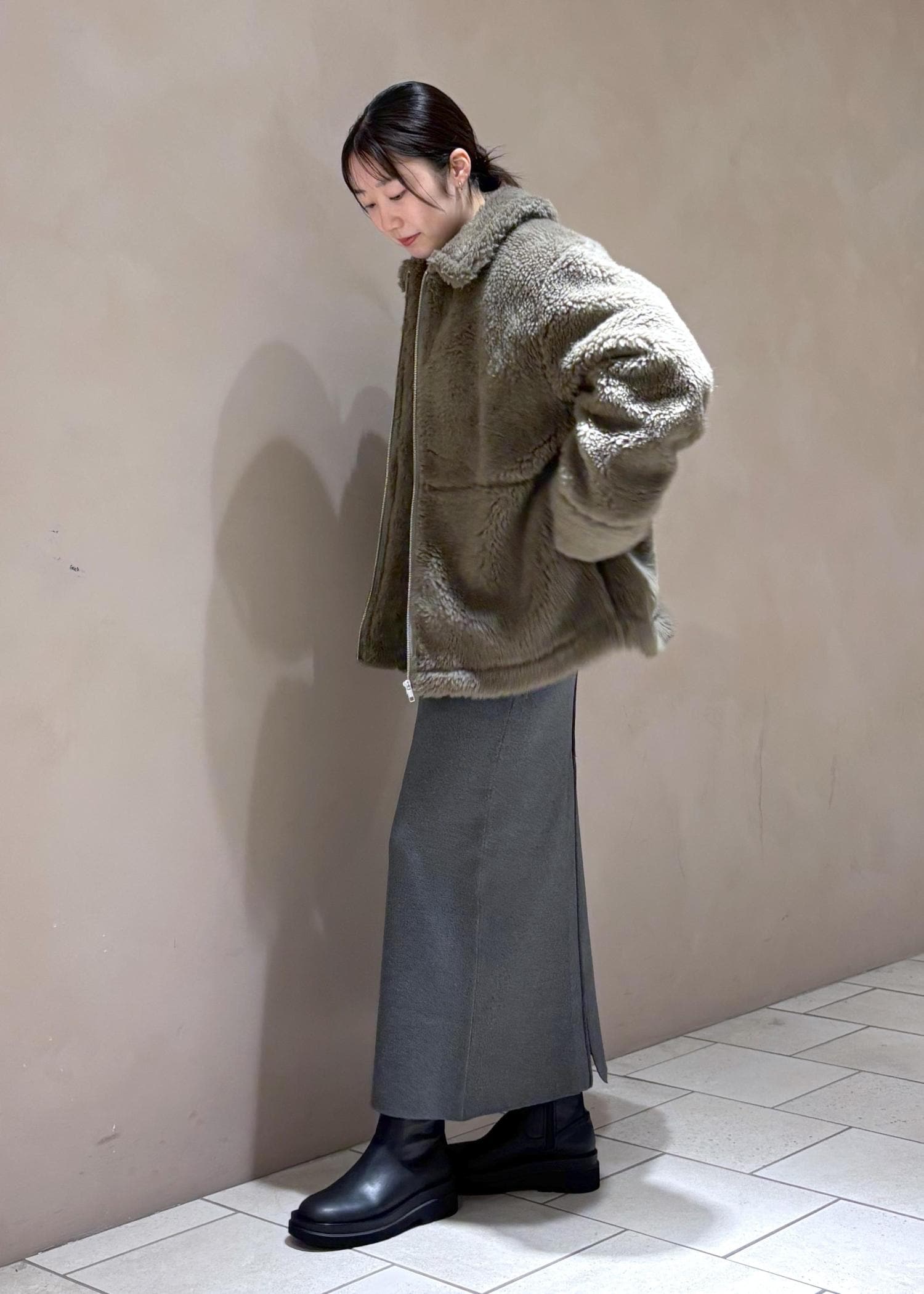 ADAM ET ROPÉ FEMMEスウィッチングボアブルゾンカーキ系 / F¥49,500レビューフワフワなファーはチクチクせず、暖かい。