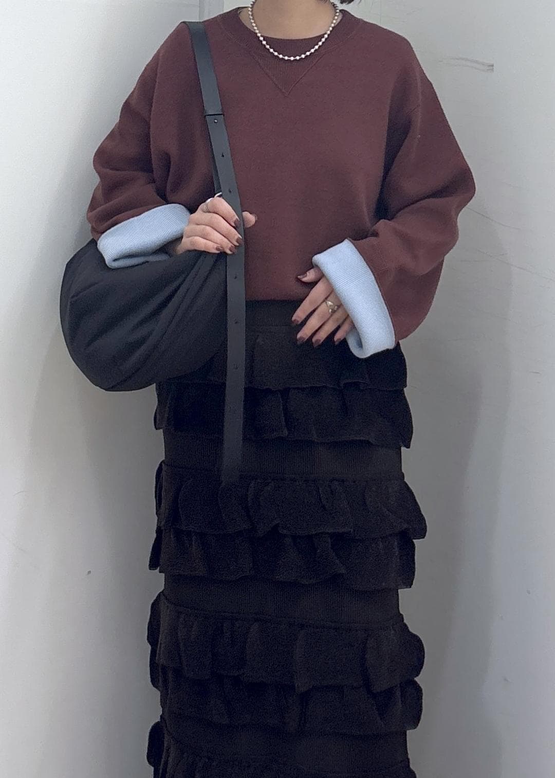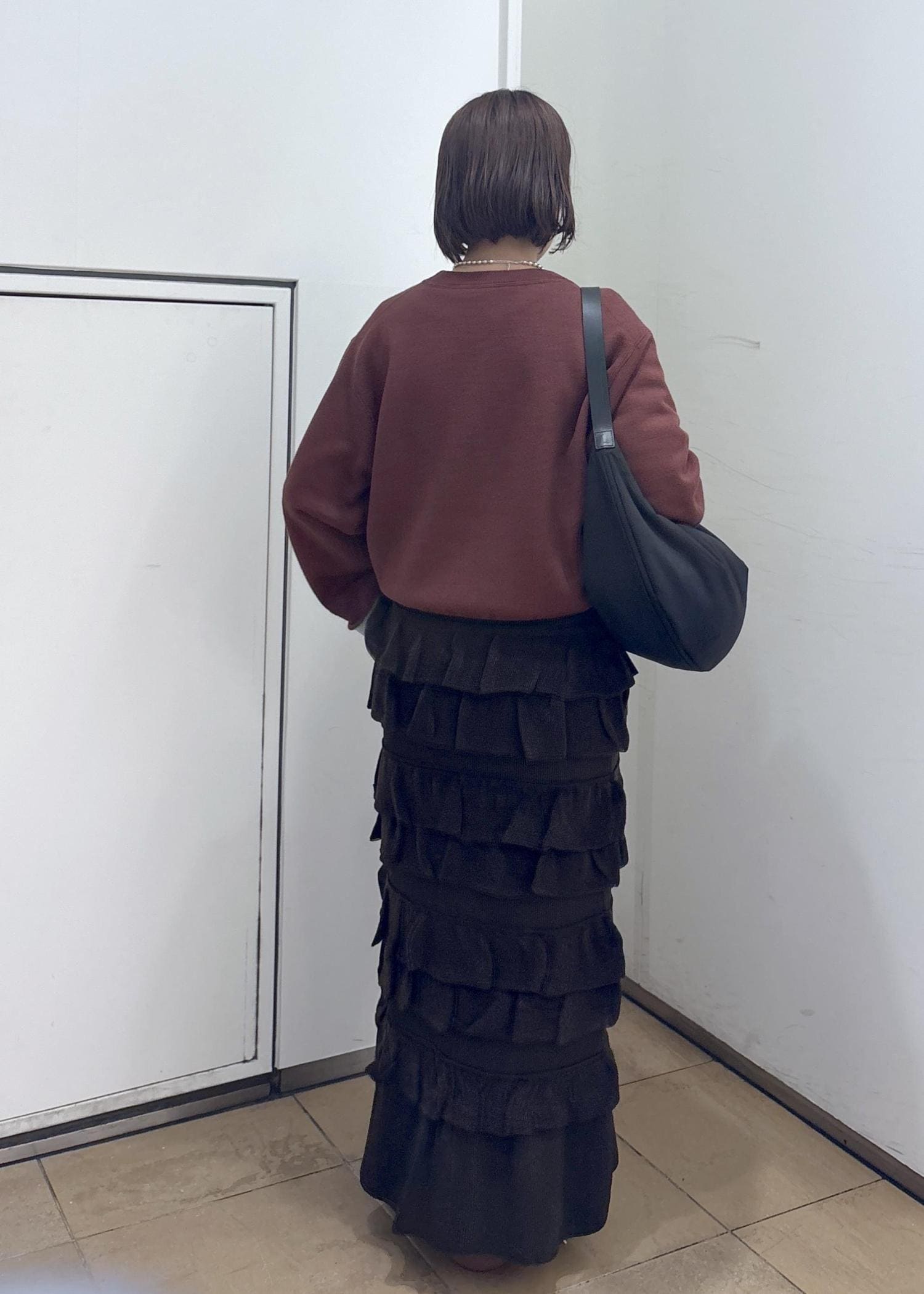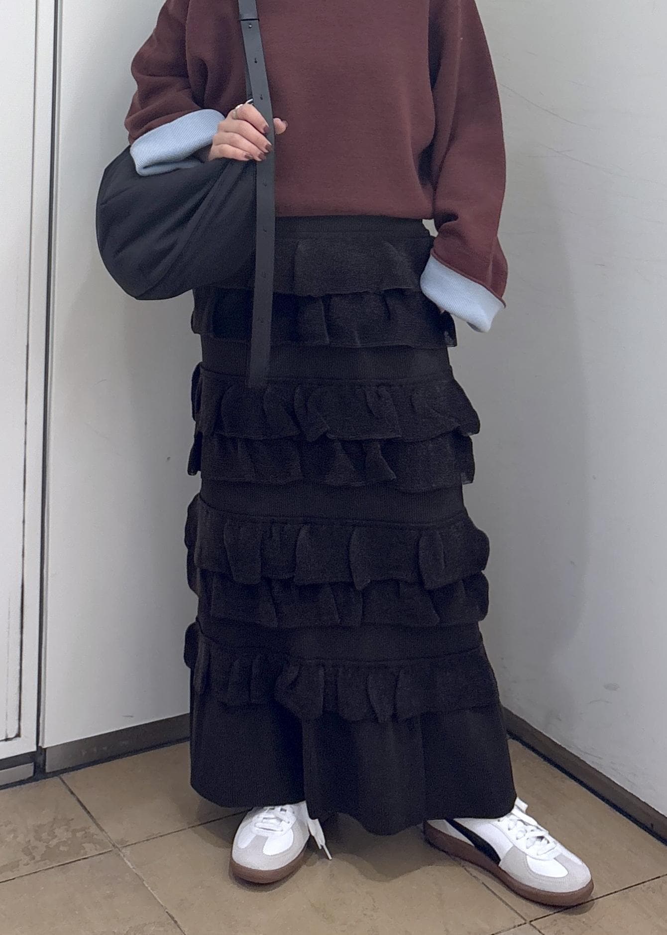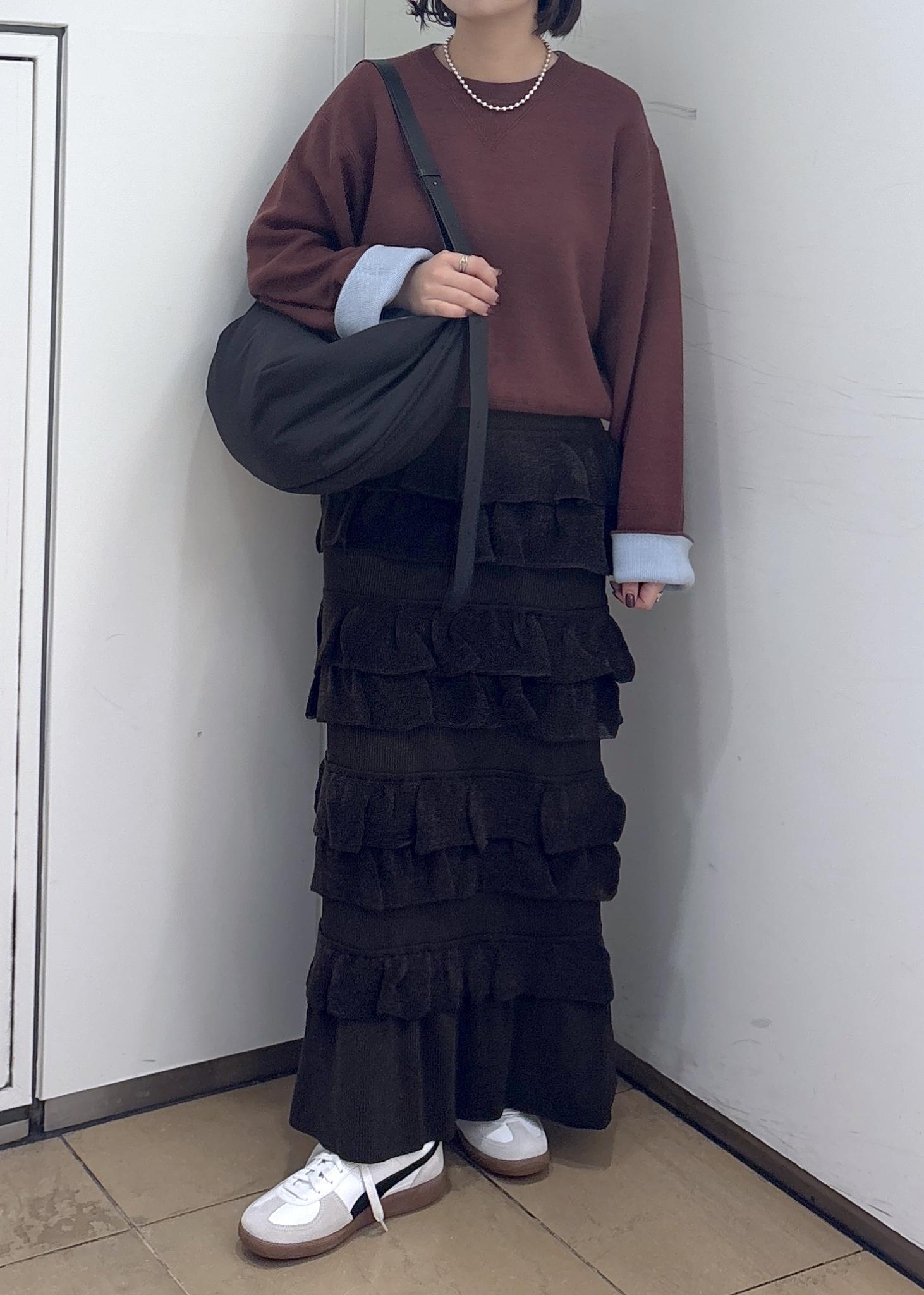 ADAM ET ROPÉ FEMME【サステナブル】フリルニットスカートダークブラウン / F¥19,800レビューウエスト部分がゴムになっており、伸縮性抜群です◎