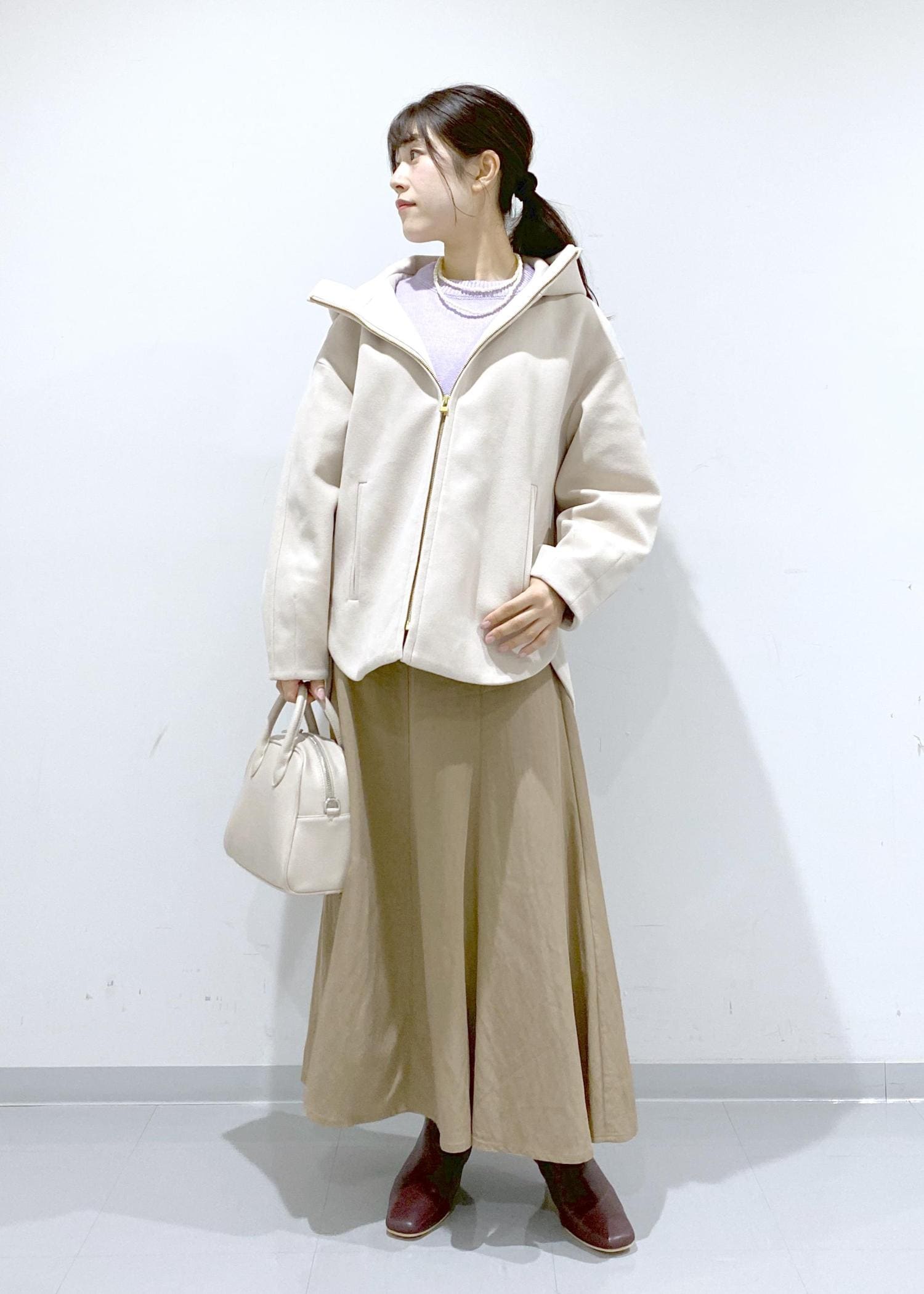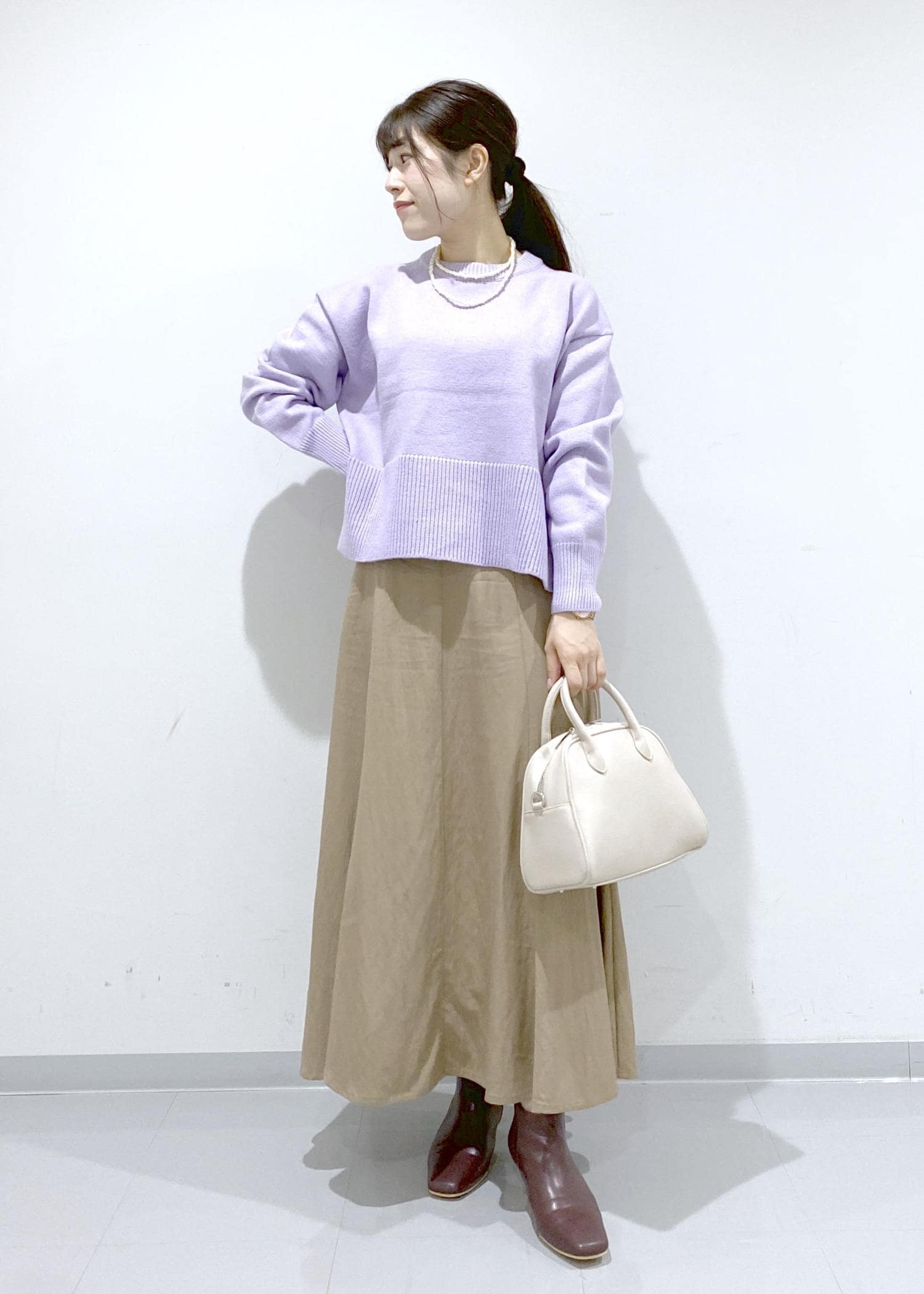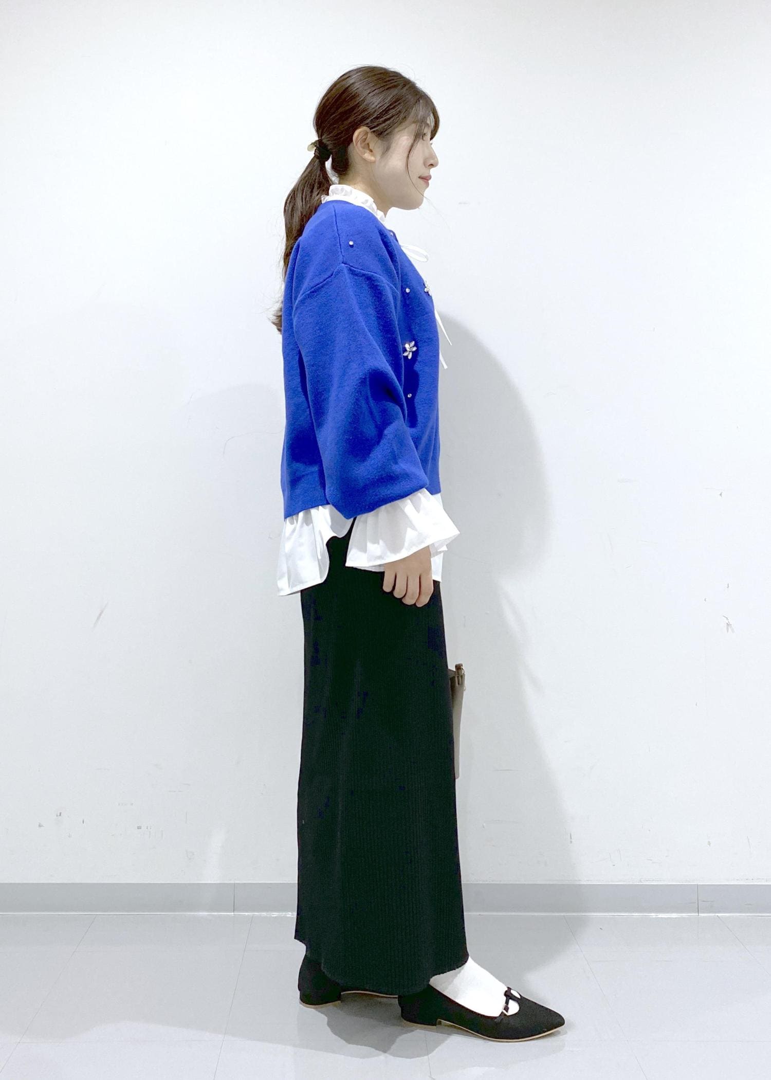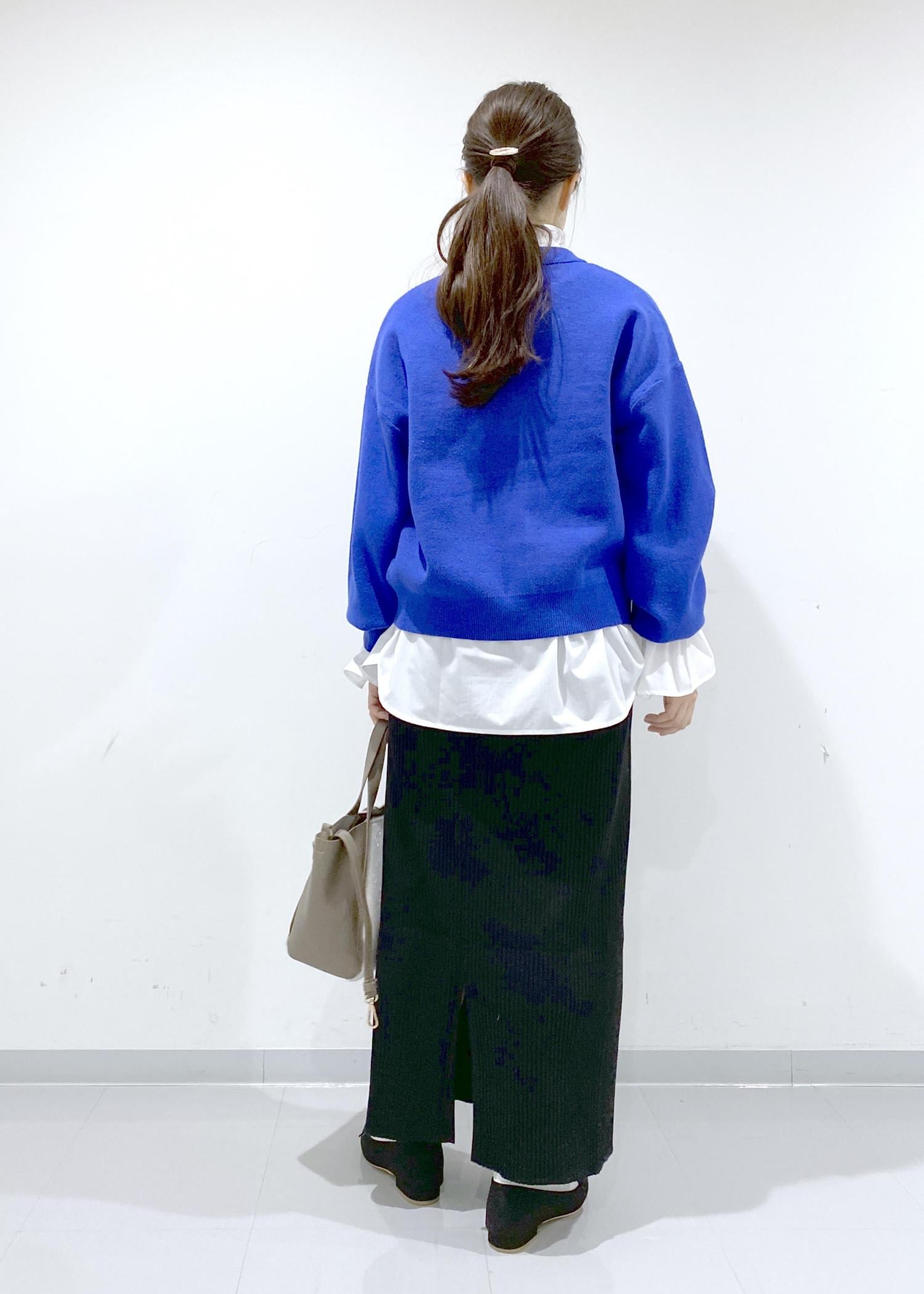 くるぶしあたりの丈感で、バックスリットが入っているのでIラインシルエットでも歩きやすいです。 -
