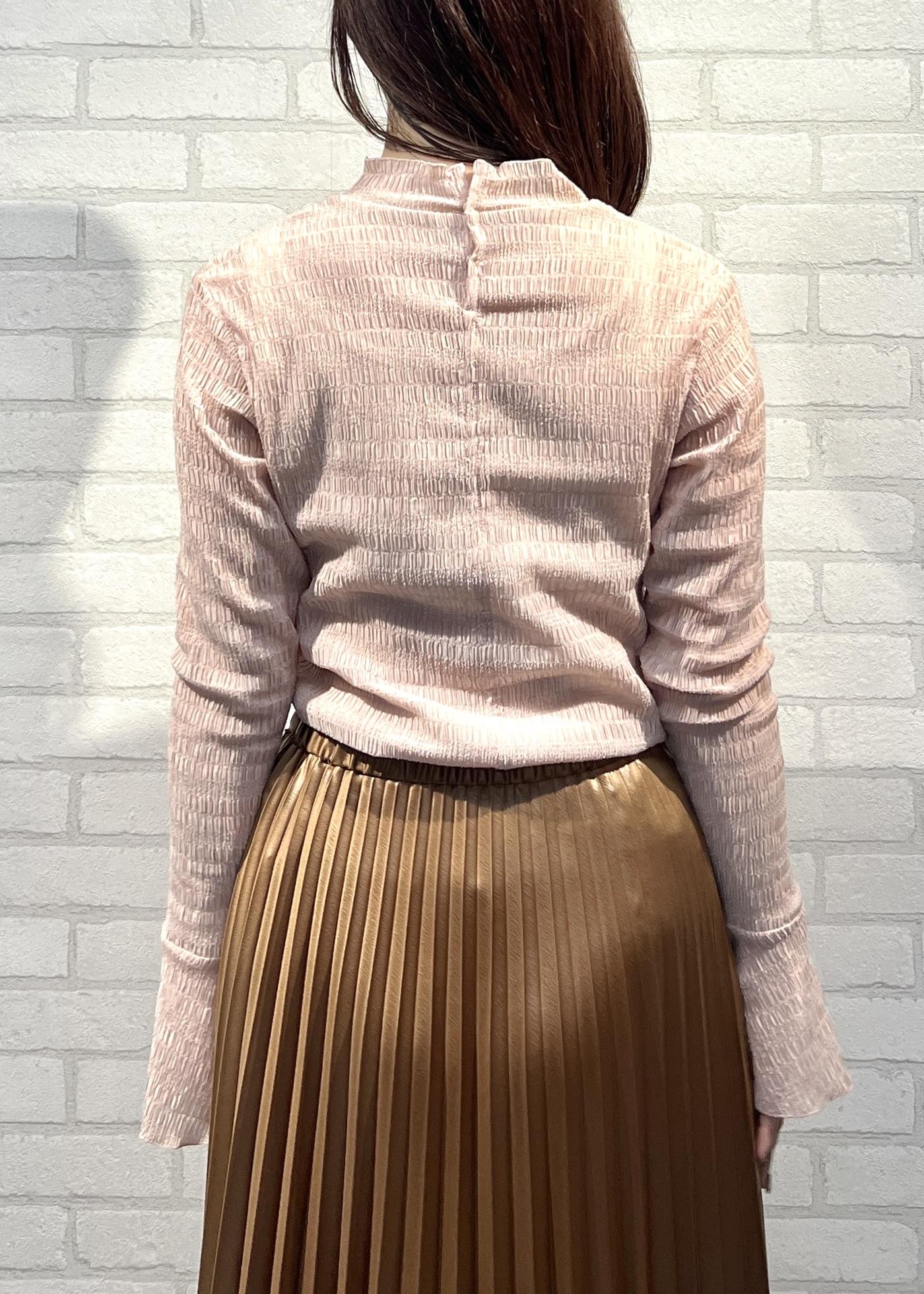 首元はハイネックで首の1/3が隠れるくらいの高さです。