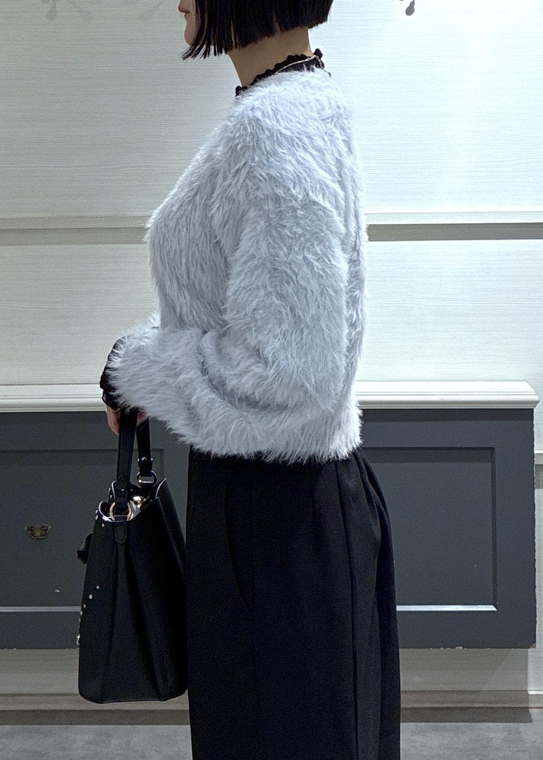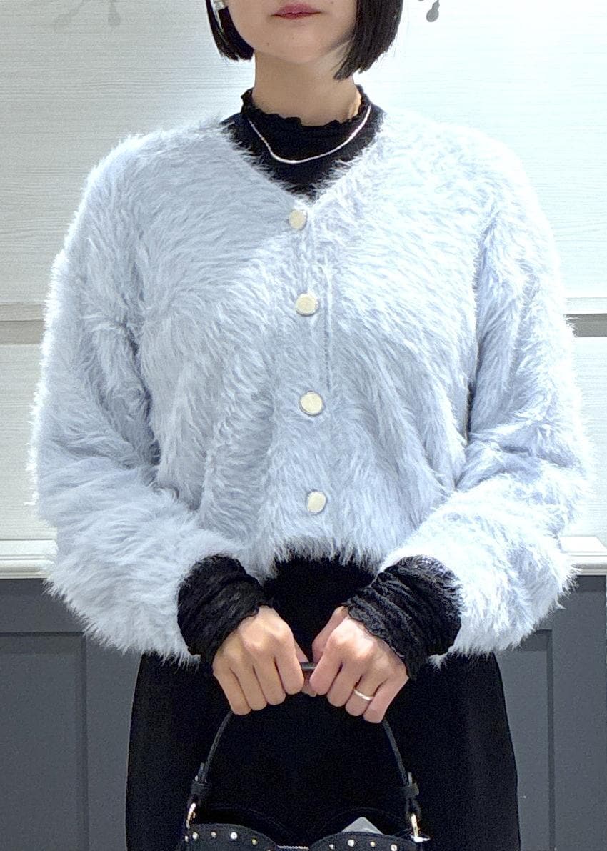VISラビットファーVネックカーディガン/イージーケア・WEB限定カラーサックス / F¥5,929レビュー身長168センチでおへそより上の短丈です♪