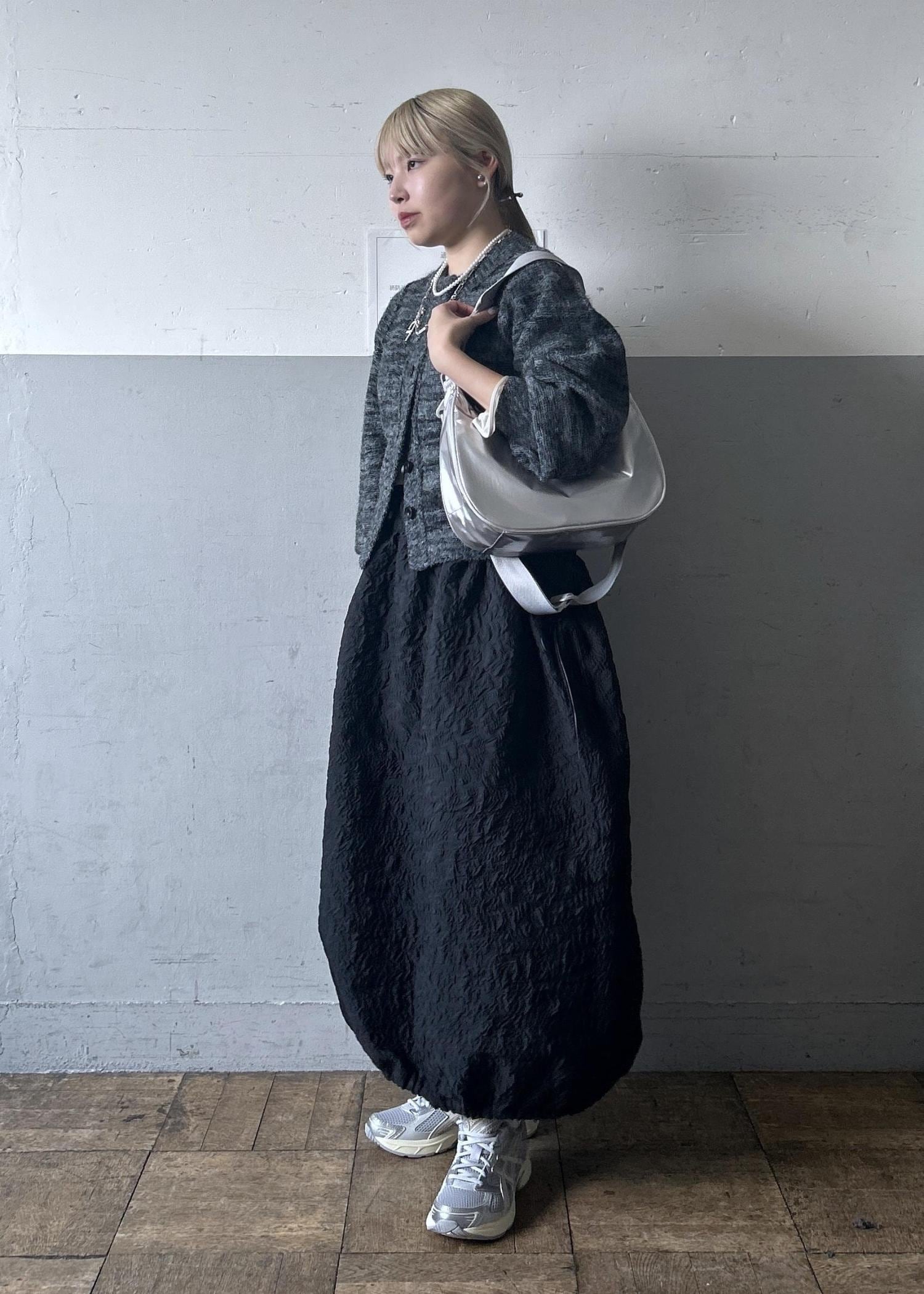 今回のようなフワッとしたシルエットのスカートやフェミニンなアイテムにスニーカーなどを合わせて、スポーツミックスにするのもおすすめです!