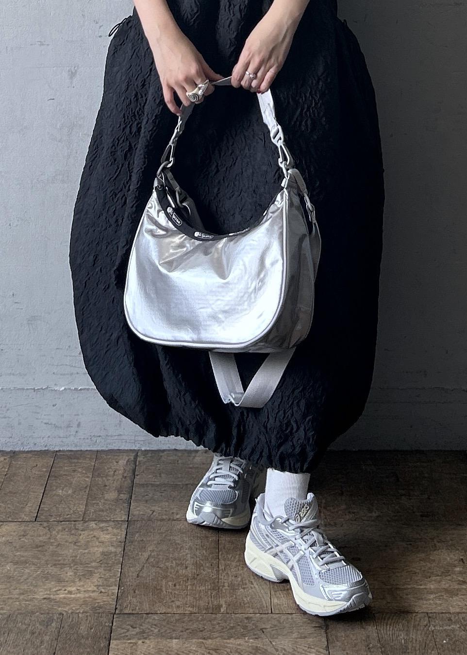 LeSportsacのバッグはスポーティな印象がありつつ、シルバーやブラウンといった女性らしい雰囲気のあるカラー展開なのでキレイめコーデにも◎