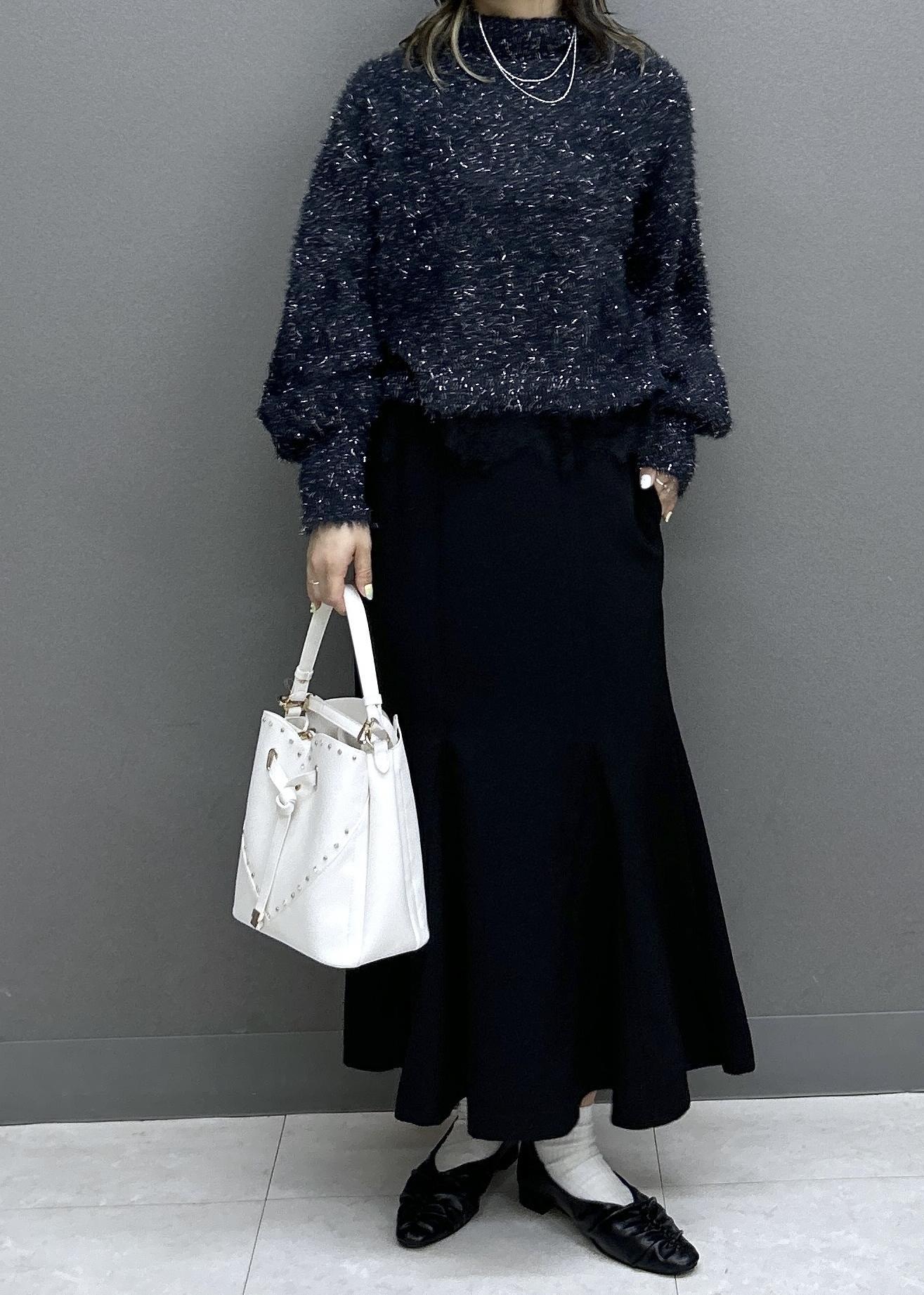 トップスのデザインはボードネック、ハイネック、クルーネック、スクエアネック、どんな形でも相性◎
