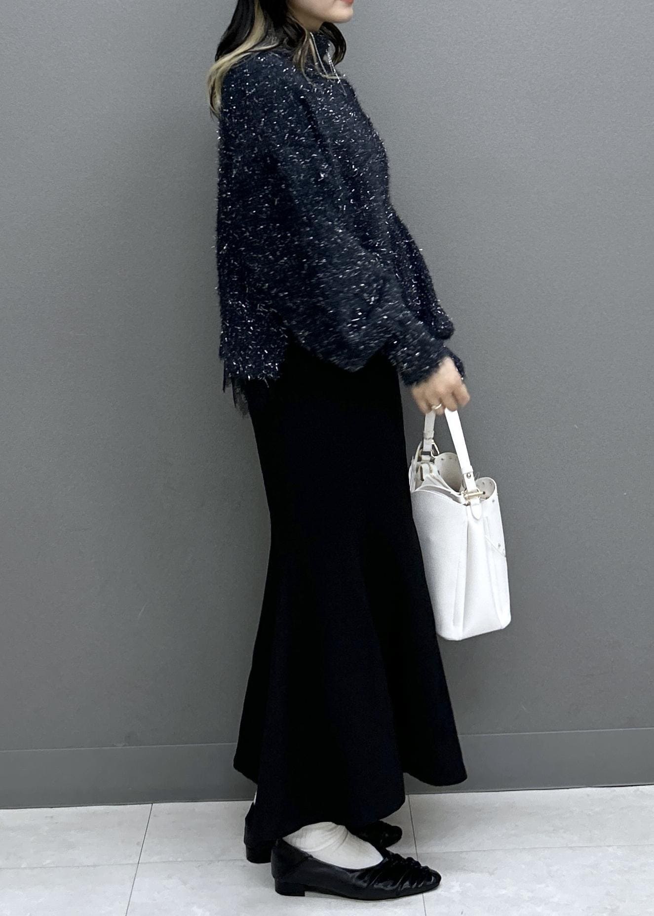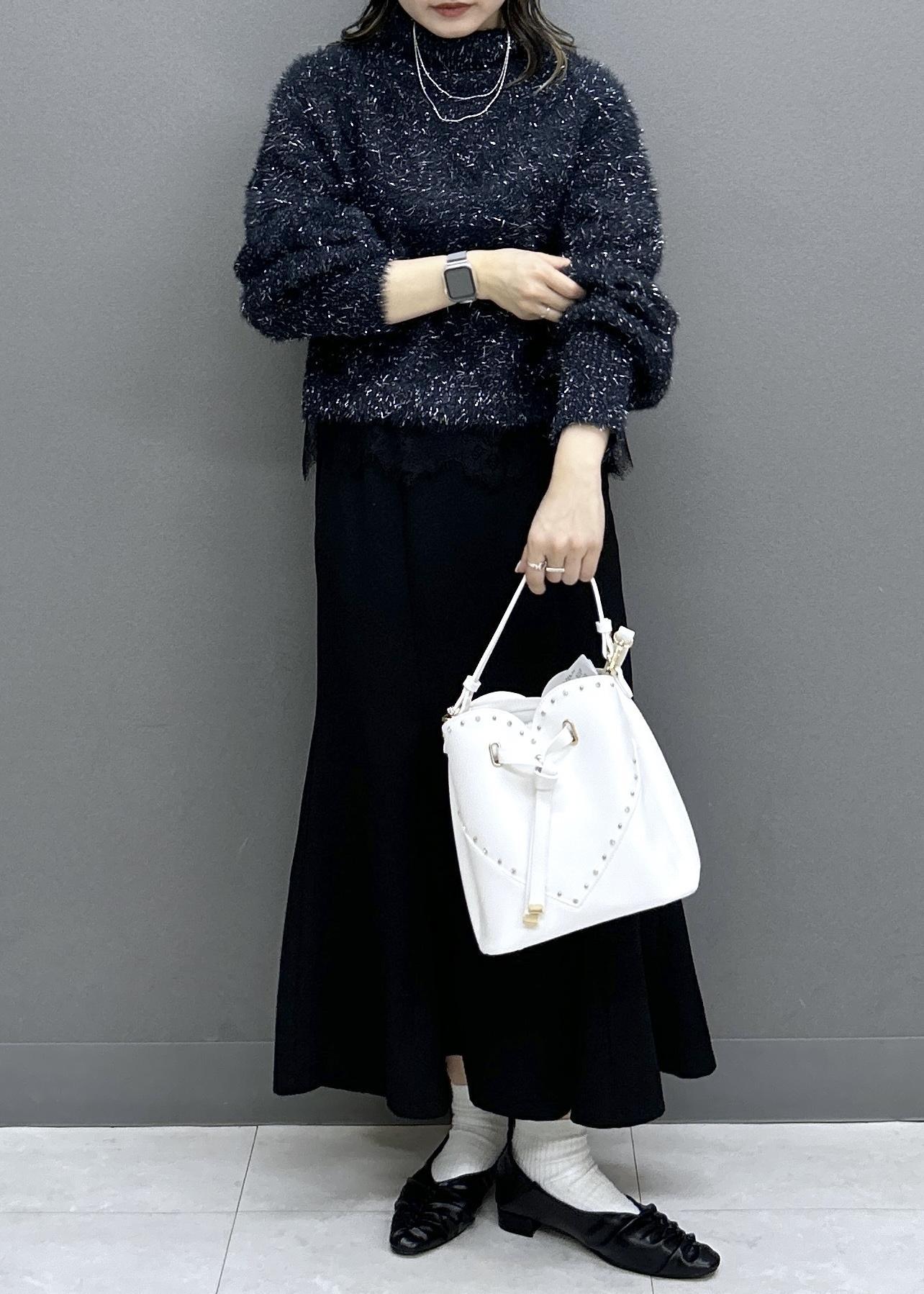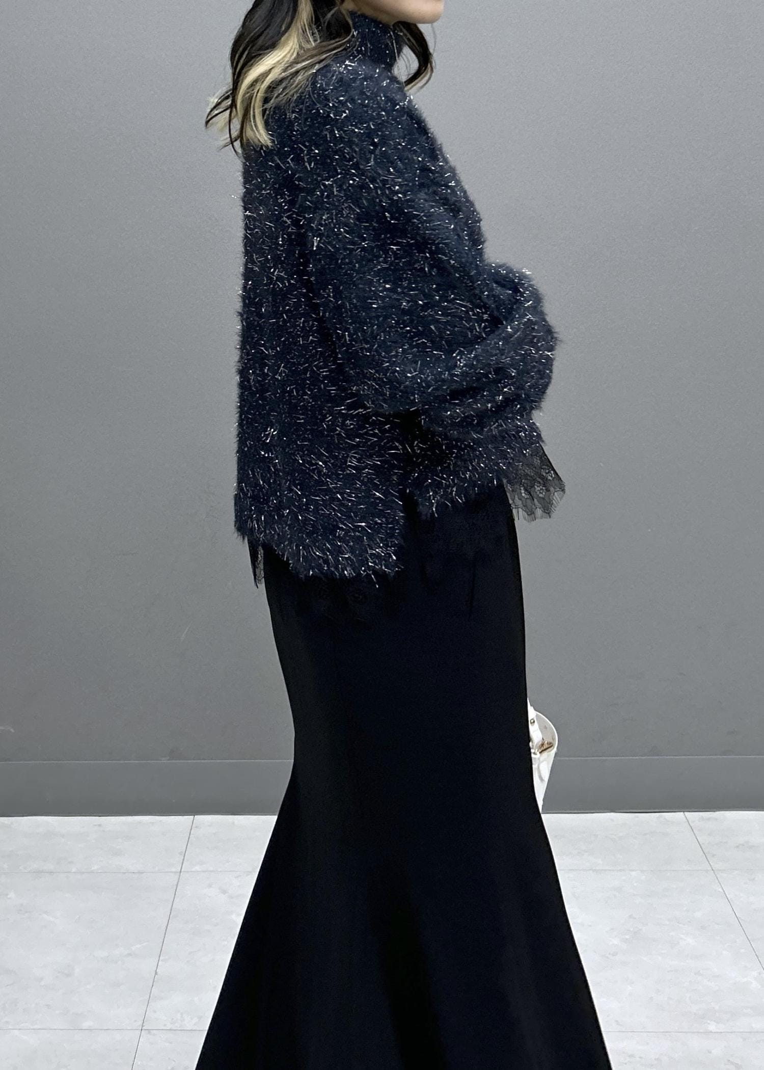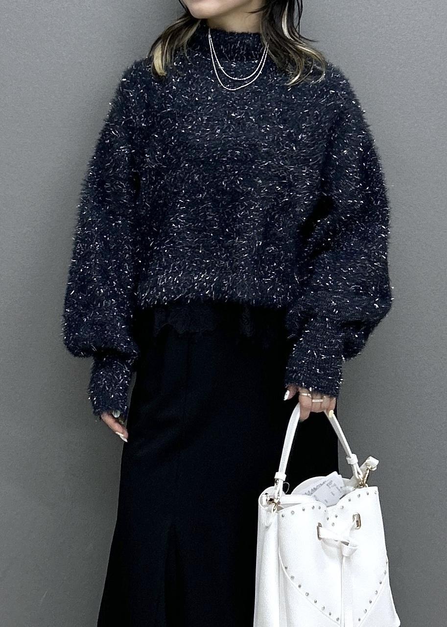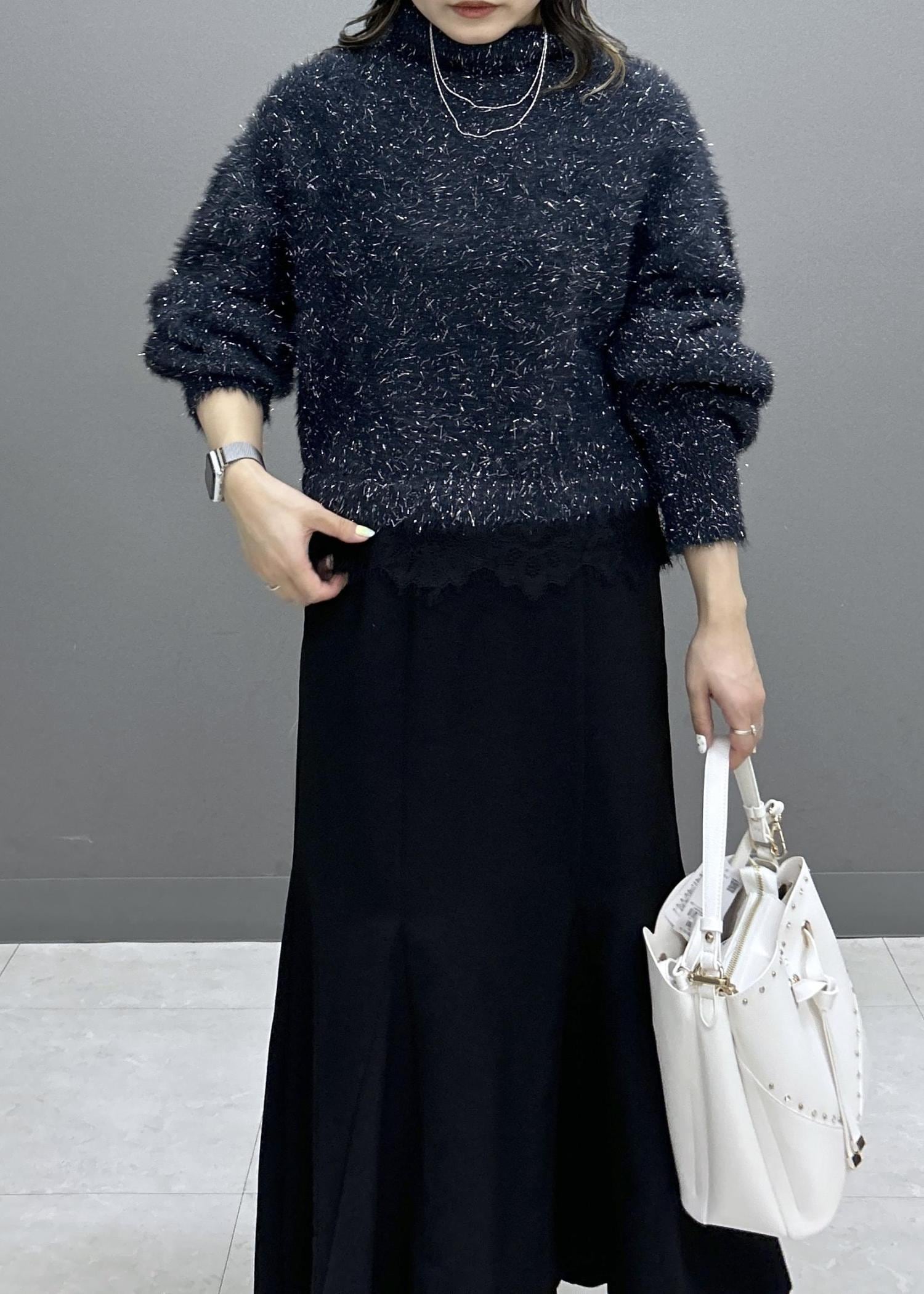 VISラメフェザー裾レースハイネックニットネイビー / F¥6,589レビュー157cmでレースがお尻にかかるくらいの着丈でした!