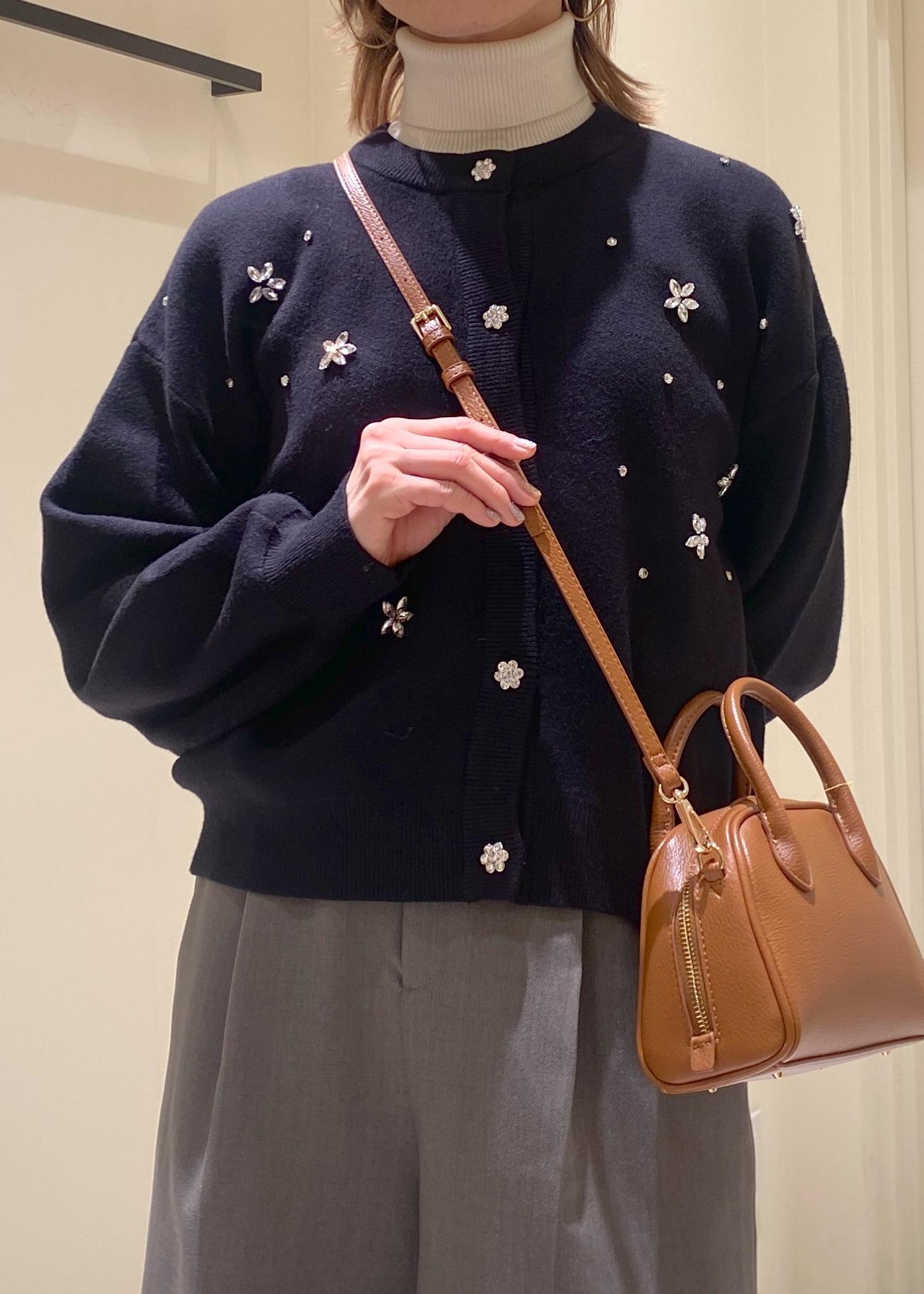 ROPÉ PICNICビジューニットカーディガンブラック / F¥5,995レビューキラキラビジューがスタイリングの主役になります。程よくゆとりあるシルエットでレイヤードしやすいです。肉厚で暖かく、柔らかくなめらかな素材感で肌触りがいいです。