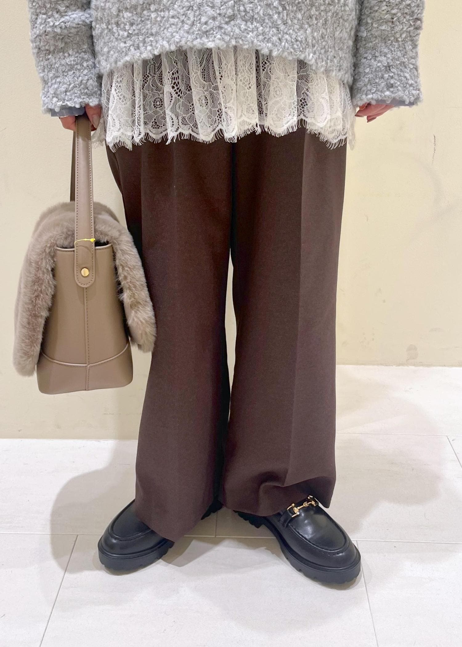 起毛素材であたたかく、ハイウエストなので履き心地もスッキリです。 -