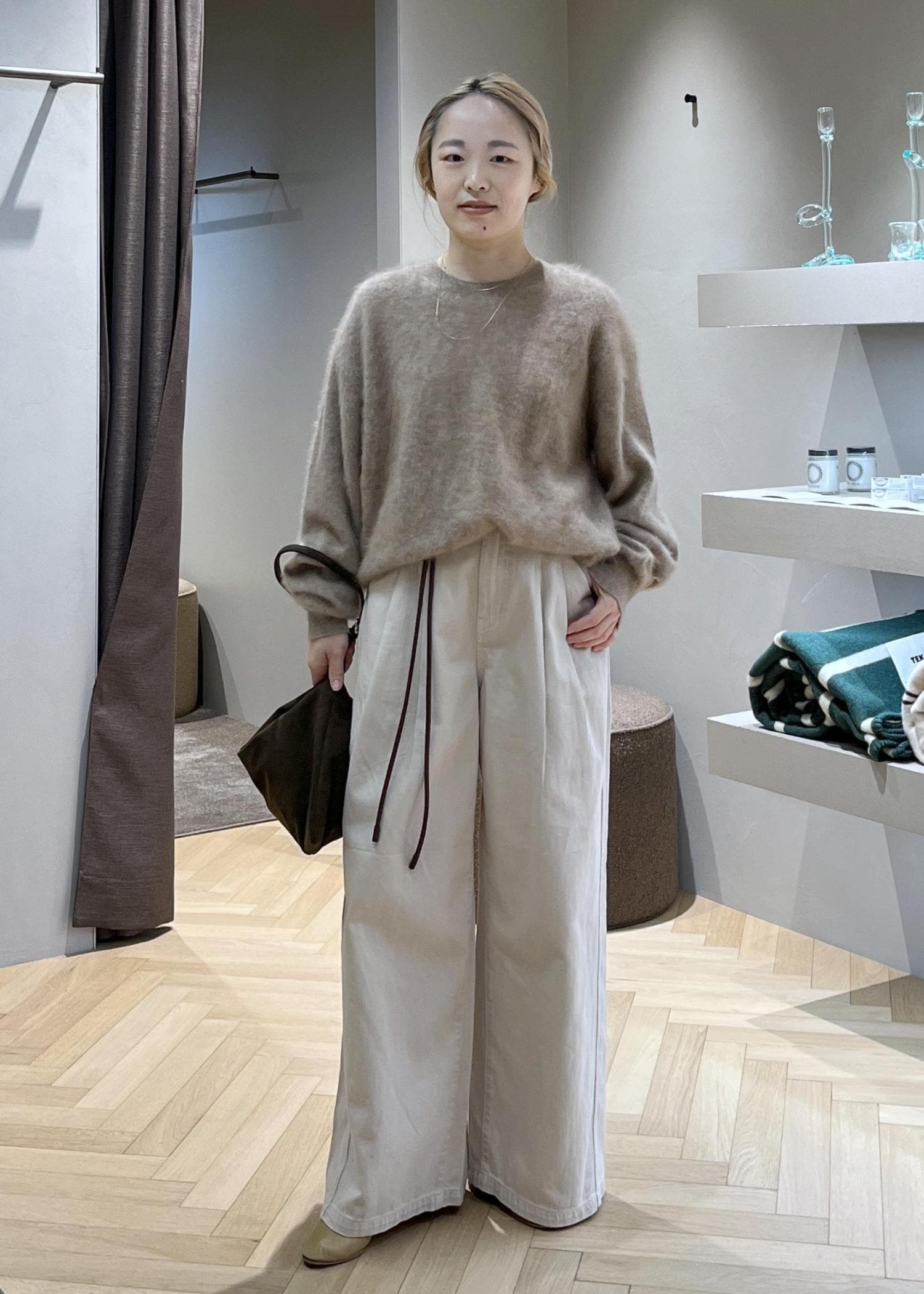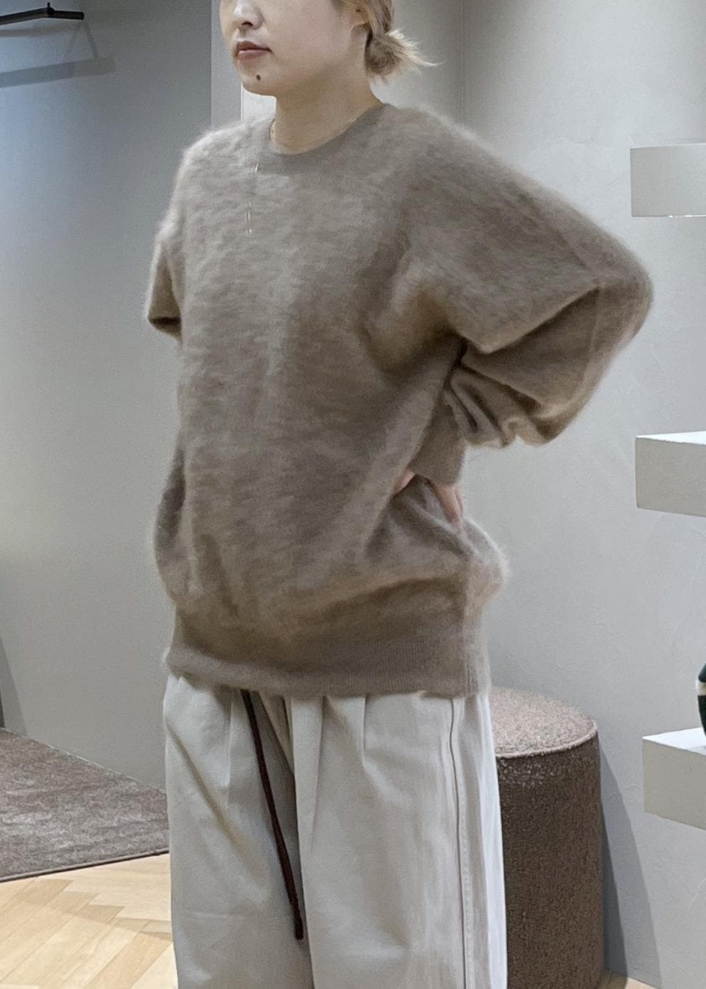 SALON adam et ropéブラッシュドカシミヤクルーネックニットプルオーバーベージュ系 / F¥53,900レビューふわふわの毛並みでチクチクなし。