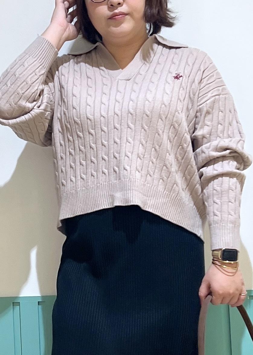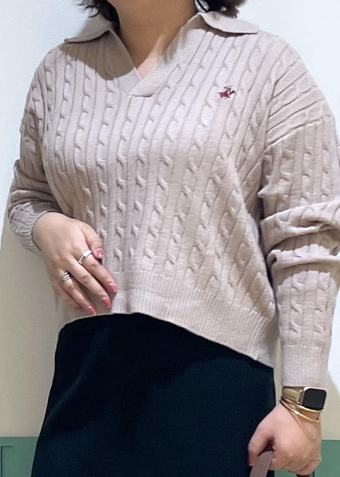 NEW!ROPÉ PICNIC【BEVERLYHILLS POLO CLUB・新色追加】ケーブル編みクロップドスキッパーニットベージュ / F¥5,995レビュー伸縮性があり、