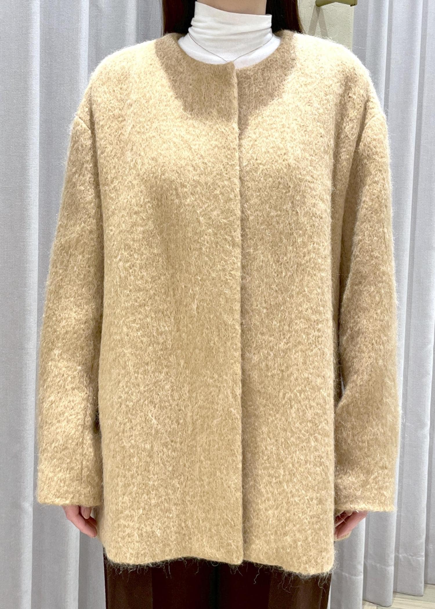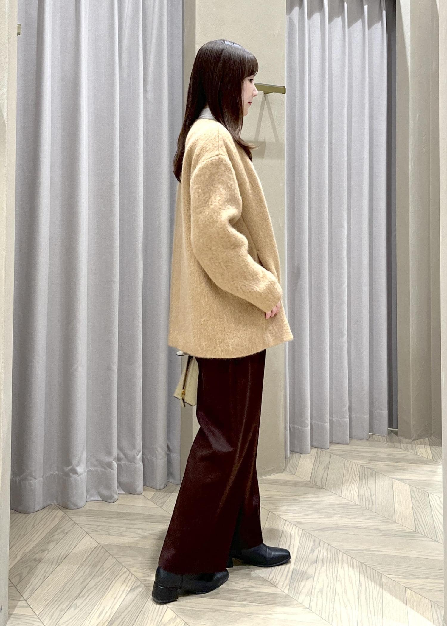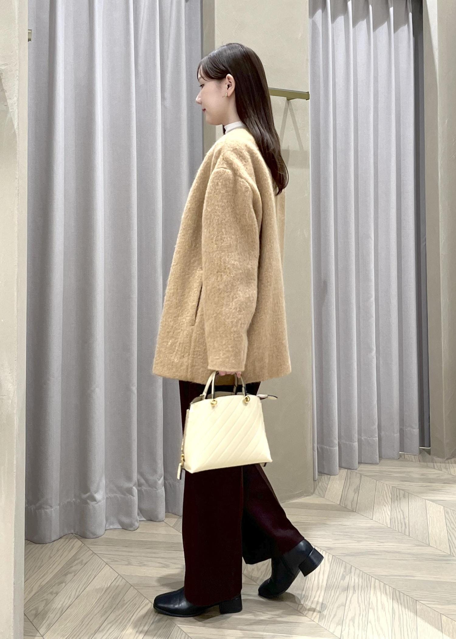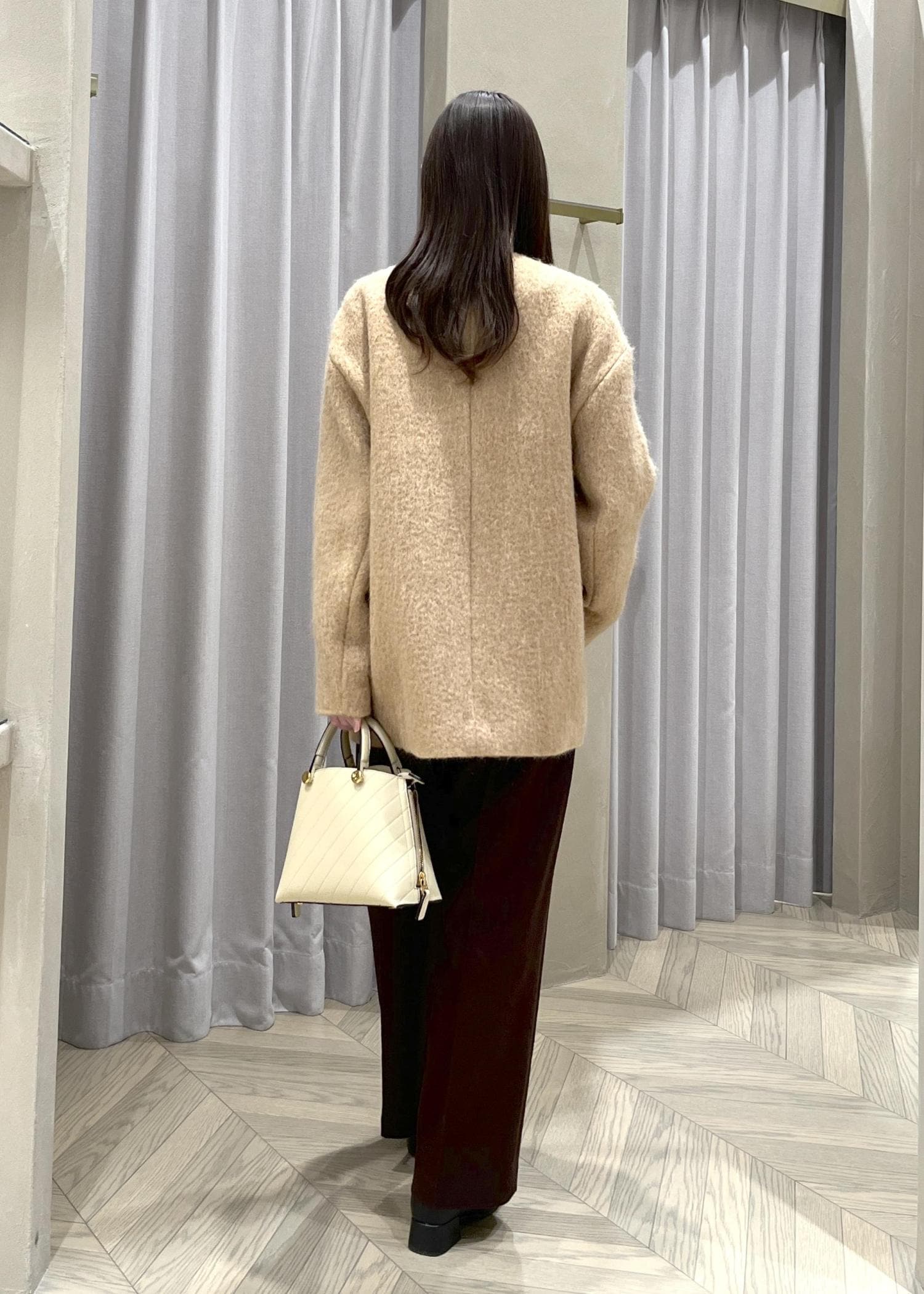 ROPÉウールモヘヤノーカラーミドル丈コートベージュ / F¥68,200レビュー【着丈】