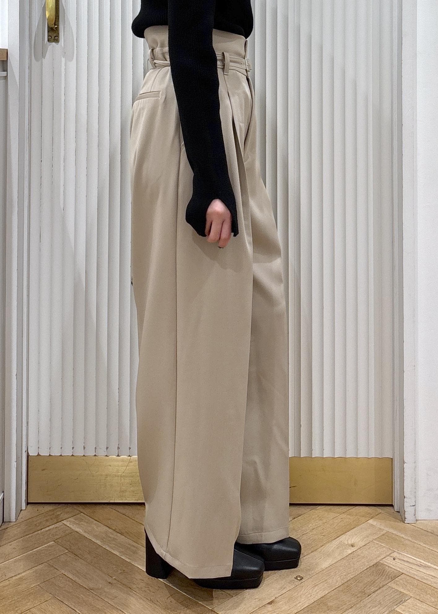 かなりハイウエストなつくりなので、脚長効果抜群です!低身長さんにはおすすめのスラックスです☺︎ -