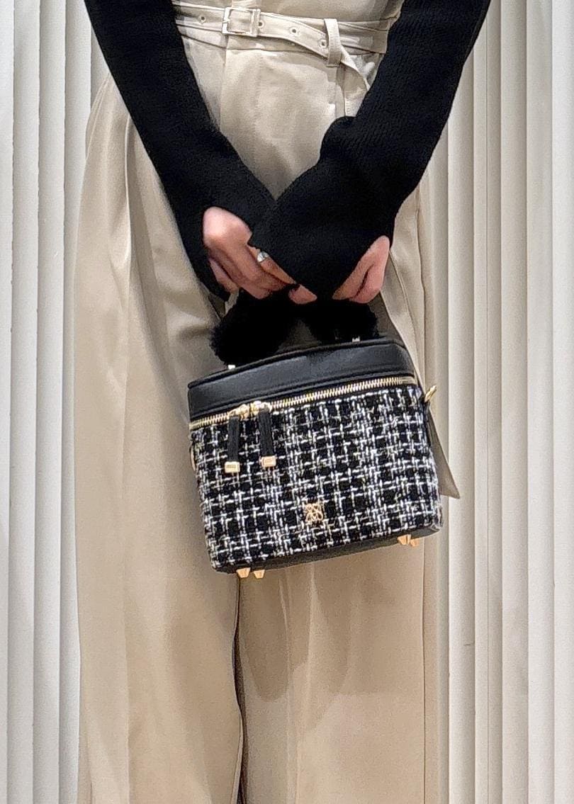 VISファーハンドルキルティング&ツイードバニティバッグ/2WAYその他 / F¥7,909レビューキルティングのコンパクトなバッグで高級感があります!手持ちのファーはチャックで取り外しができるため簡単なのに見栄えが良いです!三つ折りの財布であれば問題なく入るサイズ感でした!ショルダーも入ってるので肩掛けもできます☺︎