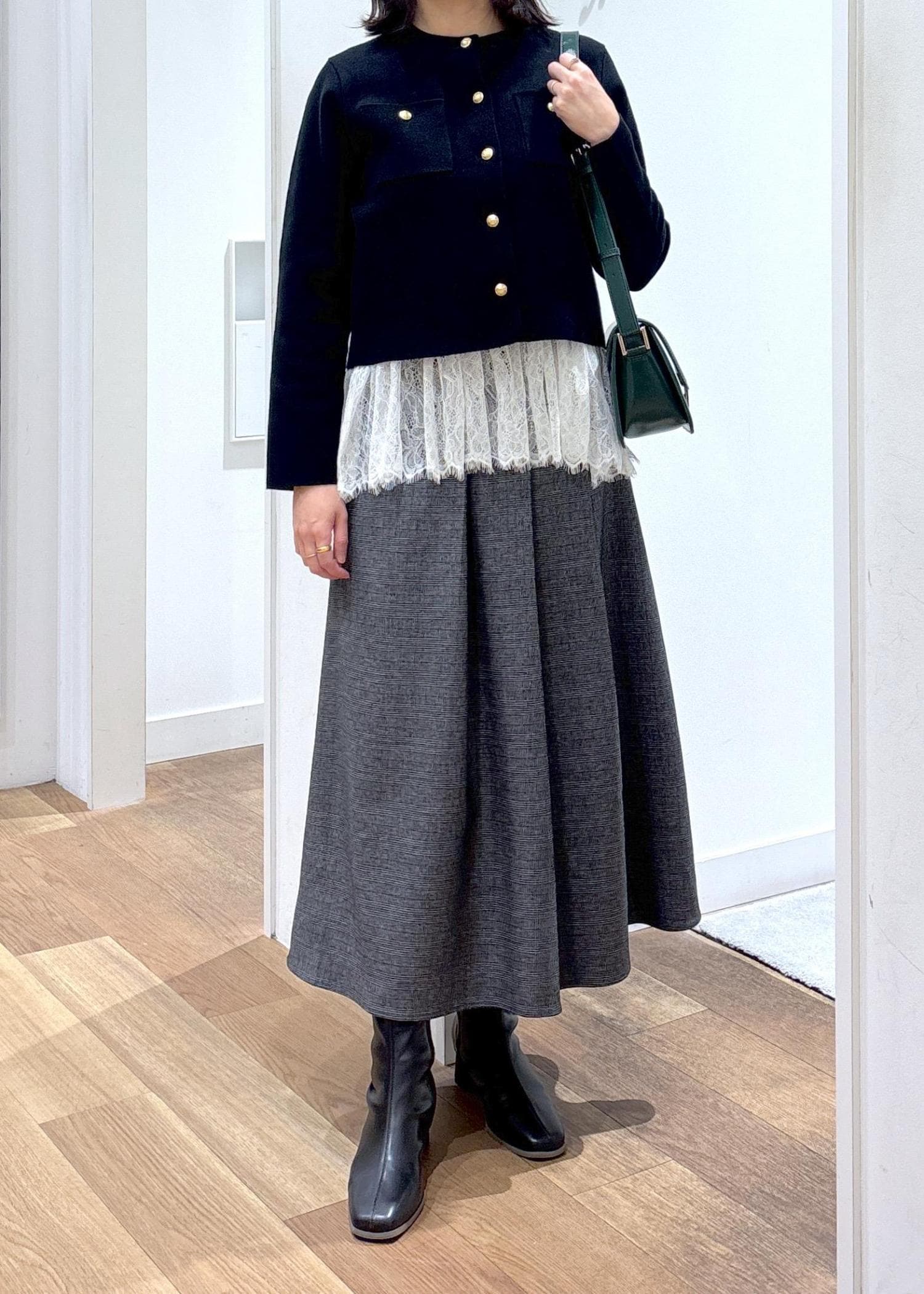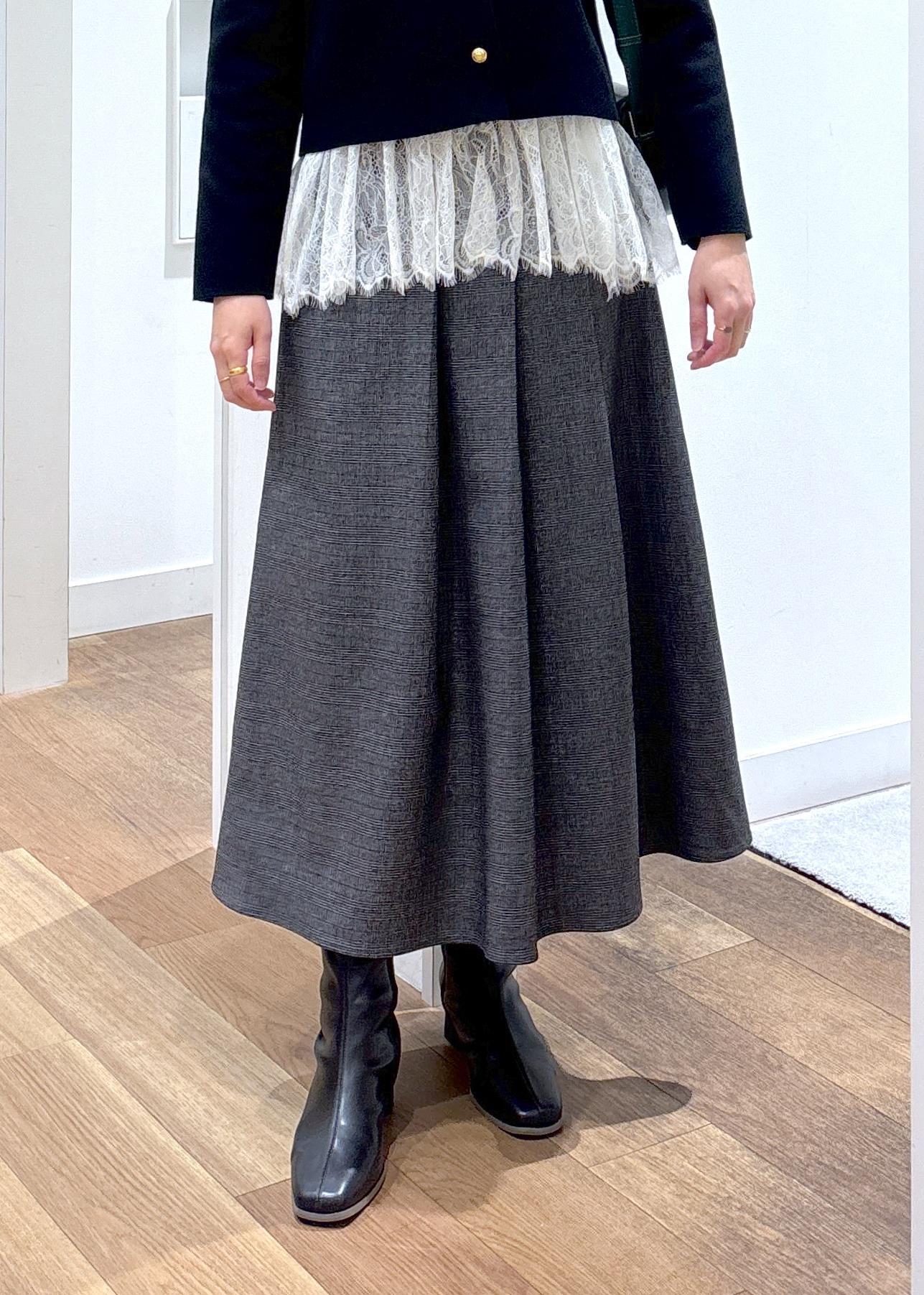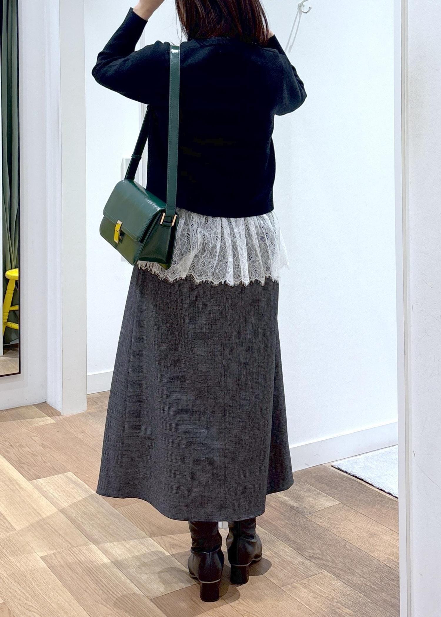 腰回りはすっきりとしていて、裾に向かってボリュームのあるメリハリのあるデザインです。 -
