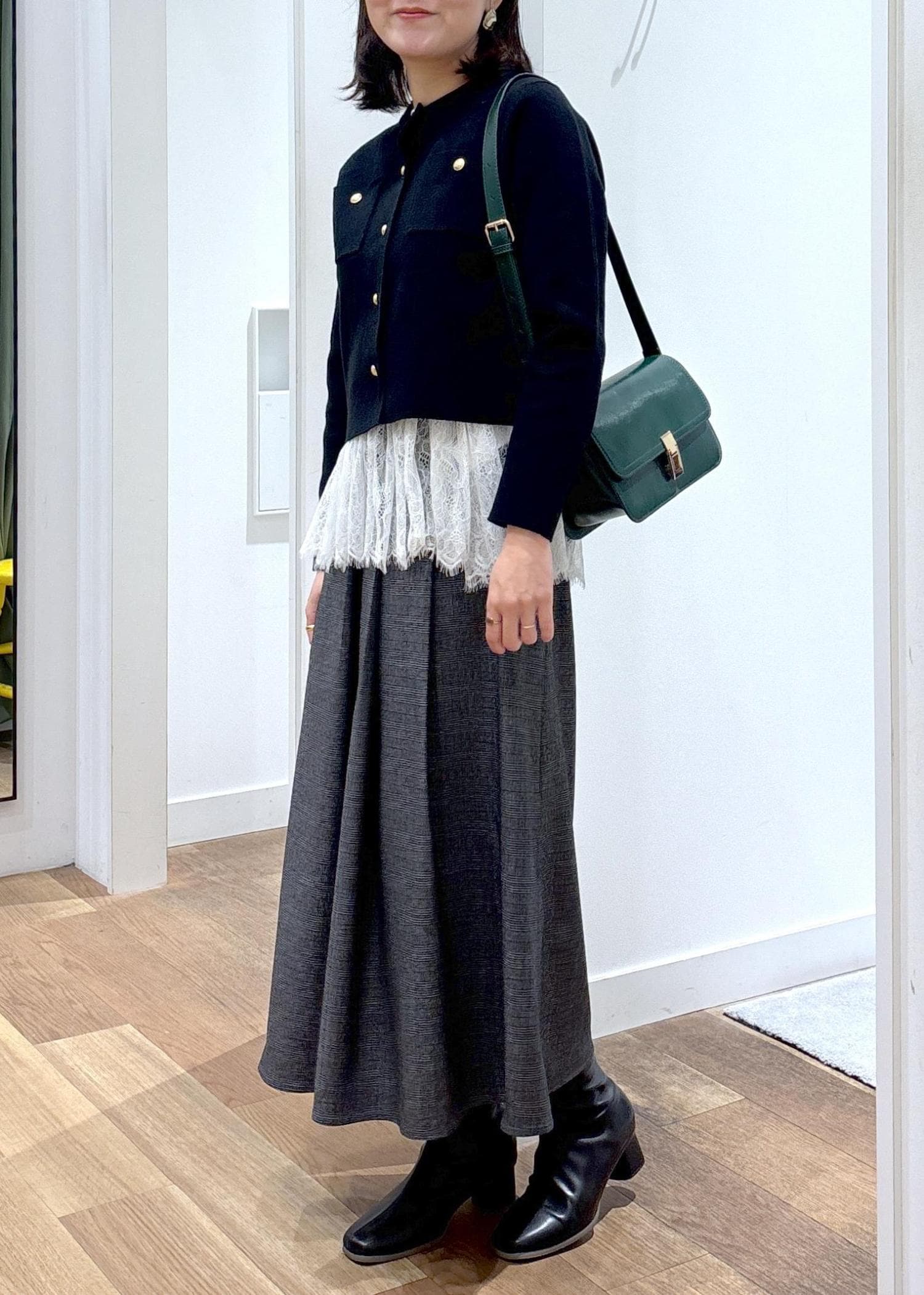 ROPÉ PICNICレディハンサムシリーズ ウールライクタックキルトスカート/セットアップ対応ライトグレー / M¥5,995レビュー162㎝Mサイズで、足首少し上の長さでした。