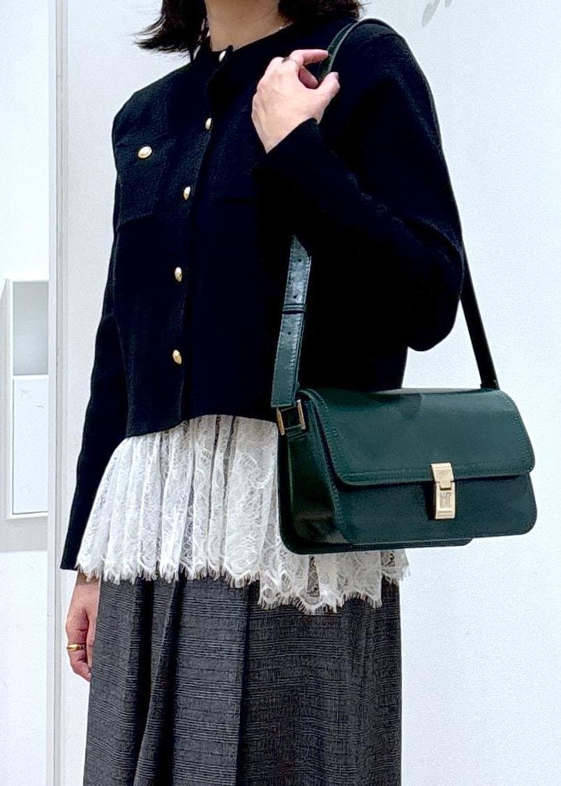 ROPÉ PICNIC PASSAGE【WEB限定カラー】me fit BAG バーチカルラインワイドショルダーバッグダークグリーン / F¥4,197レビューかっちりとしたクラシカルなデザインが高級感のあるデザインです。マチしっかりとあるので、長財布も余裕を持って入れられます。