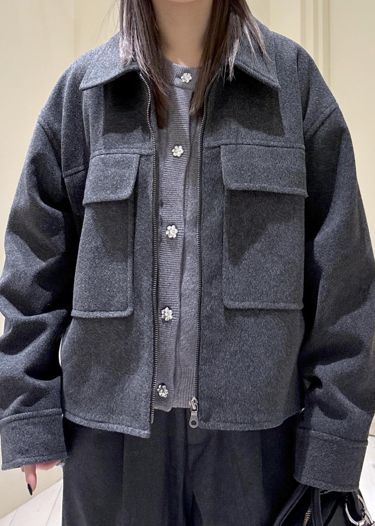 ROPÉ PICNICジャージーメルトンシリーズ ポケット付きジップブルゾン/リンクコーデチャコール / F¥8,999レビューゆったりサイズで中のトップスを選ばずに着られるアウター◎
